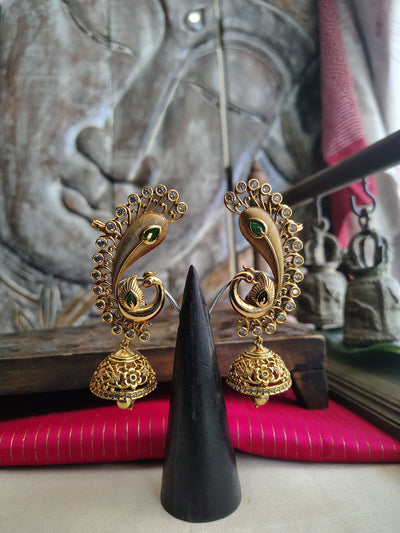 Gold Jhumkas with Ear Cuffs & Jadau stones