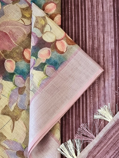 Linen Cotton Saree with Digital Floral Prints