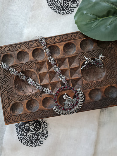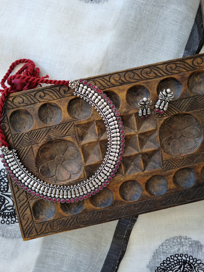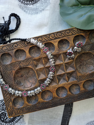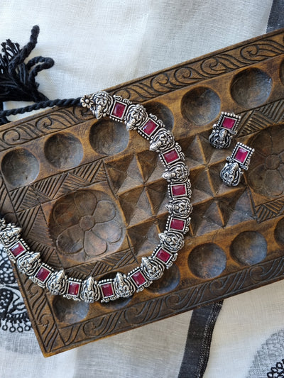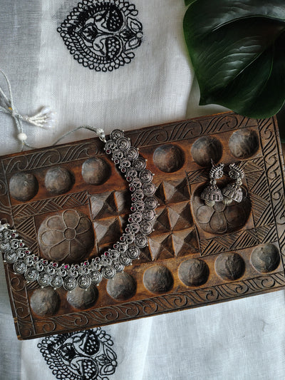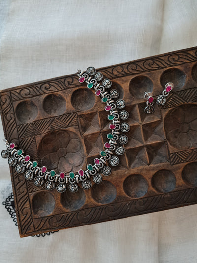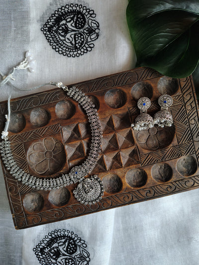 Oxidised Silver Lakshmi Necklace & Jhumkas