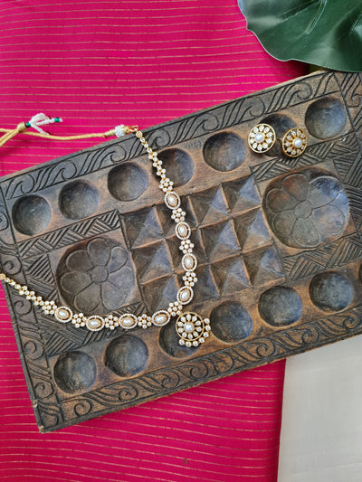 Pearl Necklace with German Silver Pendant & Jhumkas