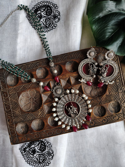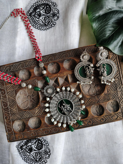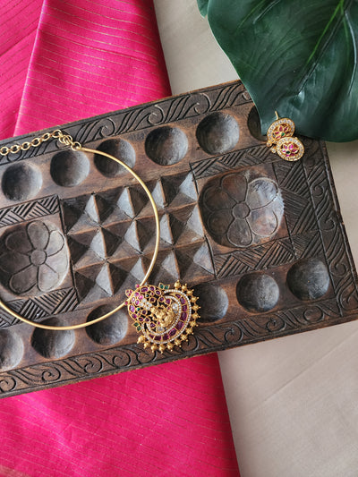 Pipe Necklace with a Lakshmi Pendant & Studs