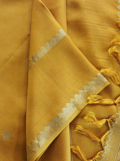 Yellow Handloom Silk Linen Saree with Banarasi Borders
