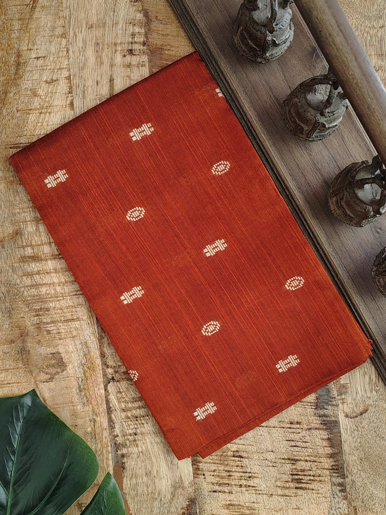Rust Orange Blouse fabric with woven motifs