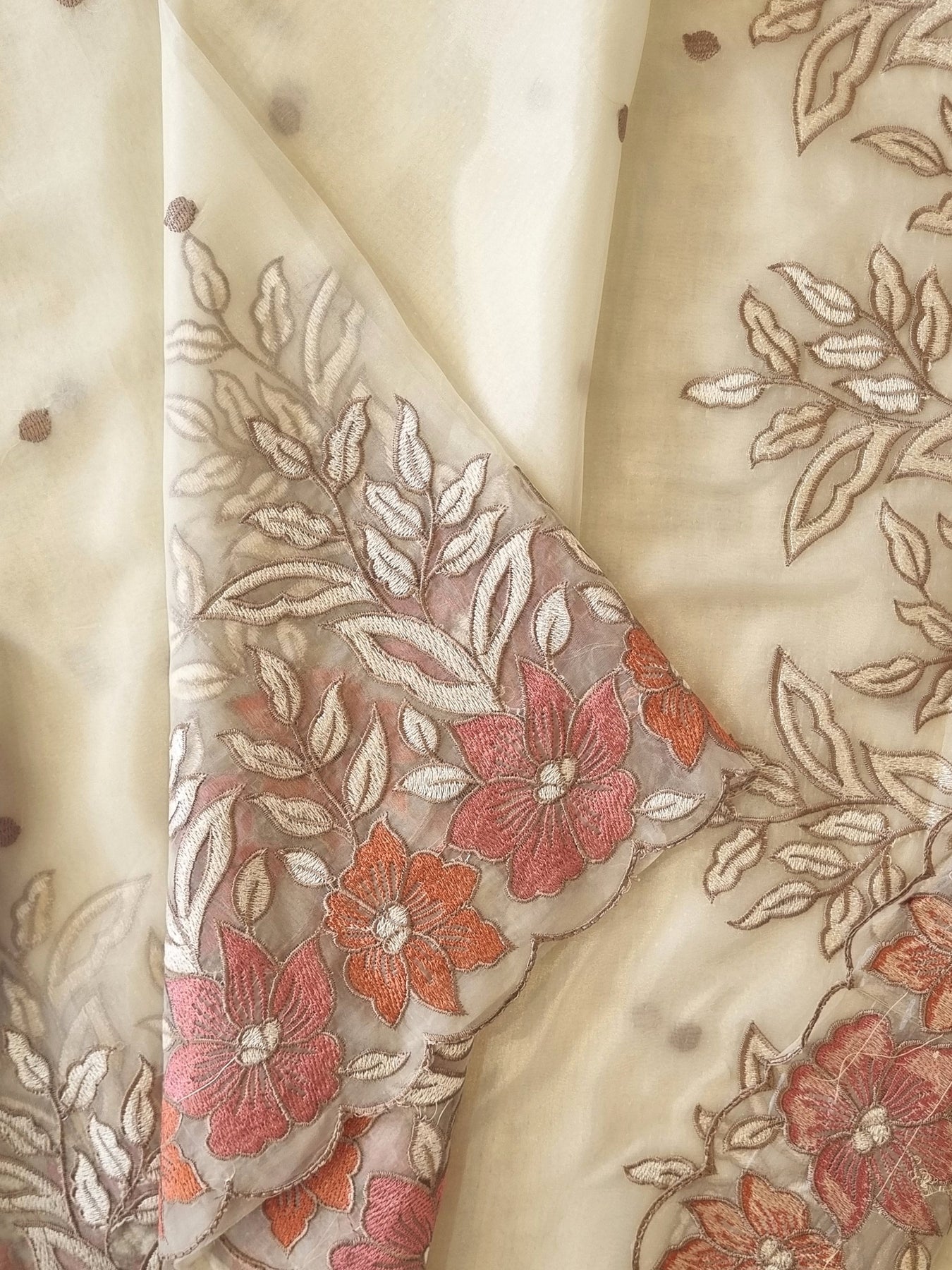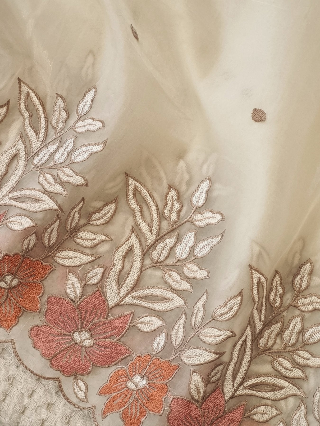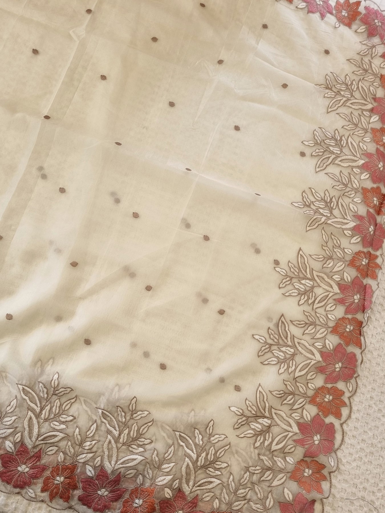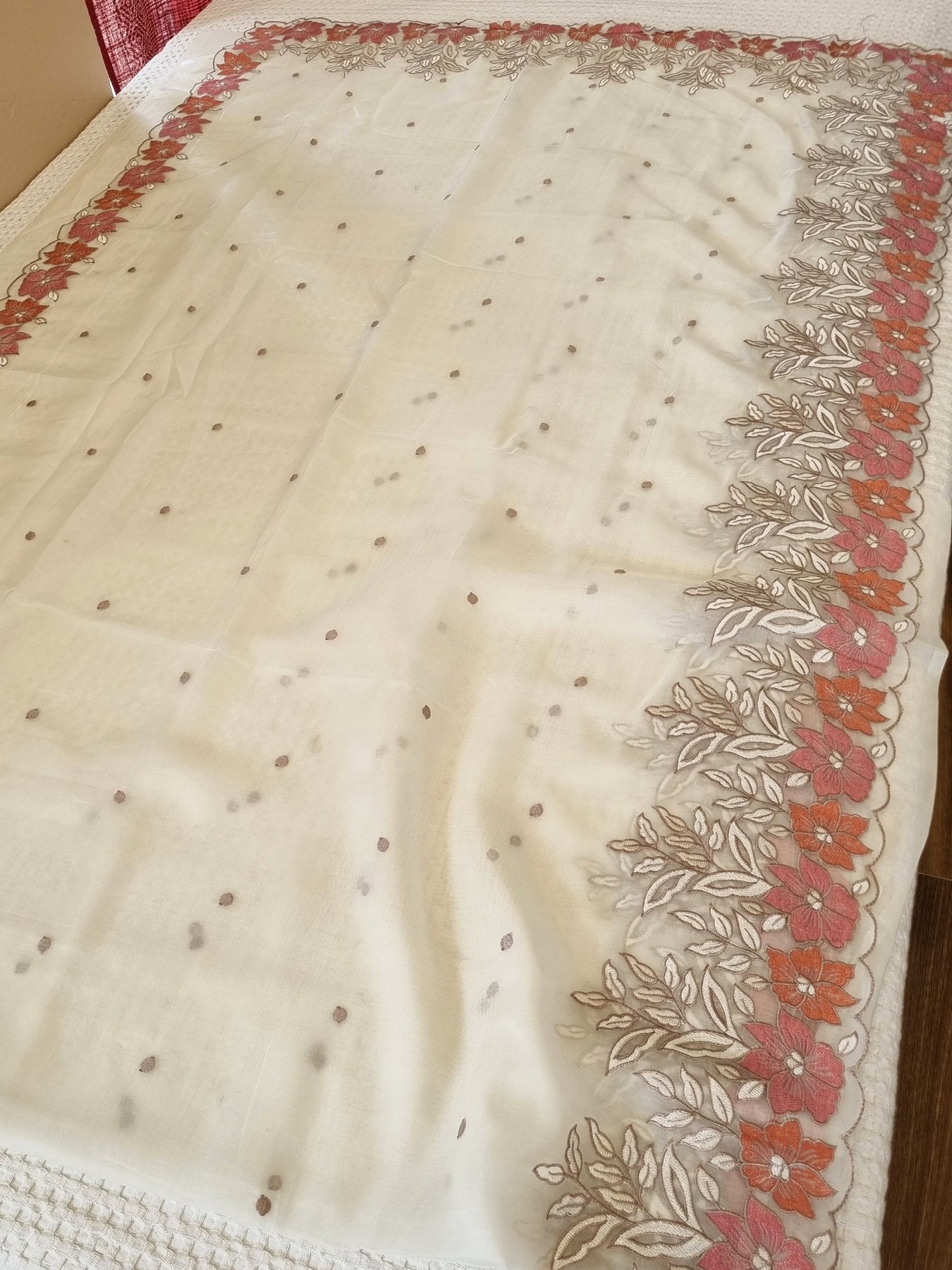 Soft & Easy to Drape Saree, with Embroidery on the Borders, paired with a Running Blouse Fabric