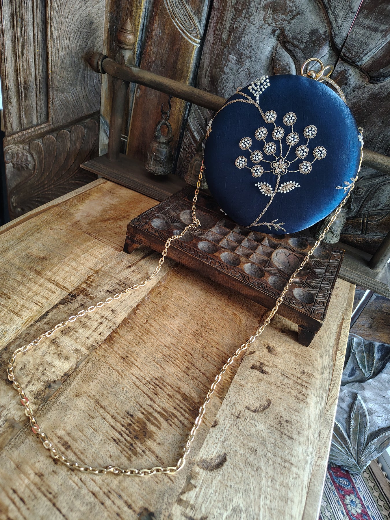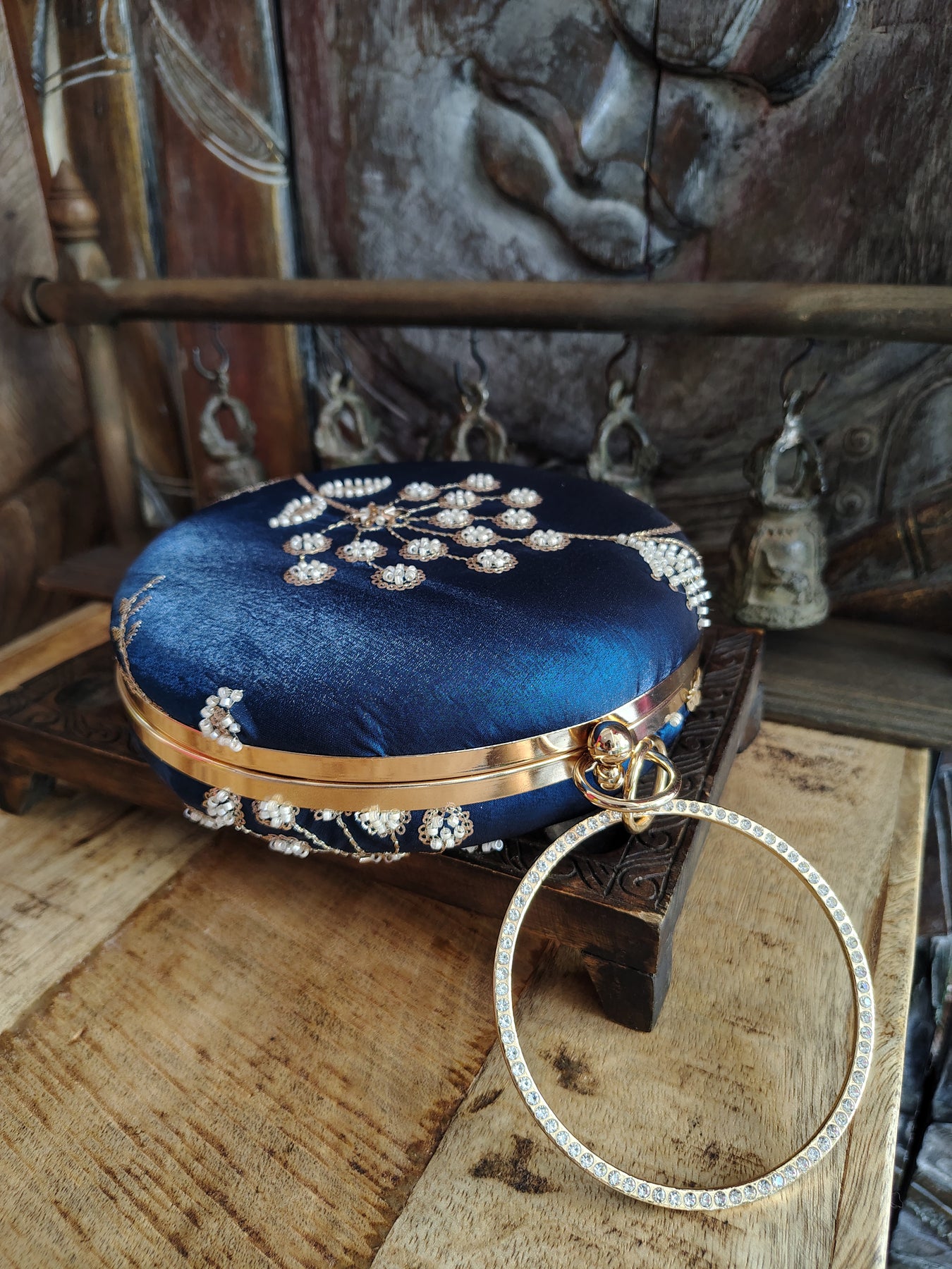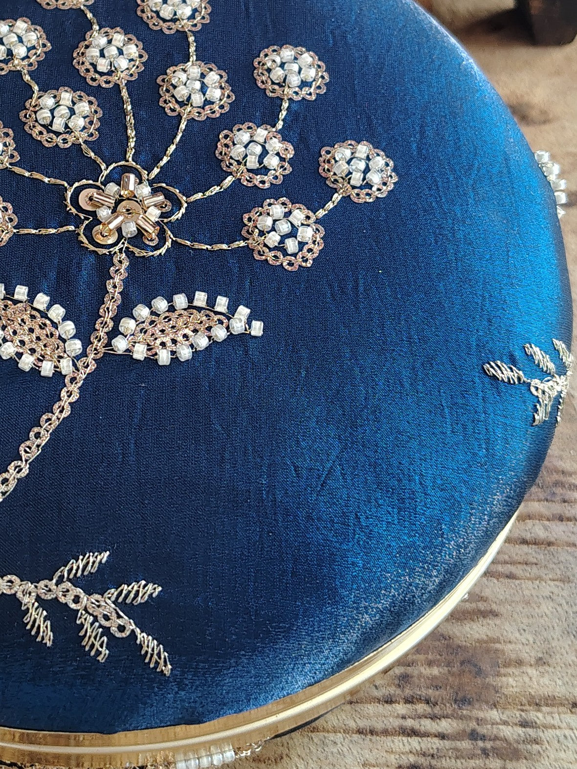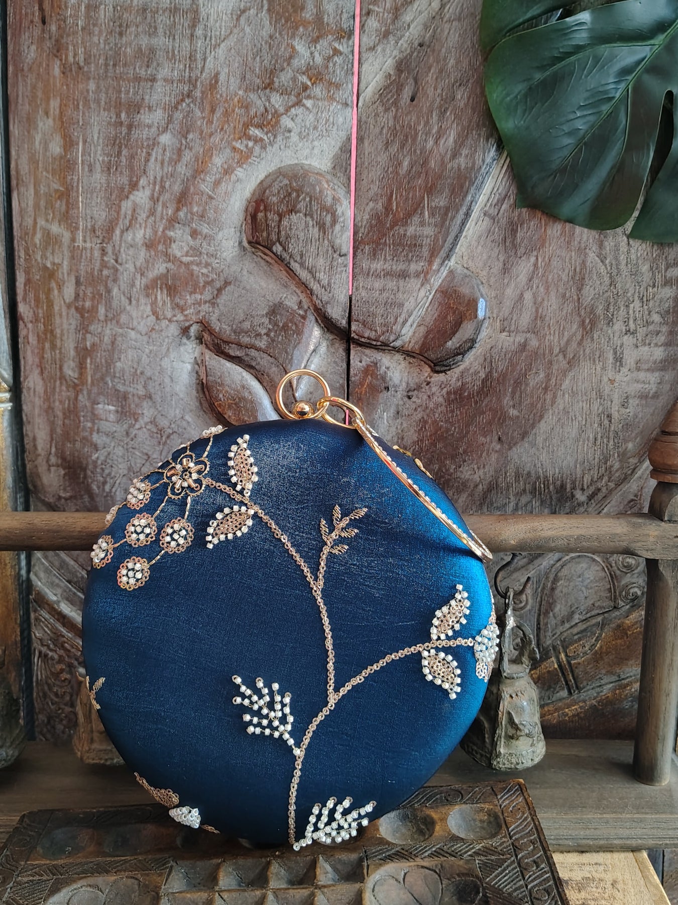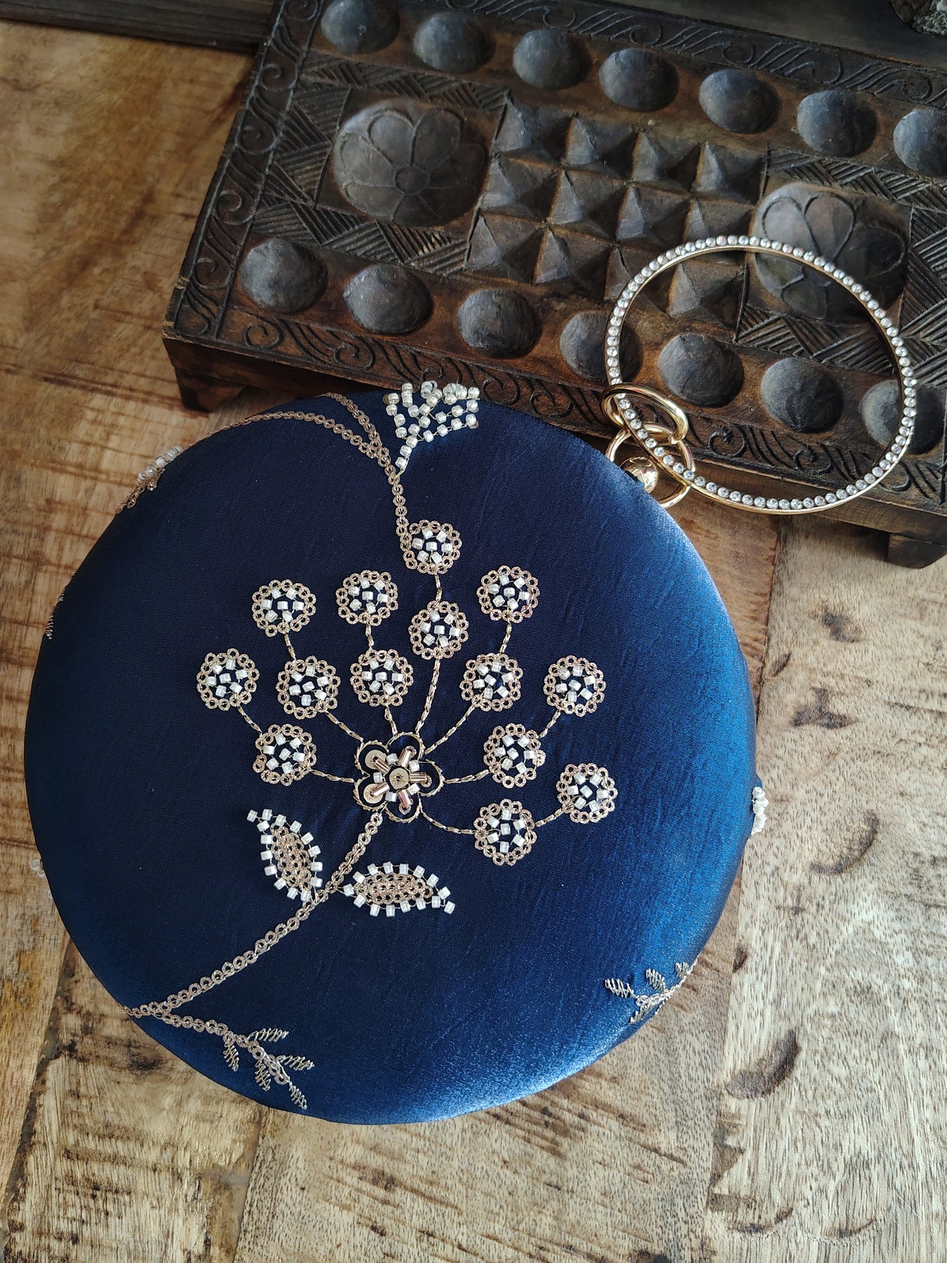 Peacock Blue Embroidered Round Clutch