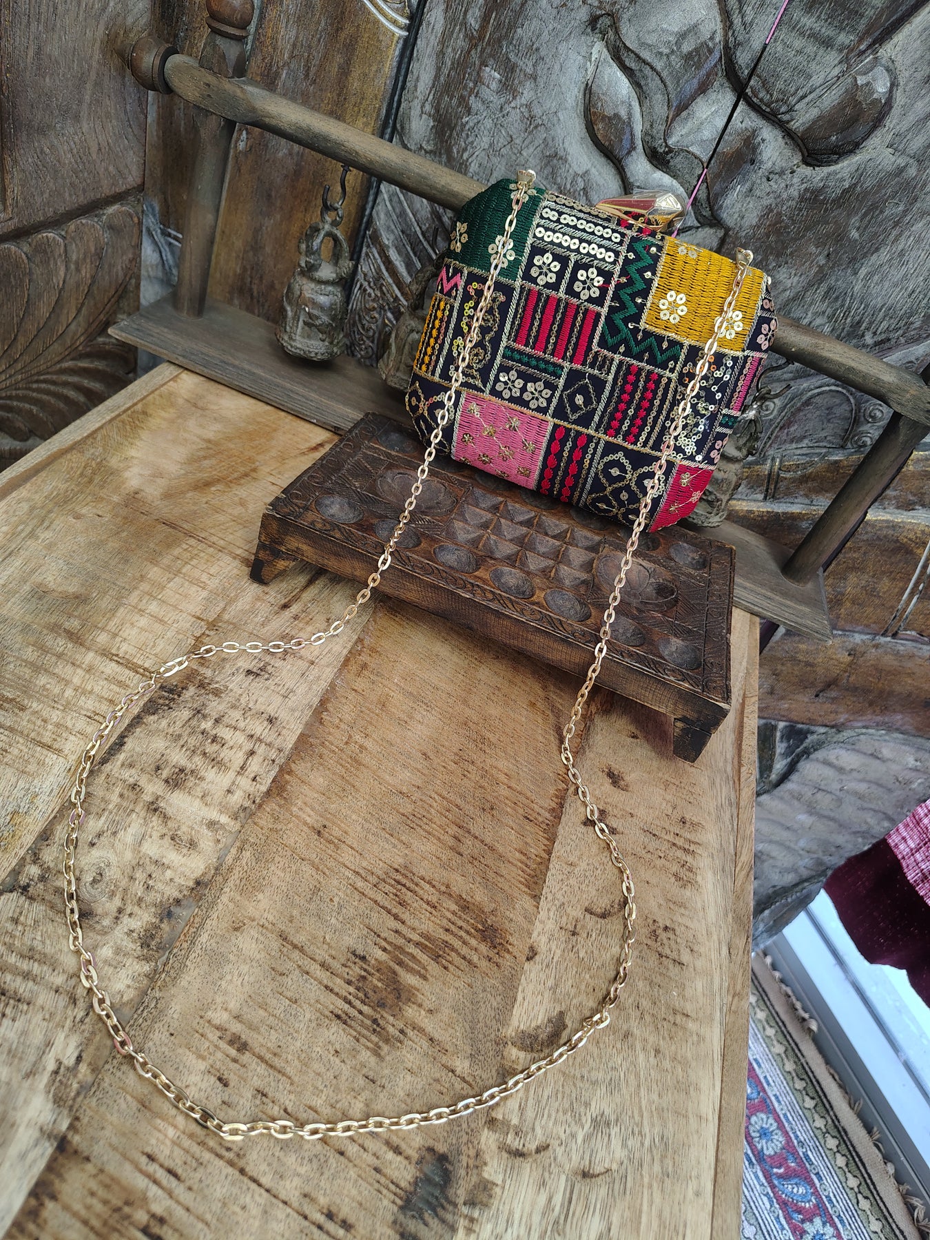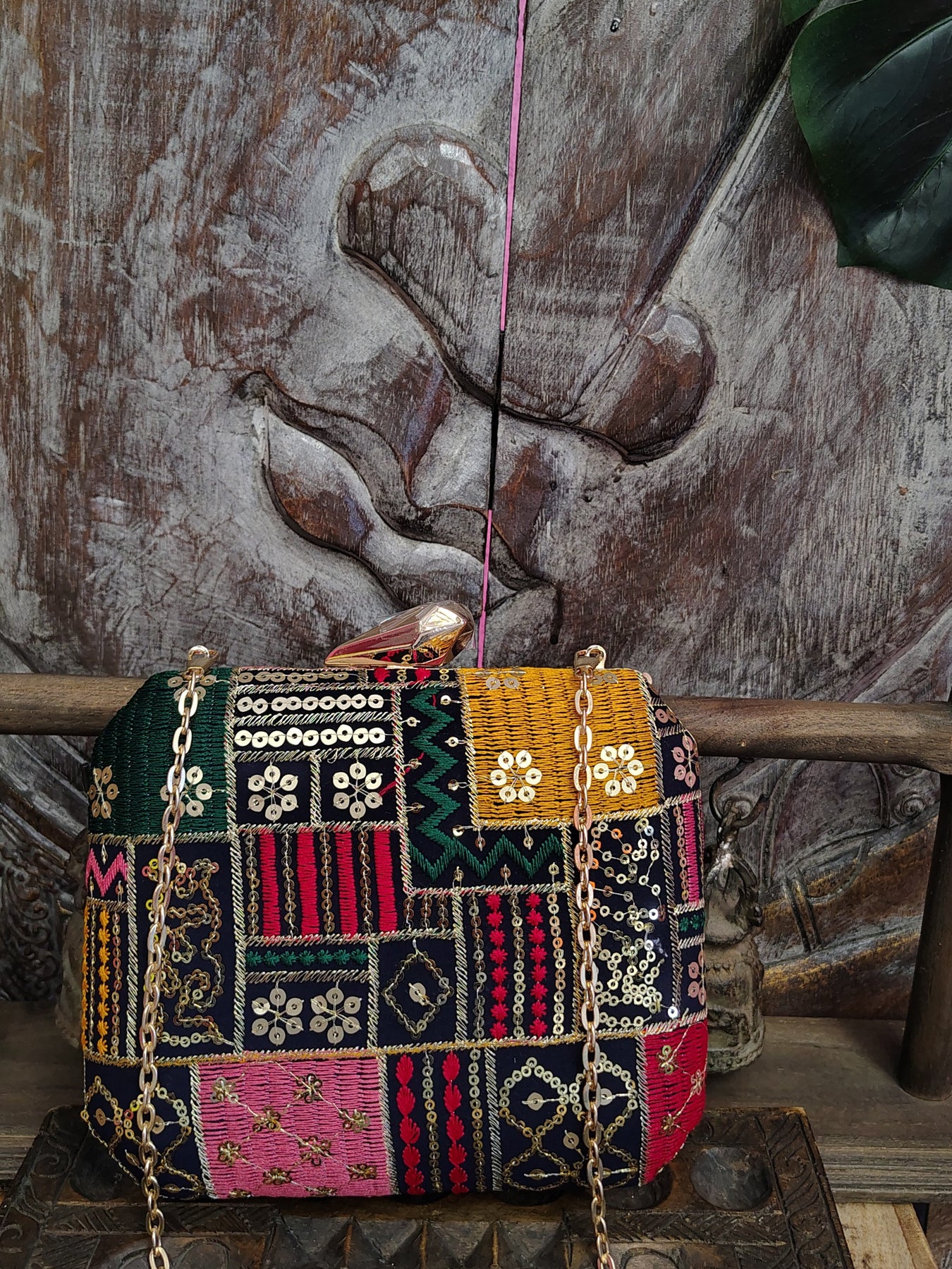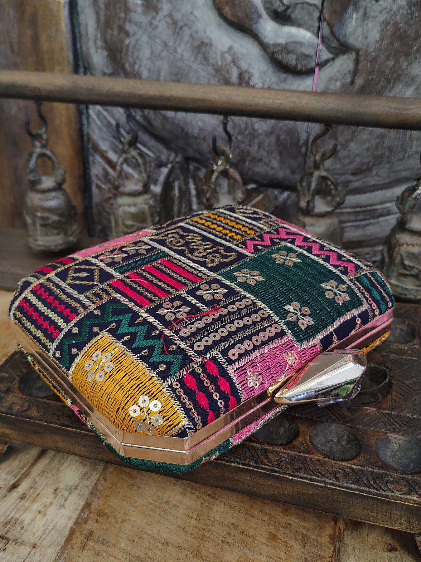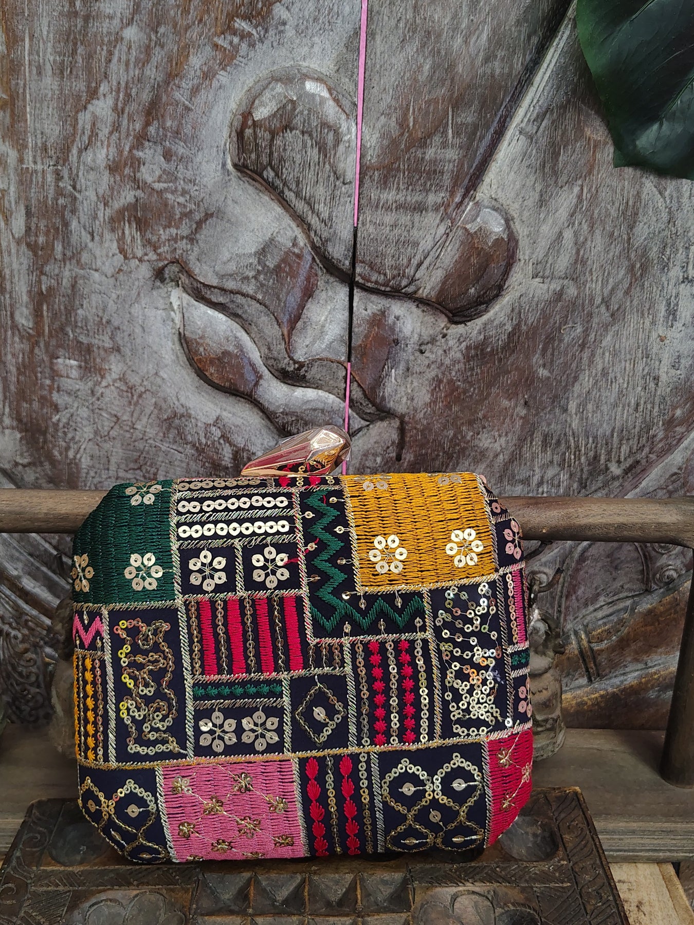 Square Embroidered Box Clutch