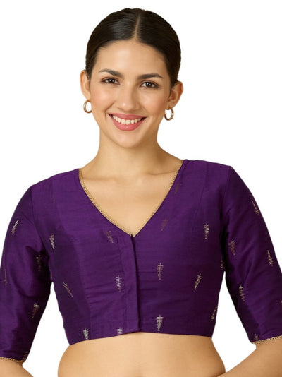 Royal Blue Silk Cotton Blouse with Woven Motifs