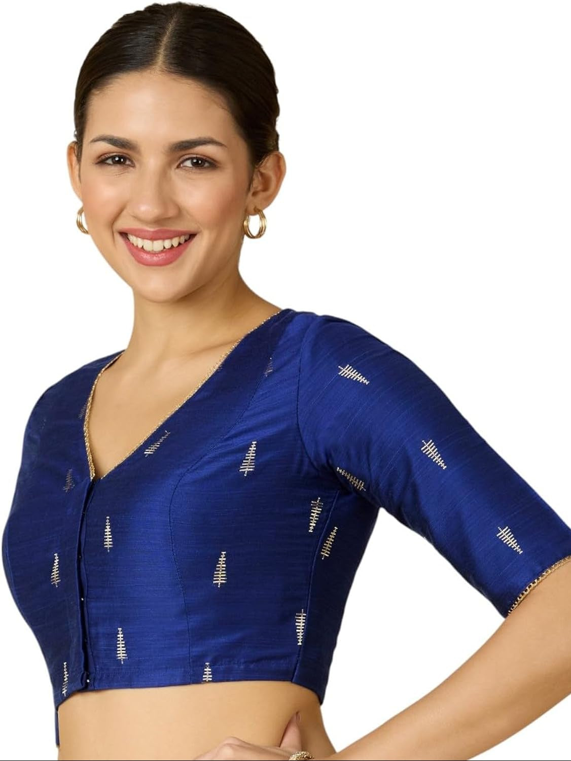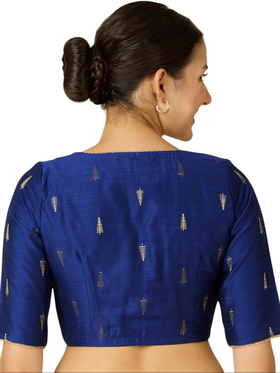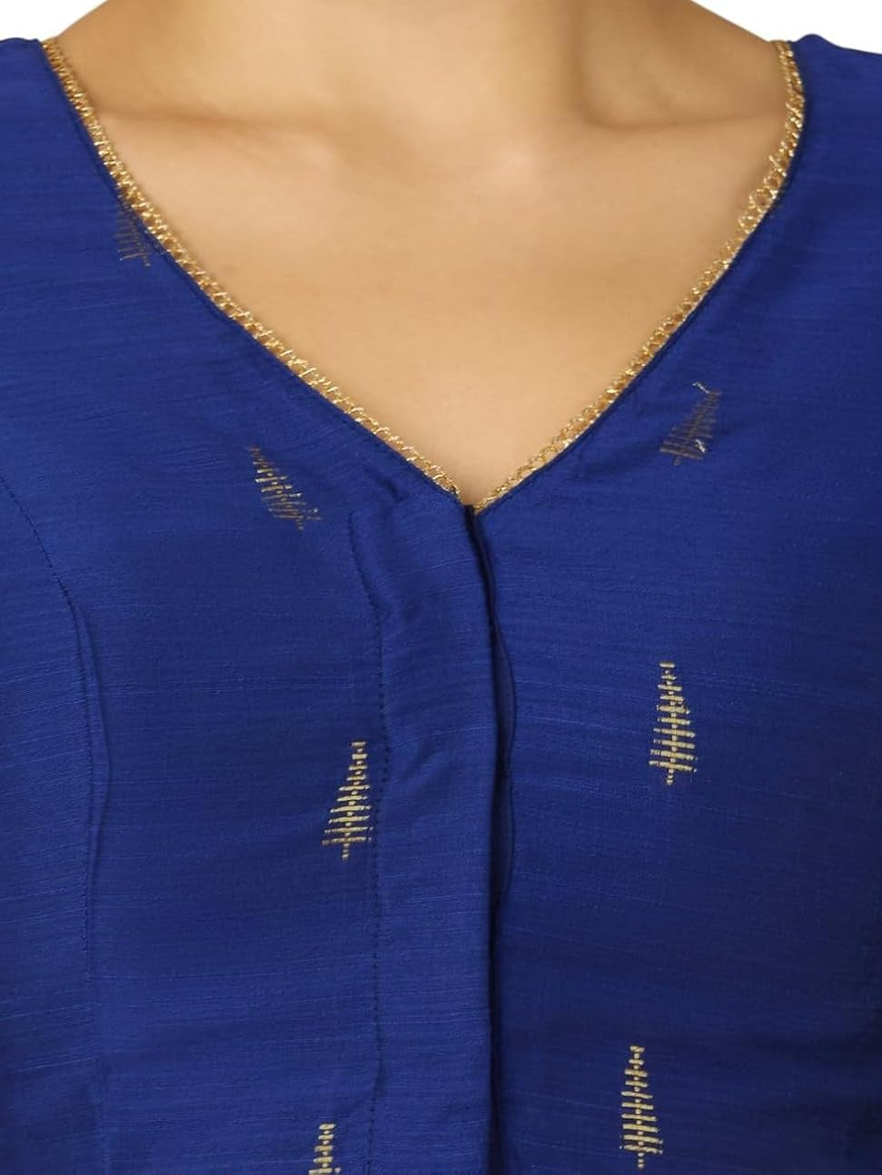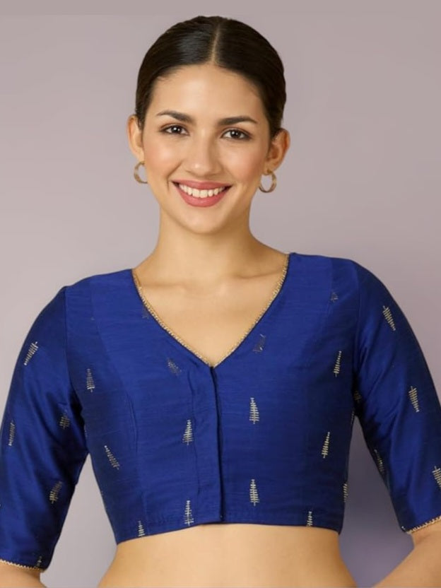 Royal Blue Silk Cotton Blouse with Woven Designs