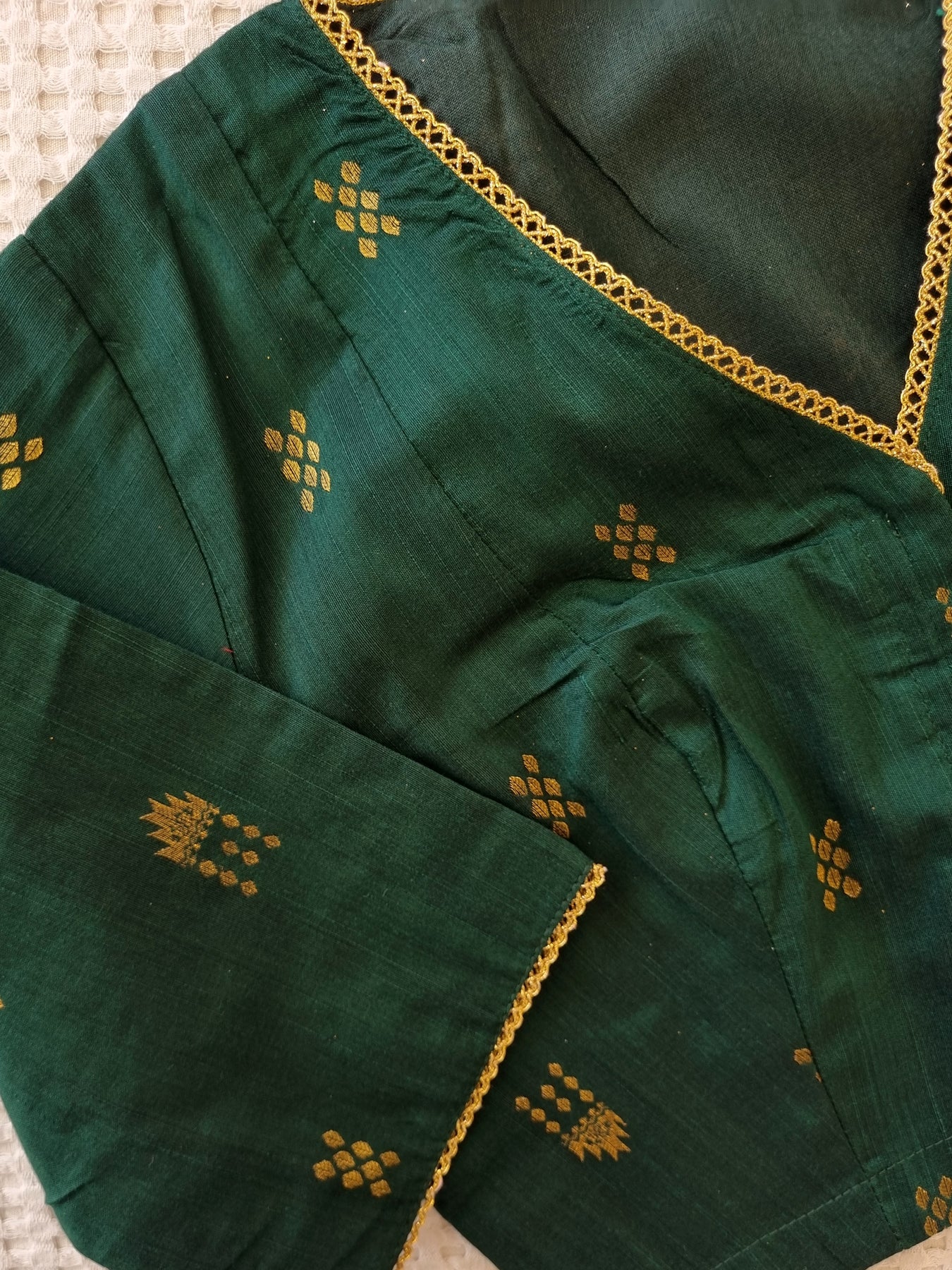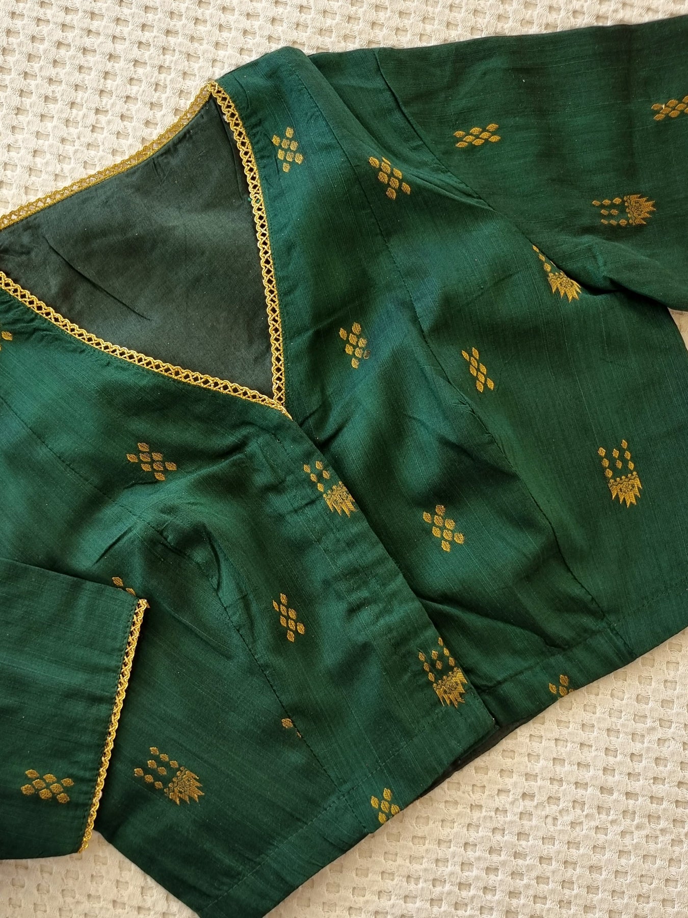 Bottle Green Silk Cotton Blouse with Woven Motifs