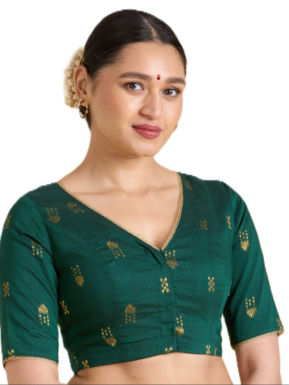 Bottle Green Silk Cotton Blouse with Woven Designs
