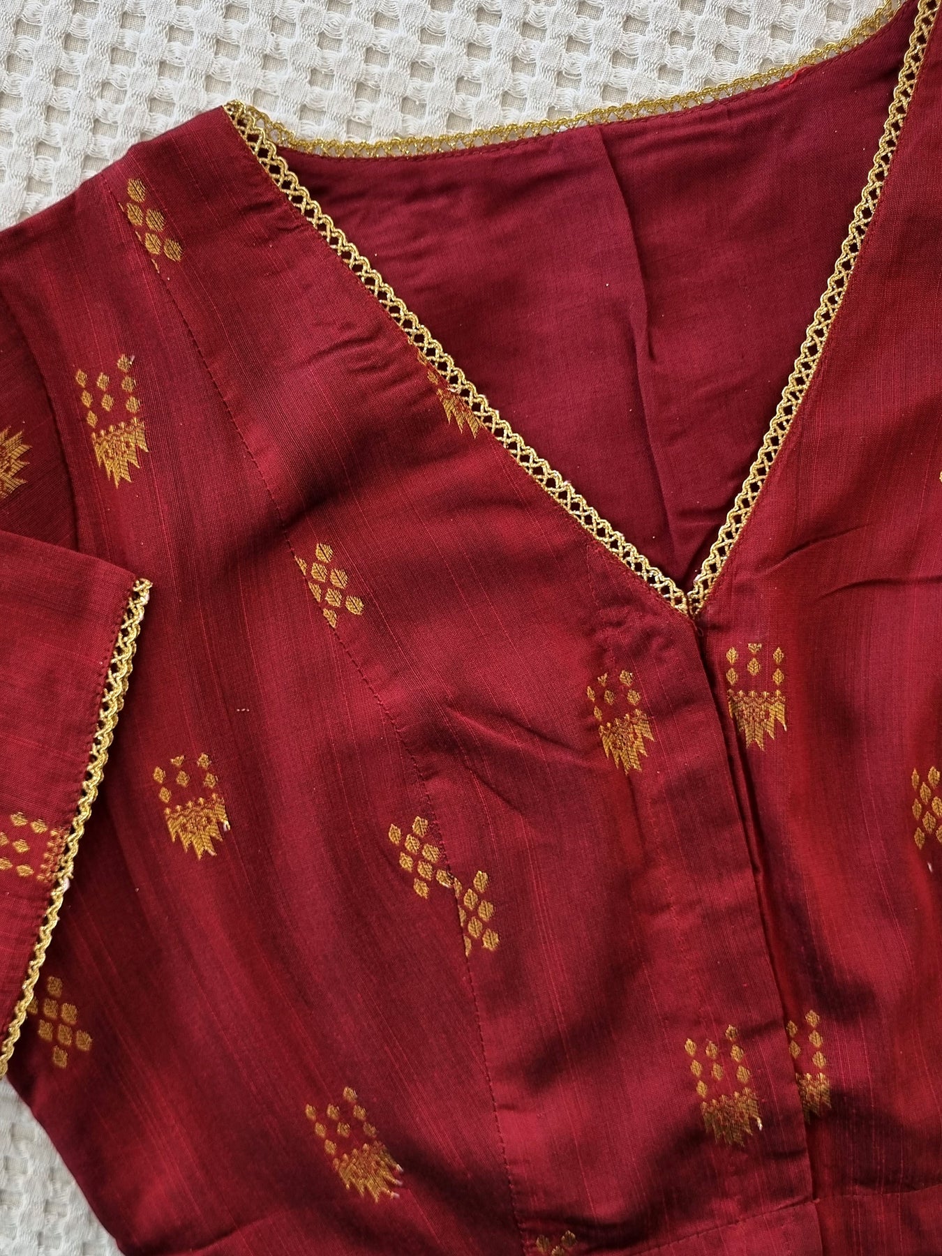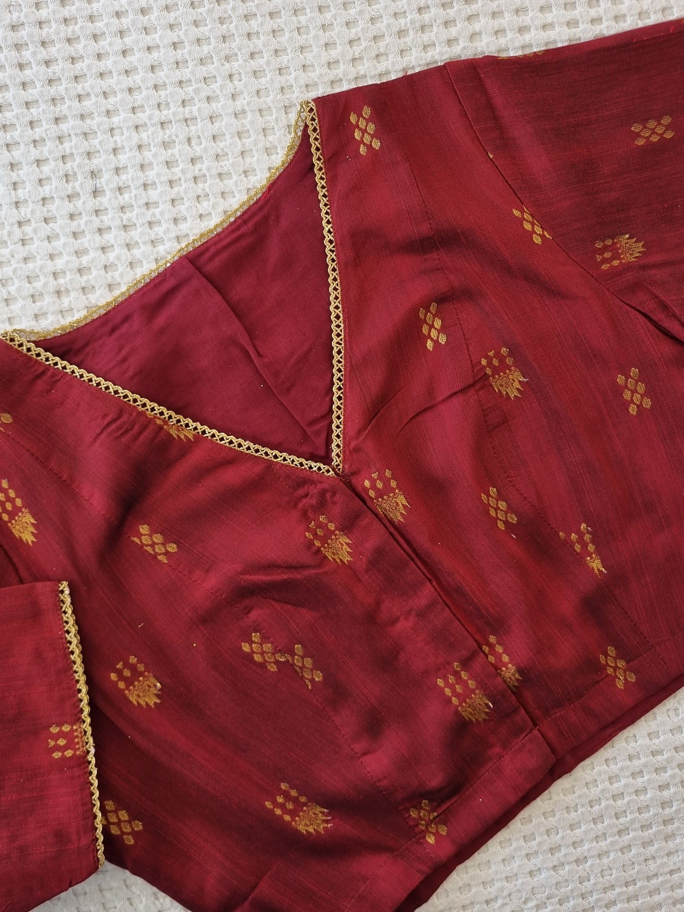 [{"id":47742506893544,"title":"32 (Adjustable to 34)","option1":"32 (Adjustable to 34)","option2":null,"option3":null,"sku":null,"requires_shipping":true,"taxable":true,"featured_image":null,"available":false,"name":"Maroon Silk Cotton Blouse with Woven Motifs - 32 (Adjustable to 34)","public_title":"32 (Adjustable to 34)","options":["32 (Adjustable to 34)"],"price":6000,"weight":200,"compare_at_price":null,"inventory_quantity":0,"inventory_management":"shopify","inventory_policy":"deny","barcode":null,"requires_selling_plan":false,"selling_plan_allocations":[]},{"id":47742506926312,"title":"34 (Adjustable to 36)","option1":"34 (Adjustable to 36)","option2":null,"option3":null,"sku":null,"requires_shipping":true,"taxable":true,"featured_image":null,"available":true,"name":"Maroon Silk Cotton Blouse with Woven Motifs - 34 (Adjustable to 36)","public_title":"34 (Adjustable to 36)","options":["34 (Adjustable to 36)"],"price":6000,"weight":200,"compare_at_price":null,"inventory_quantity":2,"inventory_management":"shopify","inventory_policy":"deny","barcode":null,"requires_selling_plan":false,"selling_plan_allocations":[]},{"id":47742506959080,"title":"36 (Adjustable to 38)","option1":"36 (Adjustable to 38)","option2":null,"option3":null,"sku":null,"requires_shipping":true,"taxable":true,"featured_image":null,"available":true,"name":"Maroon Silk Cotton Blouse with Woven Motifs - 36 (Adjustable to 38)","public_title":"36 (Adjustable to 38)","options":["36 (Adjustable to 38)"],"price":6000,"weight":200,"compare_at_price":null,"inventory_quantity":1,"inventory_management":"shopify","inventory_policy":"deny","barcode":null,"requires_selling_plan":false,"selling_plan_allocations":[]},{"id":47742506991848,"title":"38 (Adjustable to 40)","option1":"38 (Adjustable to 40)","option2":null,"option3":null,"sku":null,"requires_shipping":true,"taxable":true,"featured_image":null,"available":true,"name":"Maroon Silk Cotton Blouse with Woven Motifs - 38 (Adjustable to 40)","public_title":"38 (Adjustable to 40)","options":["38 (Adjustable to 40)"],"price":6000,"weight":200,"compare_at_price":null,"inventory_quantity":1,"inventory_management":"shopify","inventory_policy":"deny","barcode":null,"requires_selling_plan":false,"selling_plan_allocations":[]},{"id":47742507024616,"title":"40 (Adjustable to 42)","option1":"40 (Adjustable to 42)","option2":null,"option3":null,"sku":null,"requires_shipping":true,"taxable":true,"featured_image":null,"available":true,"name":"Maroon Silk Cotton Blouse with Woven Motifs - 40 (Adjustable to 42)","public_title":"40 (Adjustable to 42)","options":["40 (Adjustable to 42)"],"price":6000,"weight":200,"compare_at_price":null,"inventory_quantity":2,"inventory_management":"shopify","inventory_policy":"deny","barcode":null,"requires_selling_plan":false,"selling_plan_allocations":[]},{"id":47742507057384,"title":"42 (Adjustable to 44)","option1":"42 (Adjustable to 44)","option2":null,"option3":null,"sku":null,"requires_shipping":true,"taxable":true,"featured_image":null,"available":true,"name":"Maroon Silk Cotton Blouse with Woven Motifs - 42 (Adjustable to 44)","public_title":"42 (Adjustable to 44)","options":["42 (Adjustable to 44)"],"price":6000,"weight":200,"compare_at_price":null,"inventory_quantity":1,"inventory_management":"shopify","inventory_policy":"deny","barcode":null,"requires_selling_plan":false,"selling_plan_allocations":[]},{"id":47742507090152,"title":"44 ( Adjustable to 46)","option1":"44 ( Adjustable to 46)","option2":null,"option3":null,"sku":null,"requires_shipping":true,"taxable":true,"featured_image":null,"available":false,"name":"Maroon Silk Cotton Blouse with Woven Motifs - 44 ( Adjustable to 46)","public_title":"44 ( Adjustable to 46)","options":["44 ( Adjustable to 46)"],"price":6000,"weight":0,"compare_at_price":null,"inventory_quantity":0,"inventory_management":"shopify","inventory_policy":"deny","barcode":null,"requires_selling_plan":false,"selling_plan_allocations":[]}]