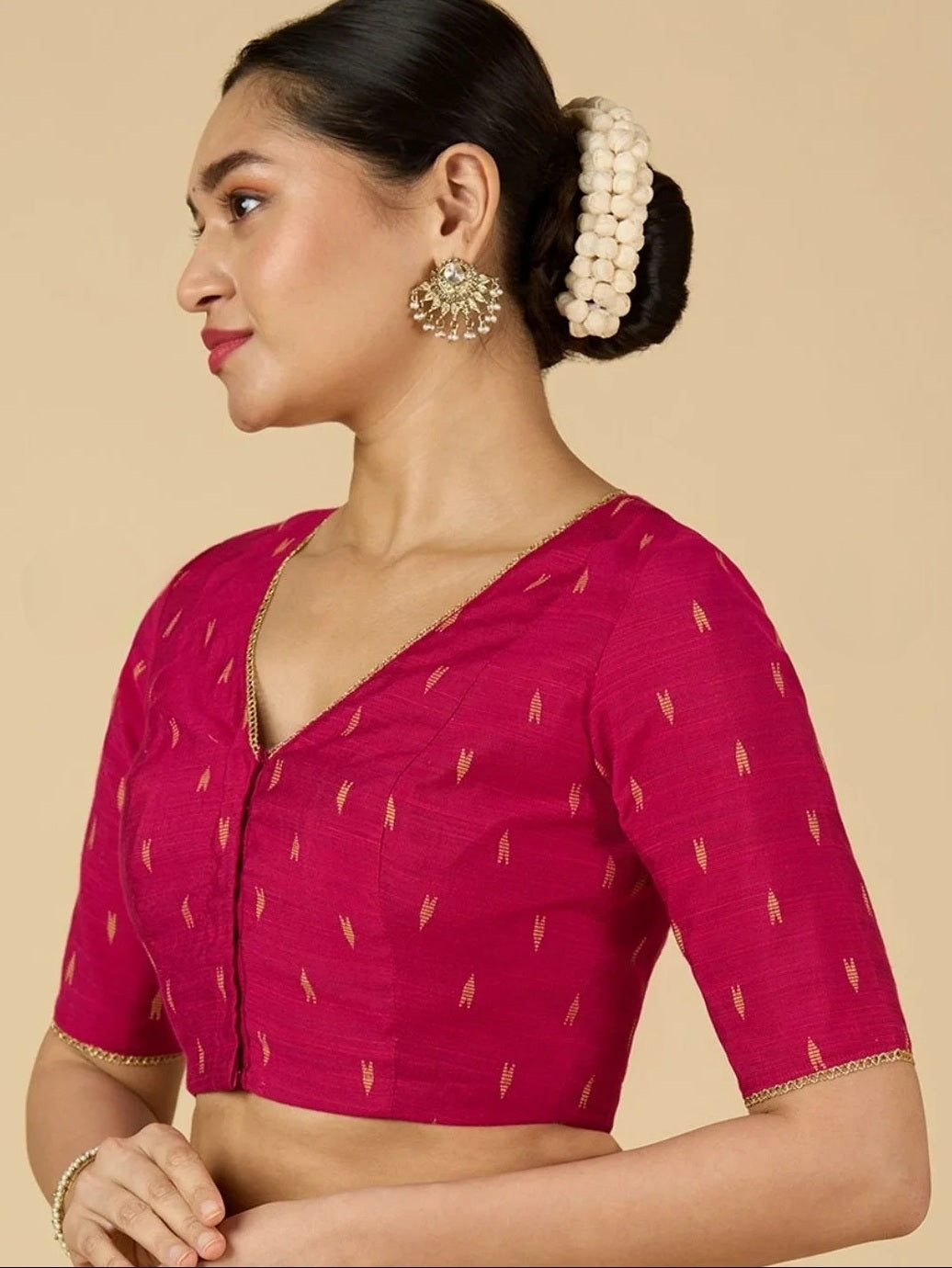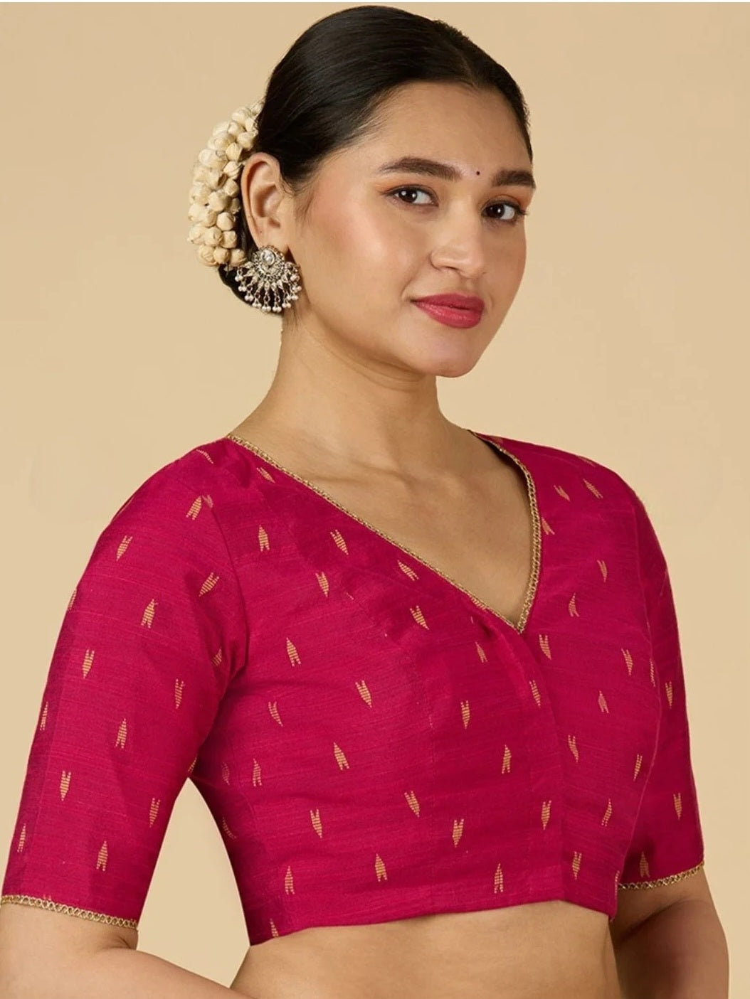 Rani Pink Silk Cotton Blouse with Woven Designs