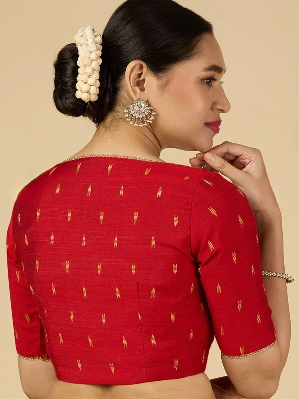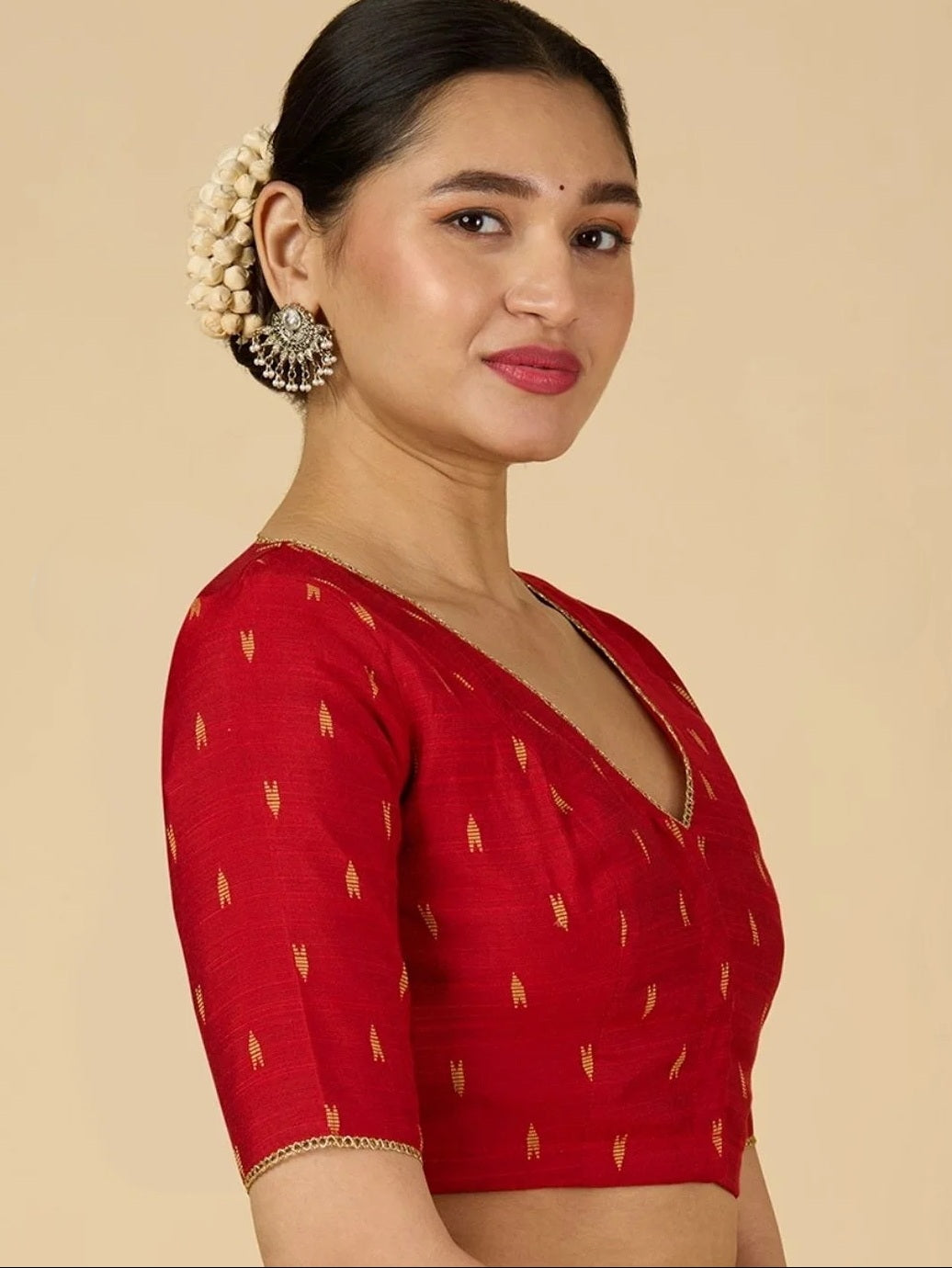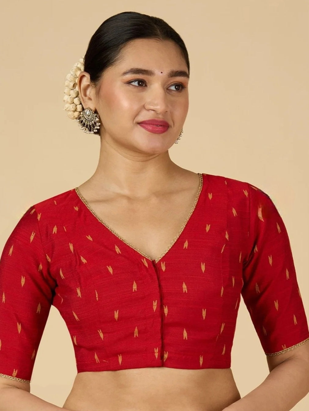 [{"id":48064452264168,"title":"32 (Adjustable to 34)","option1":"32 (Adjustable to 34)","option2":null,"option3":null,"sku":null,"requires_shipping":true,"taxable":true,"featured_image":null,"available":false,"name":"Red Silk Cotton Blouse with Woven Motifs - 32 (Adjustable to 34)","public_title":"32 (Adjustable to 34)","options":["32 (Adjustable to 34)"],"price":5400,"weight":200,"compare_at_price":6000,"inventory_quantity":0,"inventory_management":"shopify","inventory_policy":"deny","barcode":"07843816","requires_selling_plan":false,"selling_plan_allocations":[]},{"id":48064452296936,"title":"34 (Adjustable to 36)","option1":"34 (Adjustable to 36)","option2":null,"option3":null,"sku":null,"requires_shipping":true,"taxable":true,"featured_image":null,"available":false,"name":"Red Silk Cotton Blouse with Woven Motifs - 34 (Adjustable to 36)","public_title":"34 (Adjustable to 36)","options":["34 (Adjustable to 36)"],"price":5400,"weight":200,"compare_at_price":6000,"inventory_quantity":0,"inventory_management":"shopify","inventory_policy":"deny","barcode":"07876584","requires_selling_plan":false,"selling_plan_allocations":[]},{"id":48064452329704,"title":"36 (Adjustable to 38)","option1":"36 (Adjustable to 38)","option2":null,"option3":null,"sku":null,"requires_shipping":true,"taxable":true,"featured_image":null,"available":true,"name":"Red Silk Cotton Blouse with Woven Motifs - 36 (Adjustable to 38)","public_title":"36 (Adjustable to 38)","options":["36 (Adjustable to 38)"],"price":5400,"weight":200,"compare_at_price":6000,"inventory_quantity":1,"inventory_management":"shopify","inventory_policy":"deny","barcode":"07909352","requires_selling_plan":false,"selling_plan_allocations":[]},{"id":48064452362472,"title":"38 (Adjustable to 40)","option1":"38 (Adjustable to 40)","option2":null,"option3":null,"sku":null,"requires_shipping":true,"taxable":true,"featured_image":null,"available":true,"name":"Red Silk Cotton Blouse with Woven Motifs - 38 (Adjustable to 40)","public_title":"38 (Adjustable to 40)","options":["38 (Adjustable to 40)"],"price":5400,"weight":200,"compare_at_price":6000,"inventory_quantity":1,"inventory_management":"shopify","inventory_policy":"deny","barcode":"07942120","requires_selling_plan":false,"selling_plan_allocations":[]},{"id":48064452395240,"title":"40 (Adjustable to 42)","option1":"40 (Adjustable to 42)","option2":null,"option3":null,"sku":null,"requires_shipping":true,"taxable":true,"featured_image":null,"available":true,"name":"Red Silk Cotton Blouse with Woven Motifs - 40 (Adjustable to 42)","public_title":"40 (Adjustable to 42)","options":["40 (Adjustable to 42)"],"price":5400,"weight":200,"compare_at_price":6000,"inventory_quantity":1,"inventory_management":"shopify","inventory_policy":"deny","barcode":"07974888","requires_selling_plan":false,"selling_plan_allocations":[]},{"id":48064452428008,"title":"42 (Adjustable to 44)","option1":"42 (Adjustable to 44)","option2":null,"option3":null,"sku":null,"requires_shipping":true,"taxable":true,"featured_image":null,"available":false,"name":"Red Silk Cotton Blouse with Woven Motifs - 42 (Adjustable to 44)","public_title":"42 (Adjustable to 44)","options":["42 (Adjustable to 44)"],"price":5400,"weight":200,"compare_at_price":6000,"inventory_quantity":0,"inventory_management":"shopify","inventory_policy":"deny","barcode":"08007656","requires_selling_plan":false,"selling_plan_allocations":[]},{"id":48064452460776,"title":"44 ( Adjustable to 46)","option1":"44 ( Adjustable to 46)","option2":null,"option3":null,"sku":null,"requires_shipping":true,"taxable":true,"featured_image":null,"available":false,"name":"Red Silk Cotton Blouse with Woven Motifs - 44 ( Adjustable to 46)","public_title":"44 ( Adjustable to 46)","options":["44 ( Adjustable to 46)"],"price":5400,"weight":0,"compare_at_price":6000,"inventory_quantity":0,"inventory_management":"shopify","inventory_policy":"deny","barcode":"08040424","requires_selling_plan":false,"selling_plan_allocations":[]}]