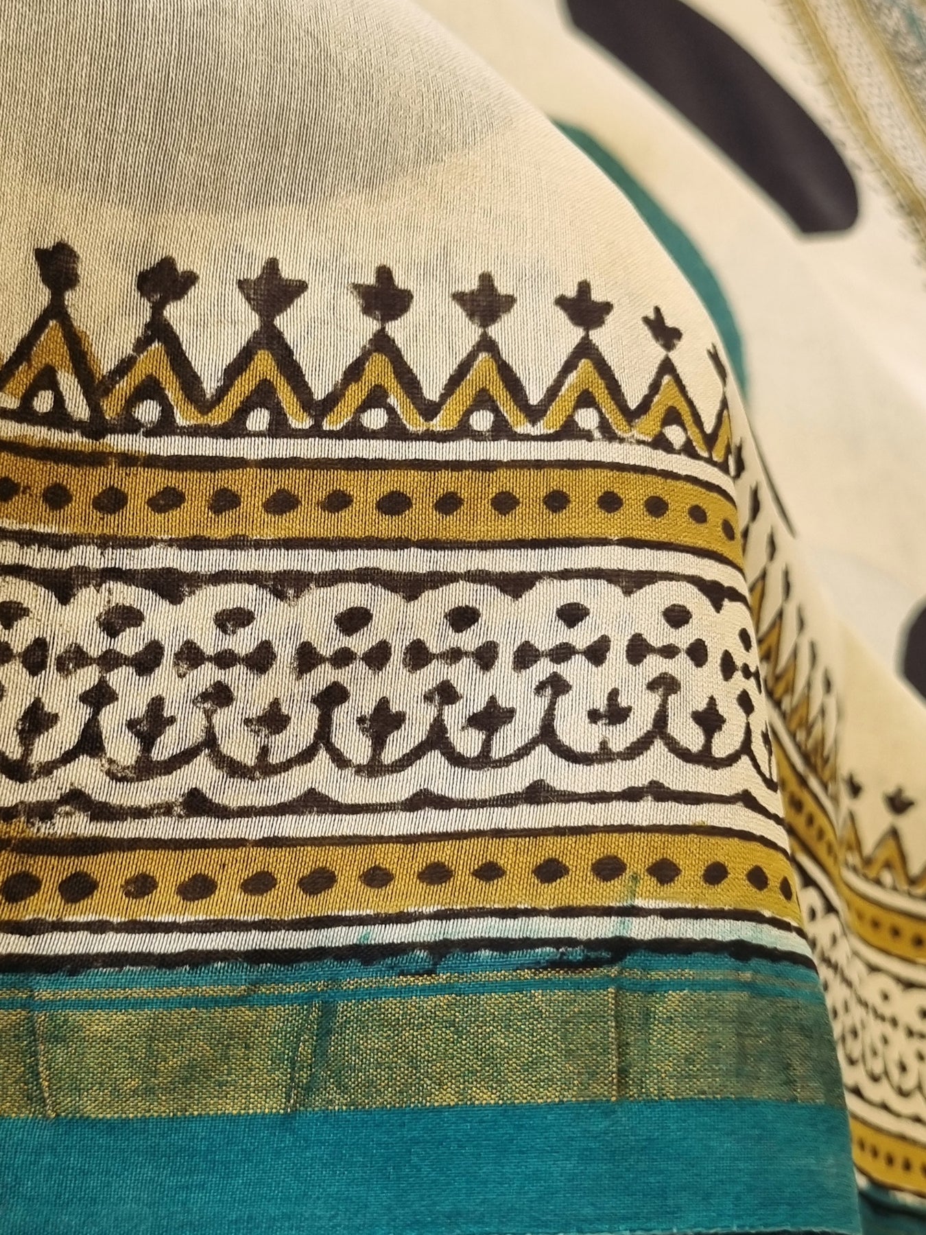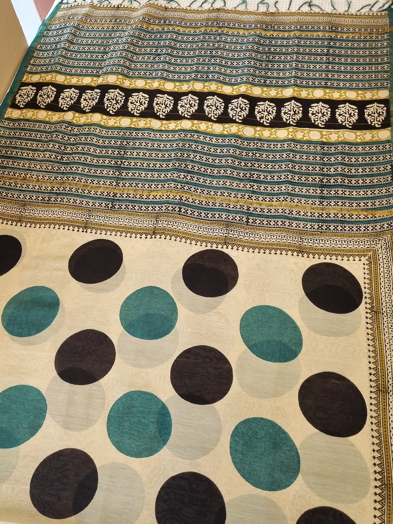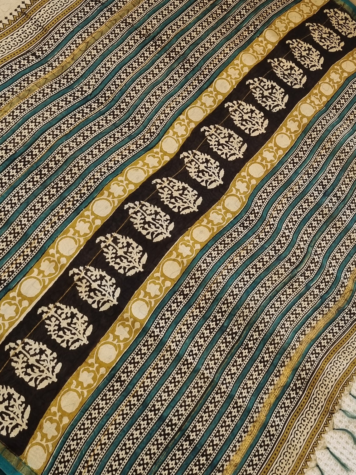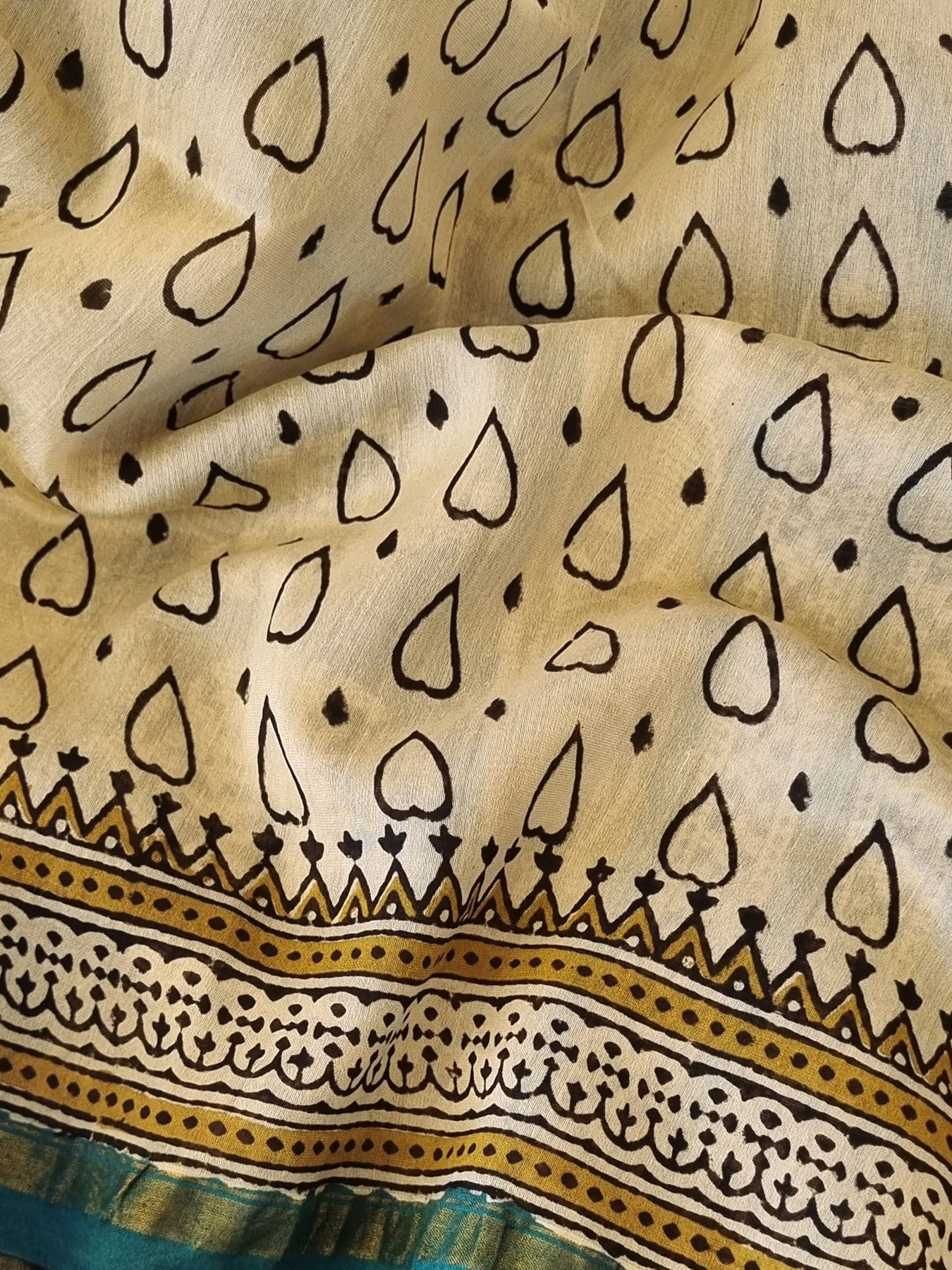 An elegant Chanderi Silk Cotton Saree Handblock Prints
