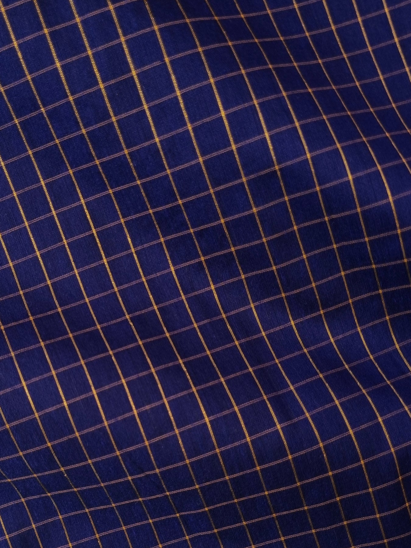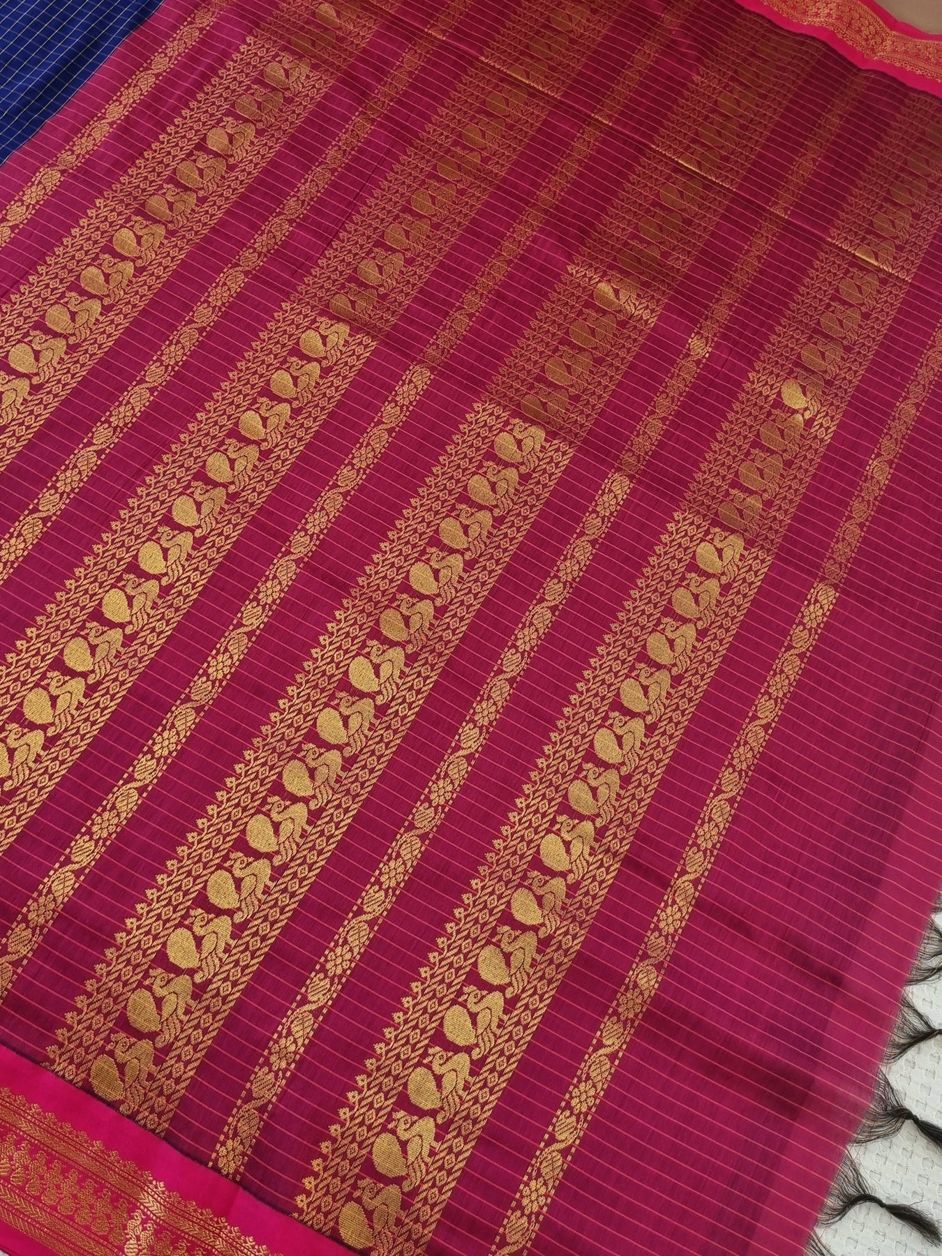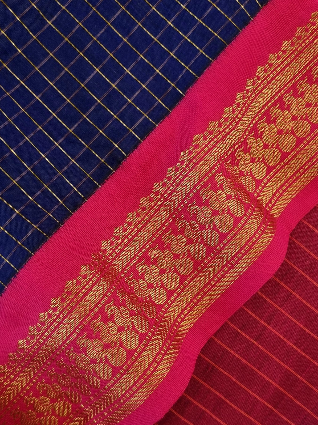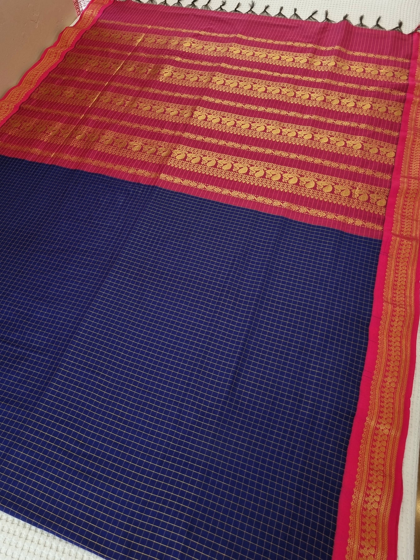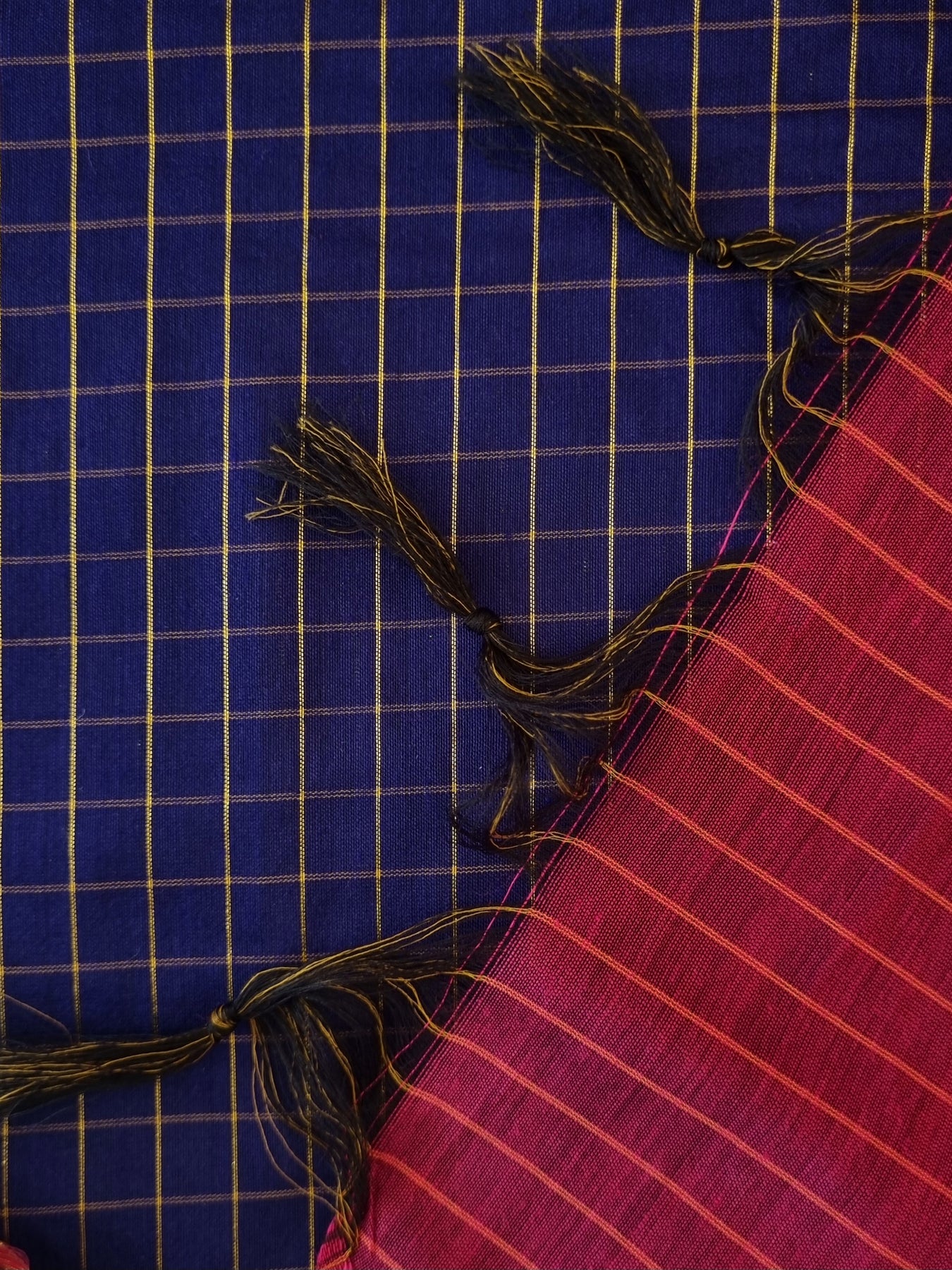 An elegant Blue Silk Cotton Saree with Zari checks on the body and, beautifully finished with tassels