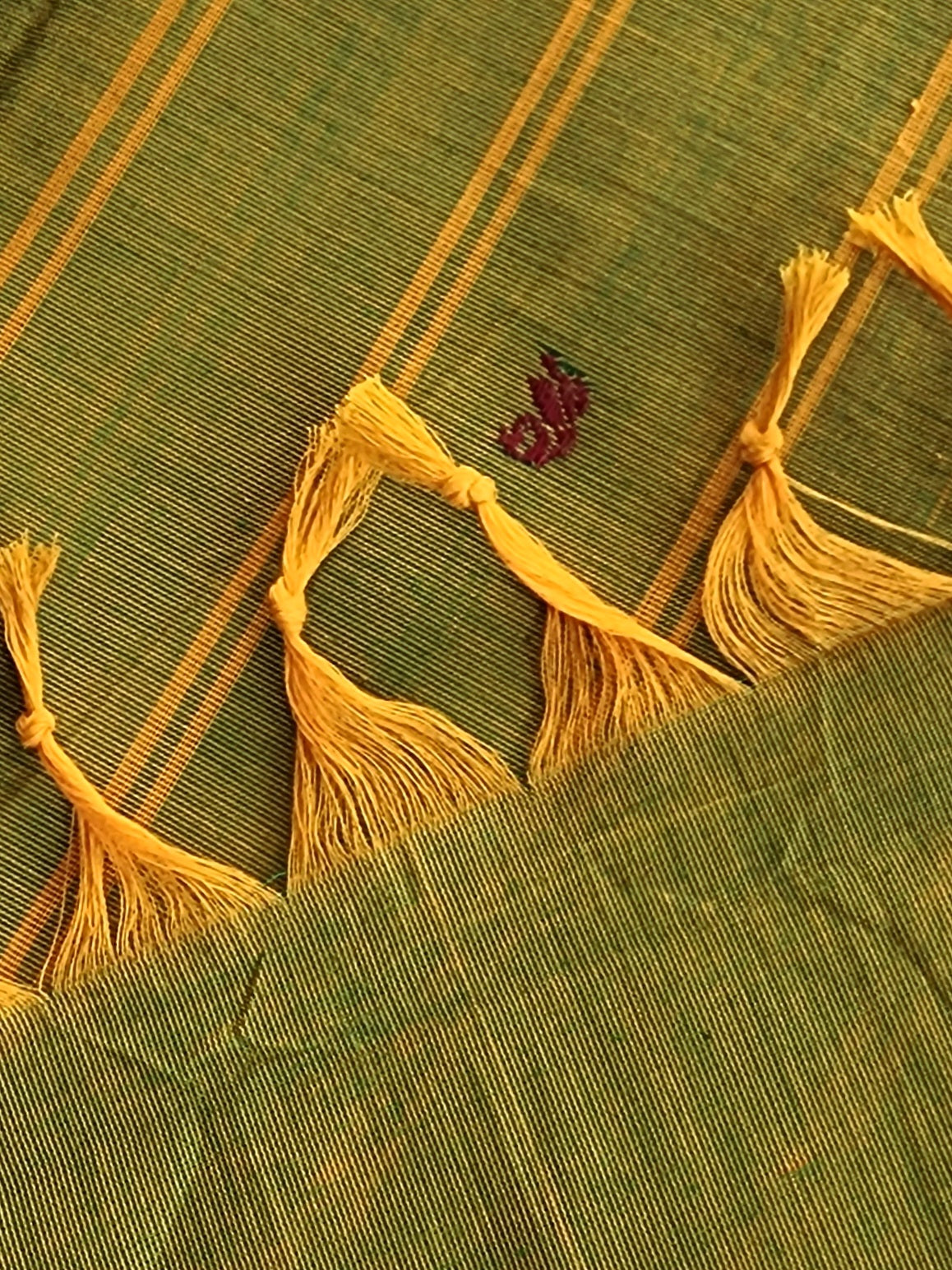 with Contrast Borders and a striped pallu, beautifully finished with tassels