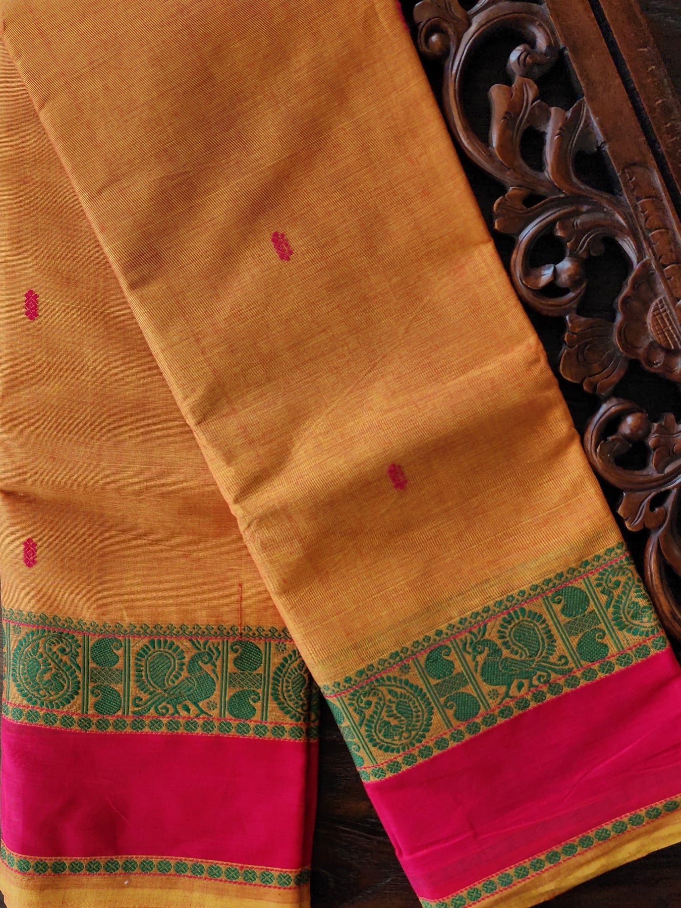 Handloom Kanchi Cotton Saree with running blouse fabric