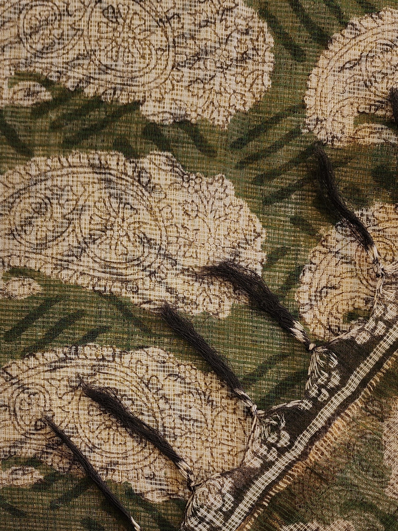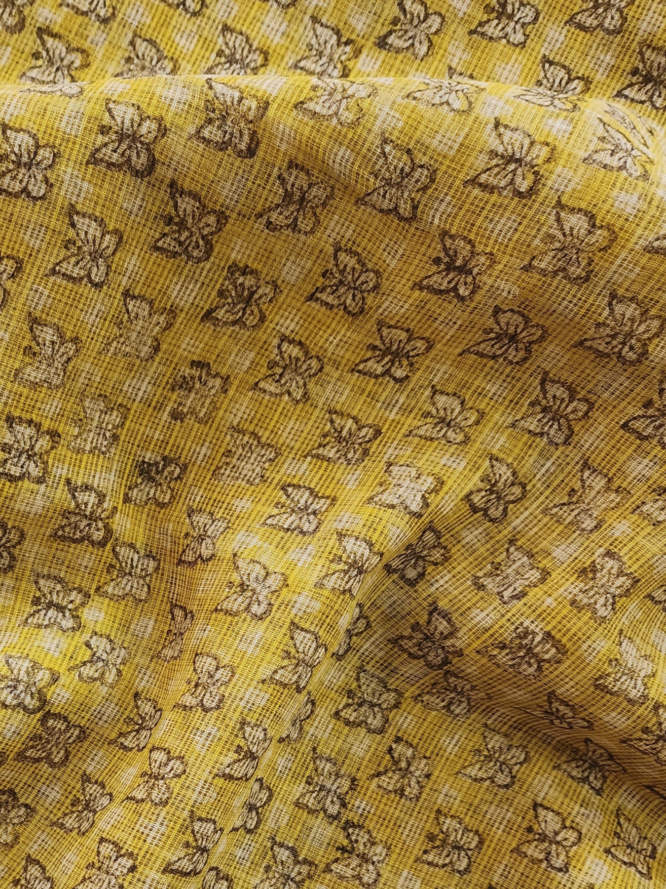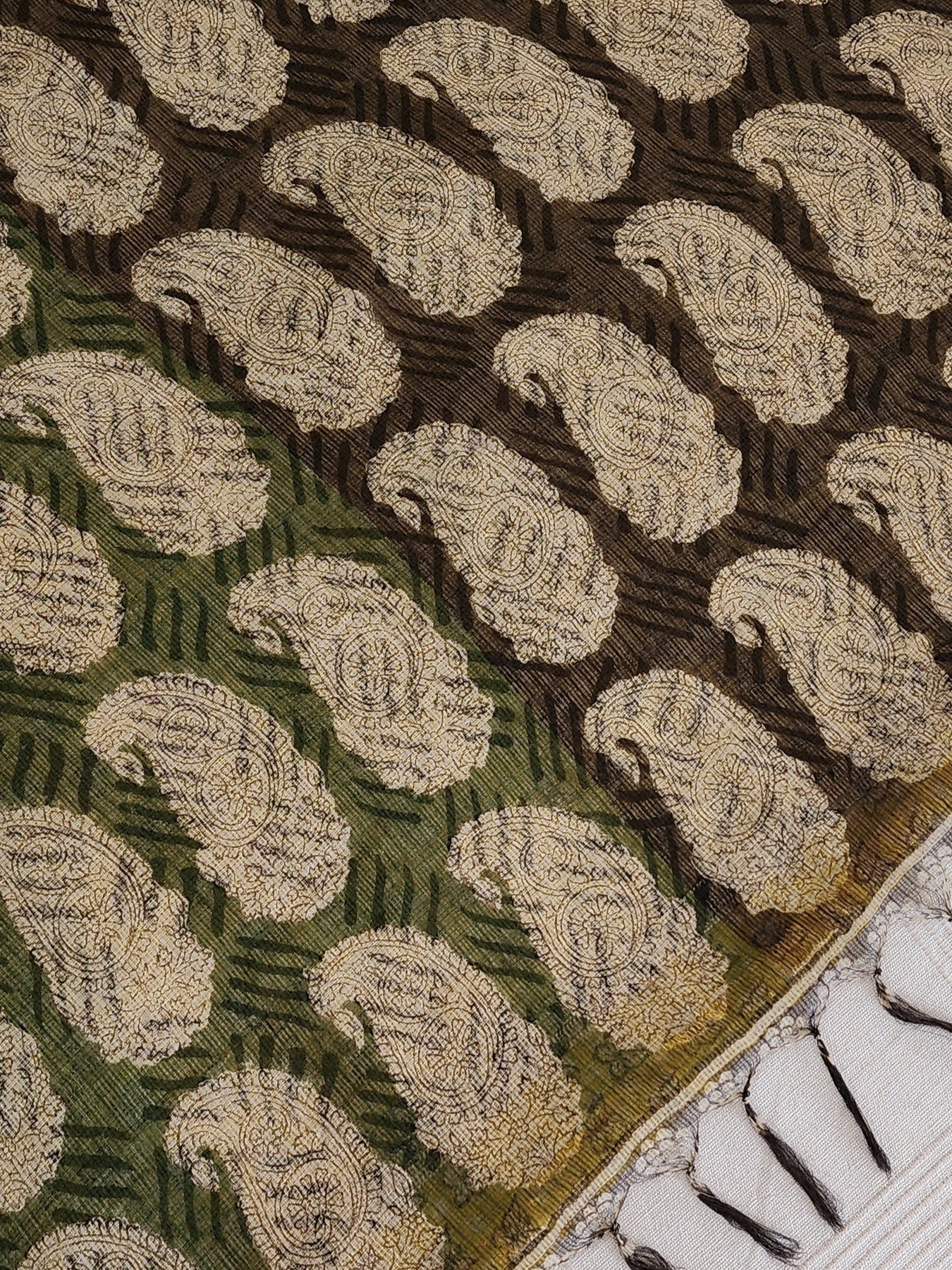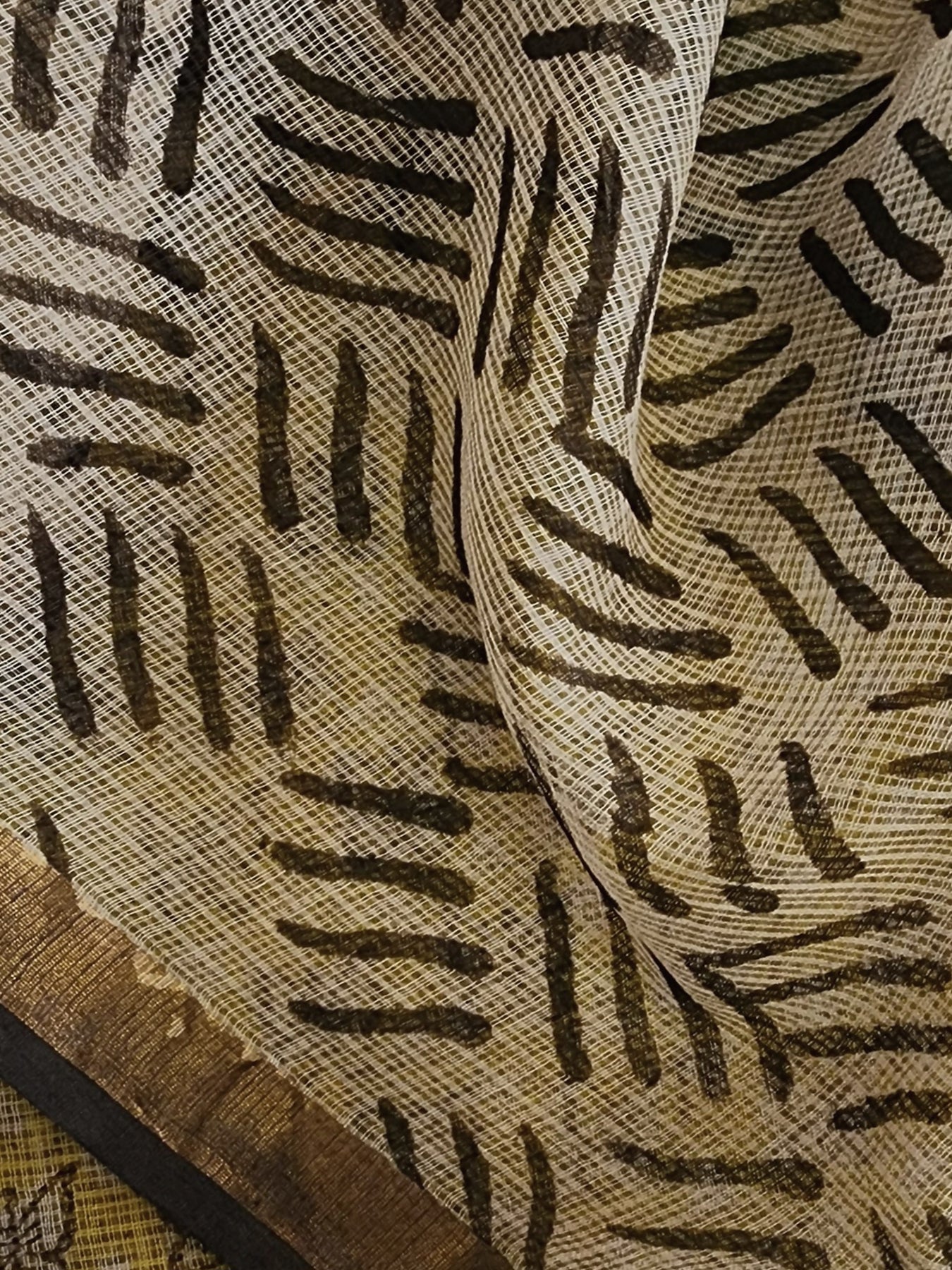 Beautiful saree with Gold borders and Block Prints on the Body & Pallu