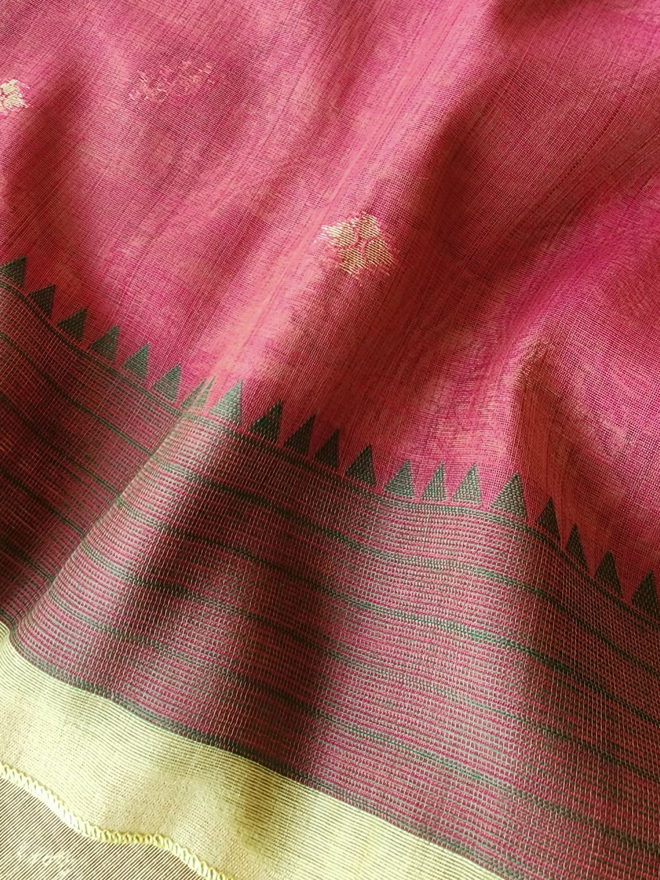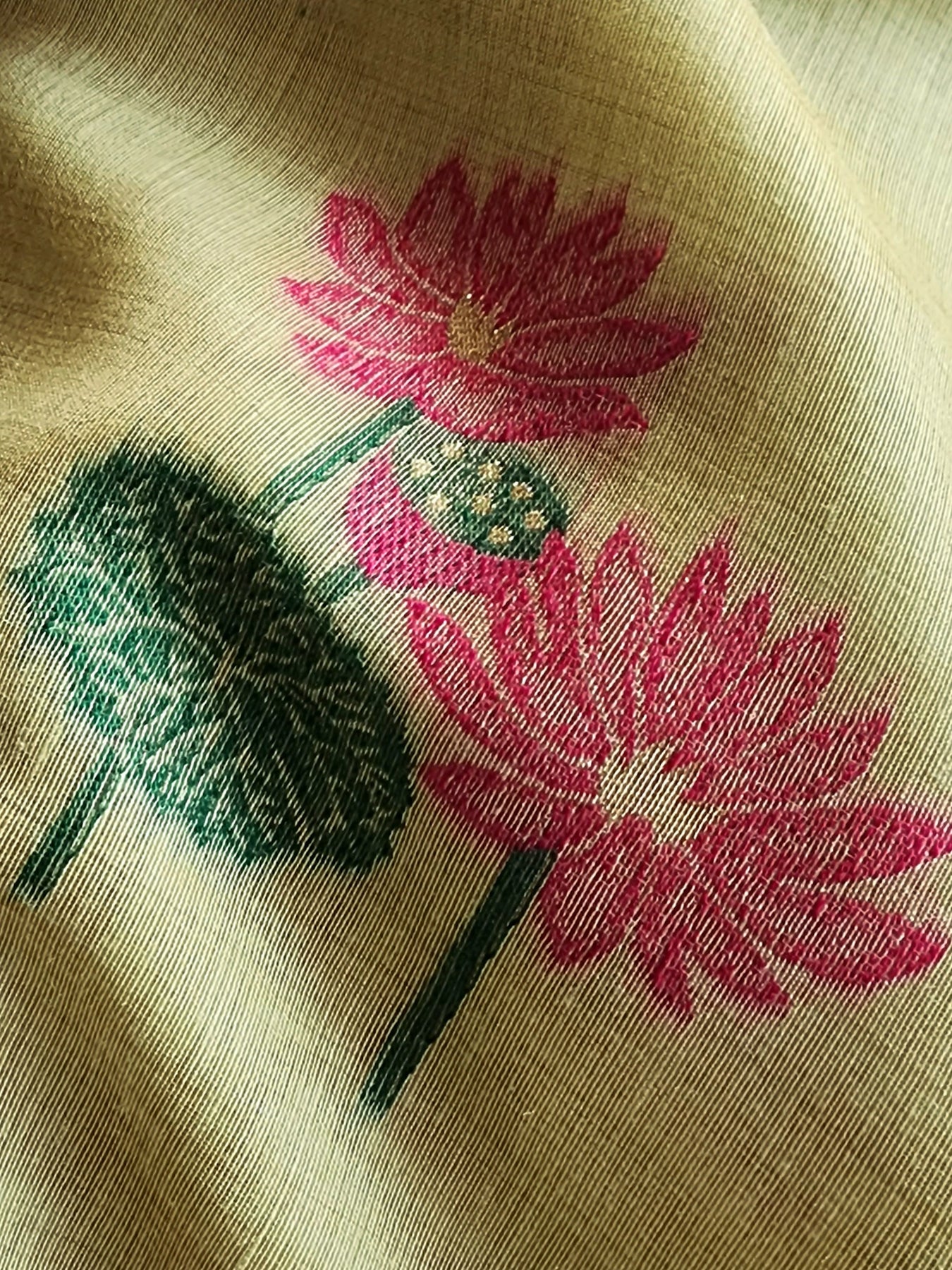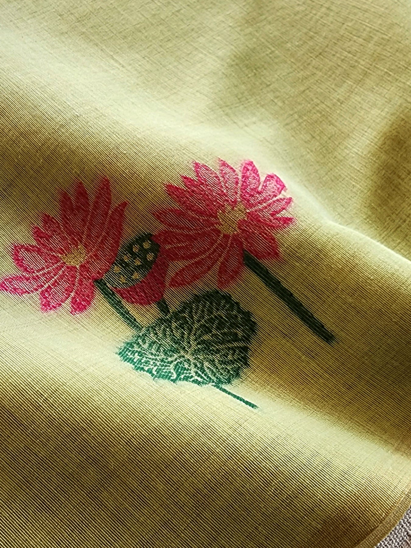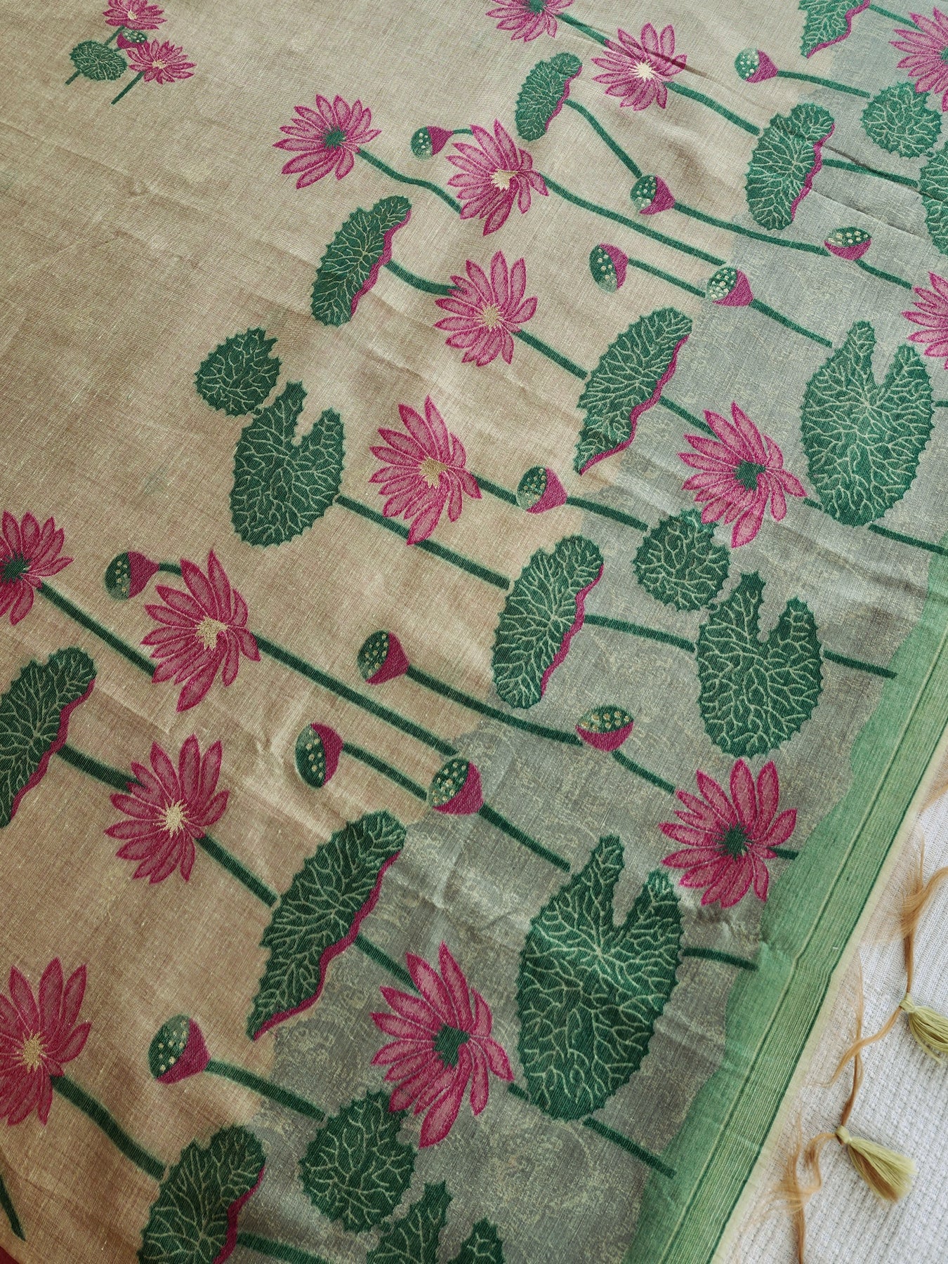 • Linen Cotton Saree, with Florals on the body and pallu, beautifully finished with tassels