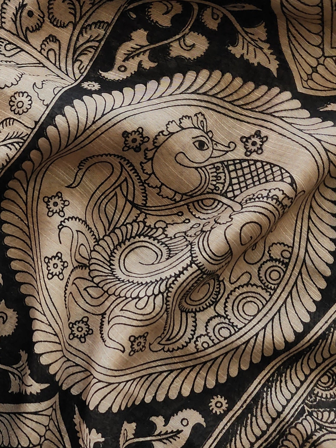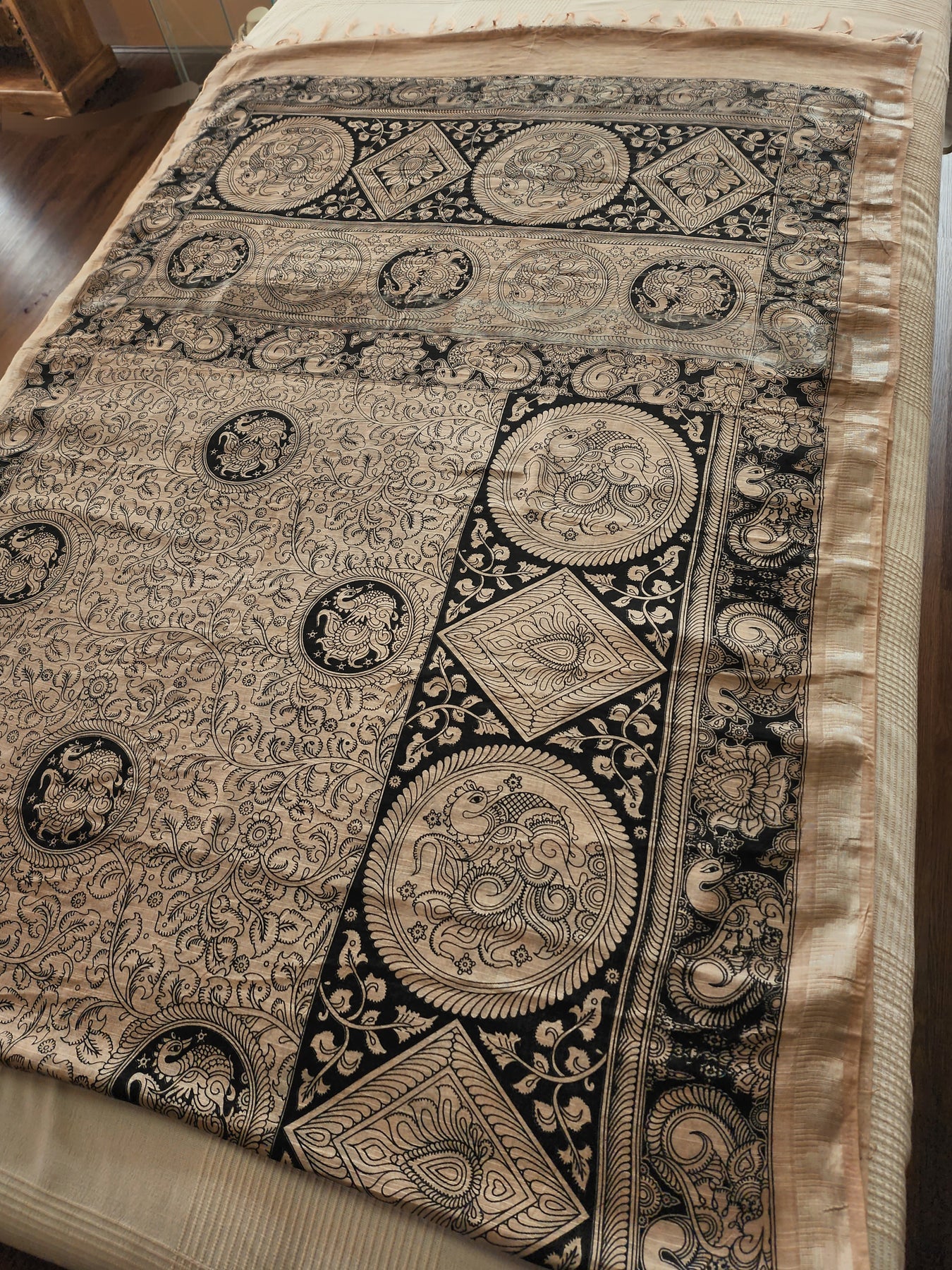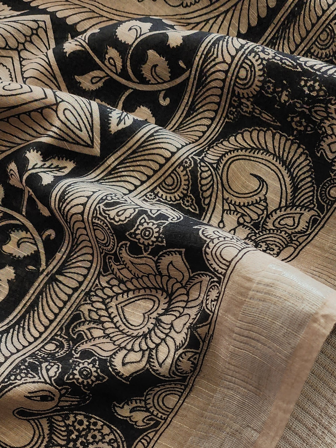 An elegant Silk Cotton Saree with Digital Kalamkari Prints