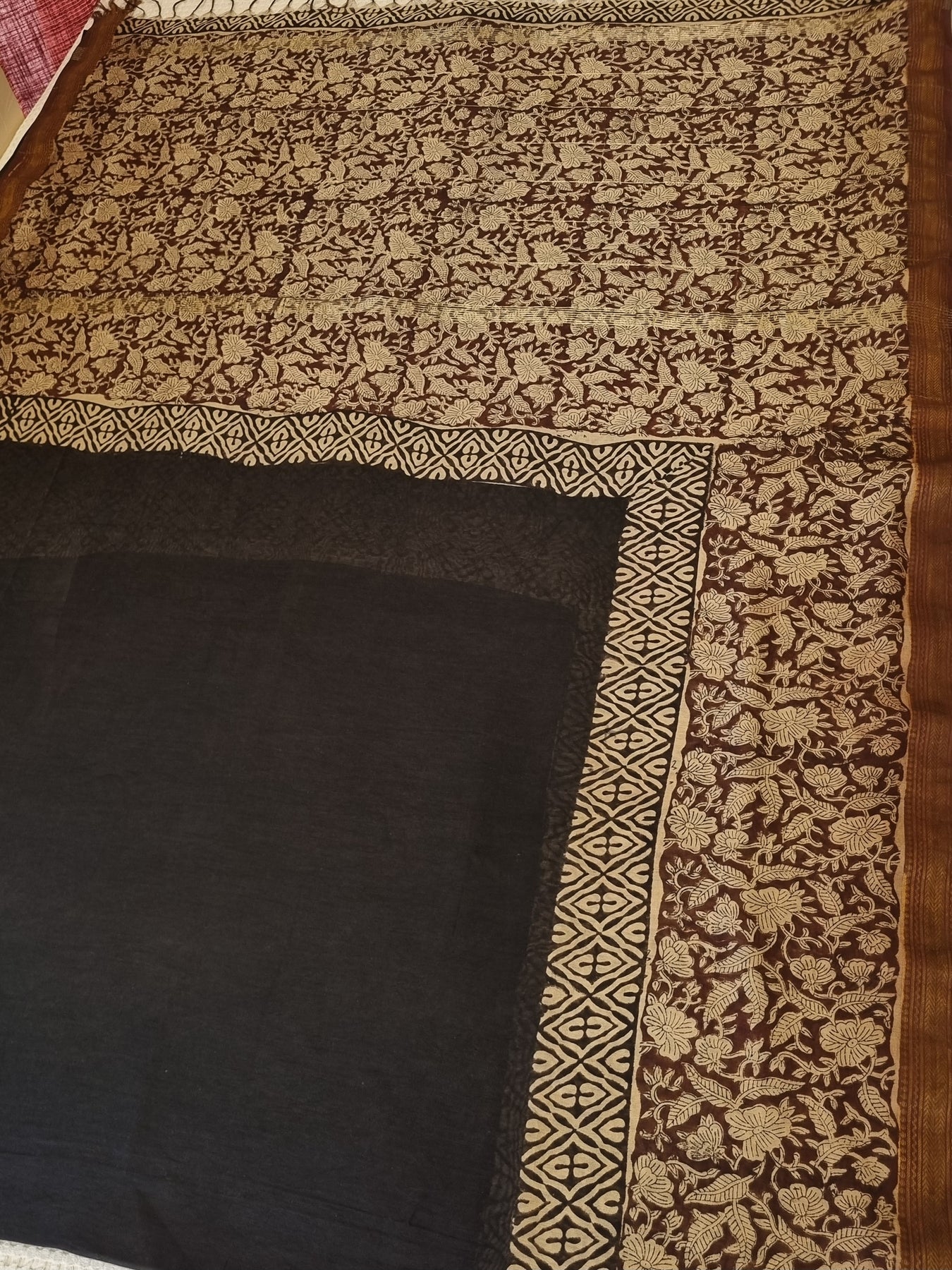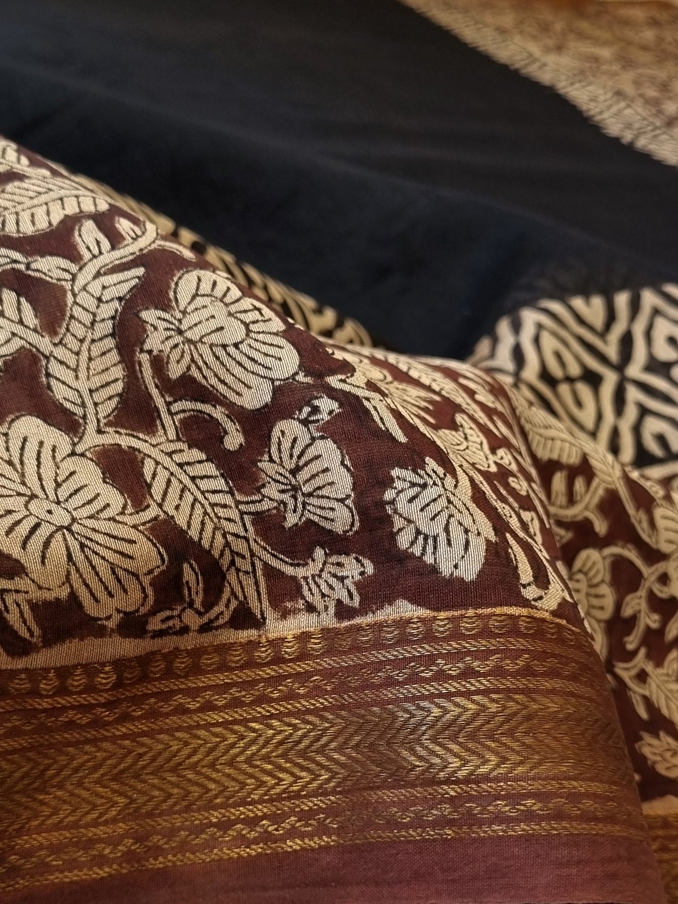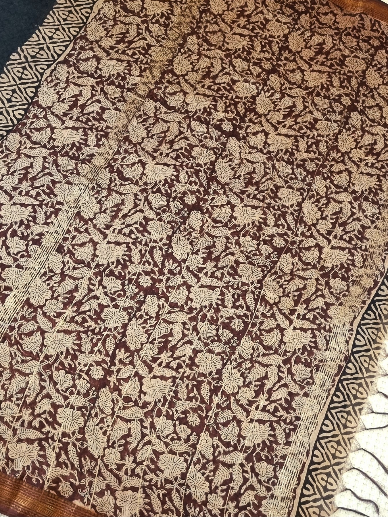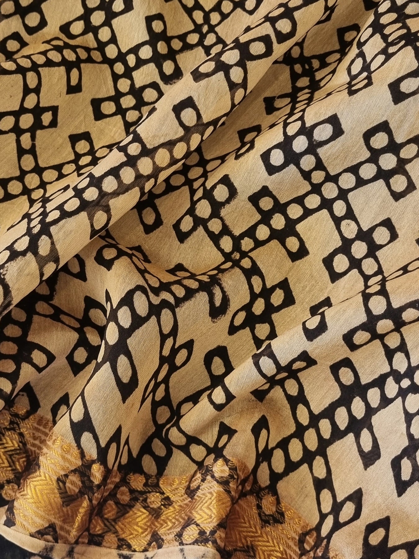 An elegant Maheshwari Silk Cotton Saree Handblock Prints