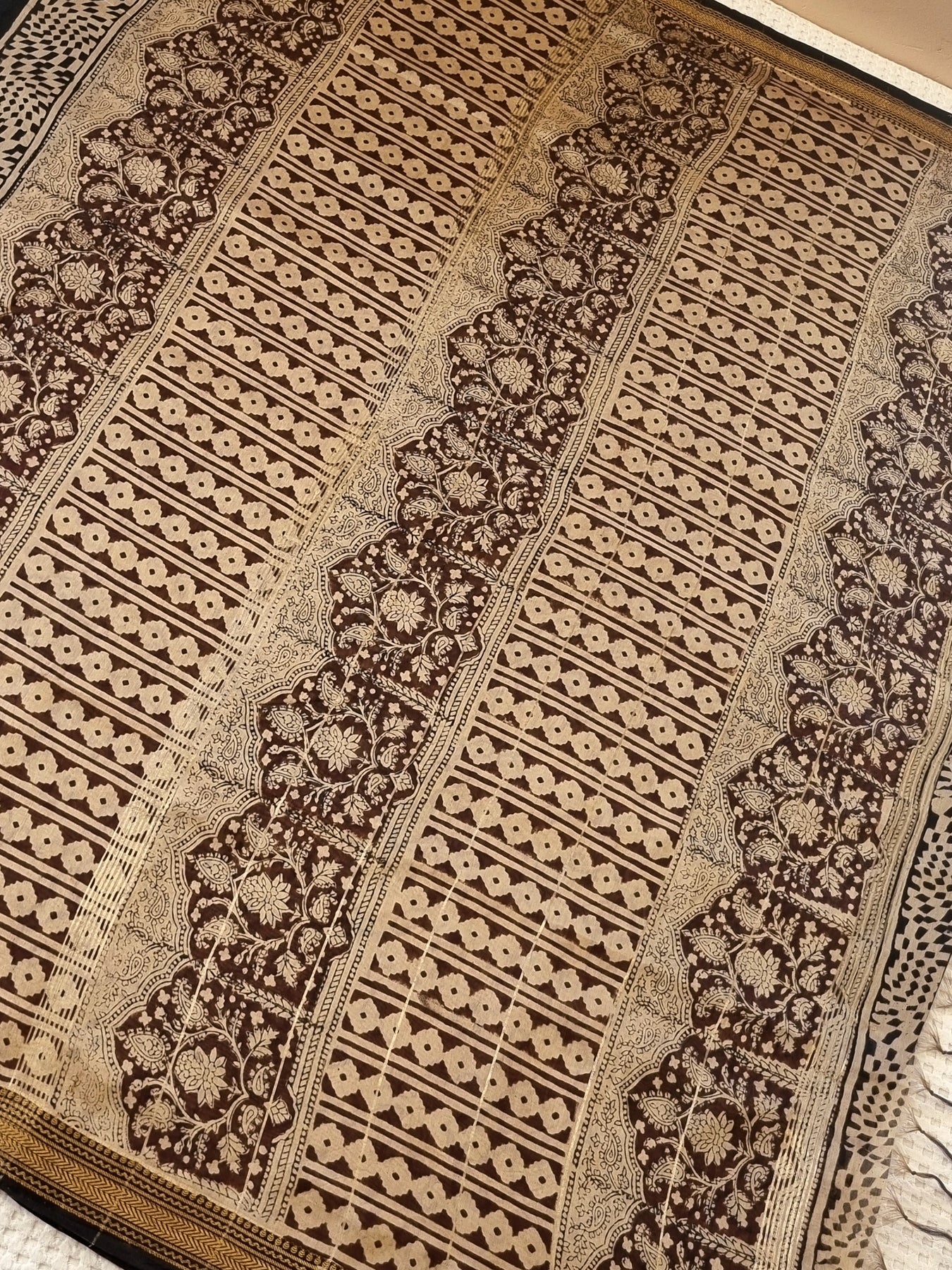 An elegant Maheshwari Silk Cotton Saree Handblock Prints