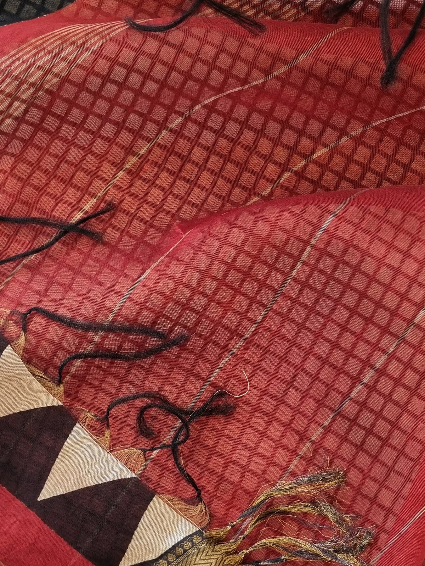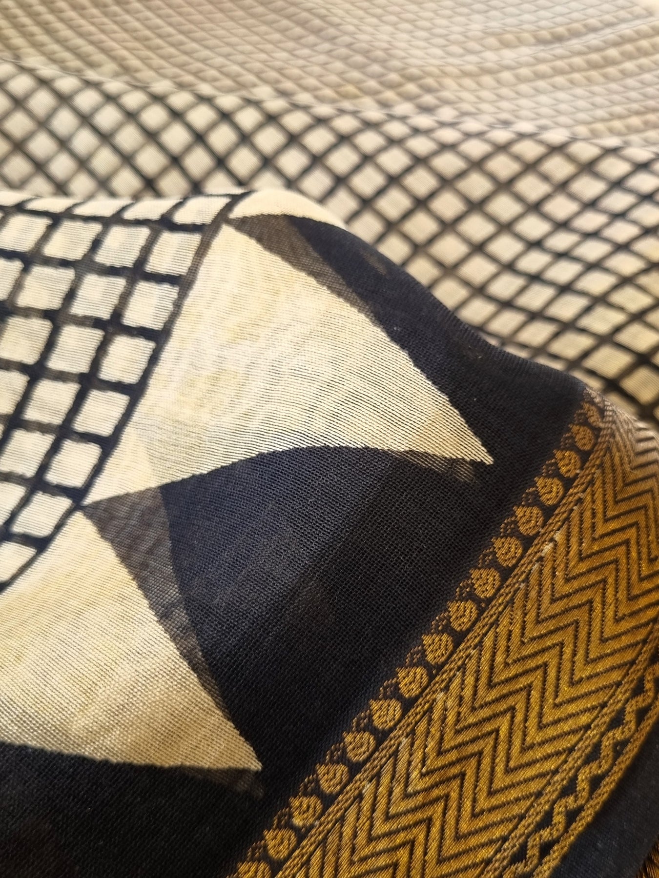 An elegant Maheshwari Silk Cotton Saree Handblock Prints