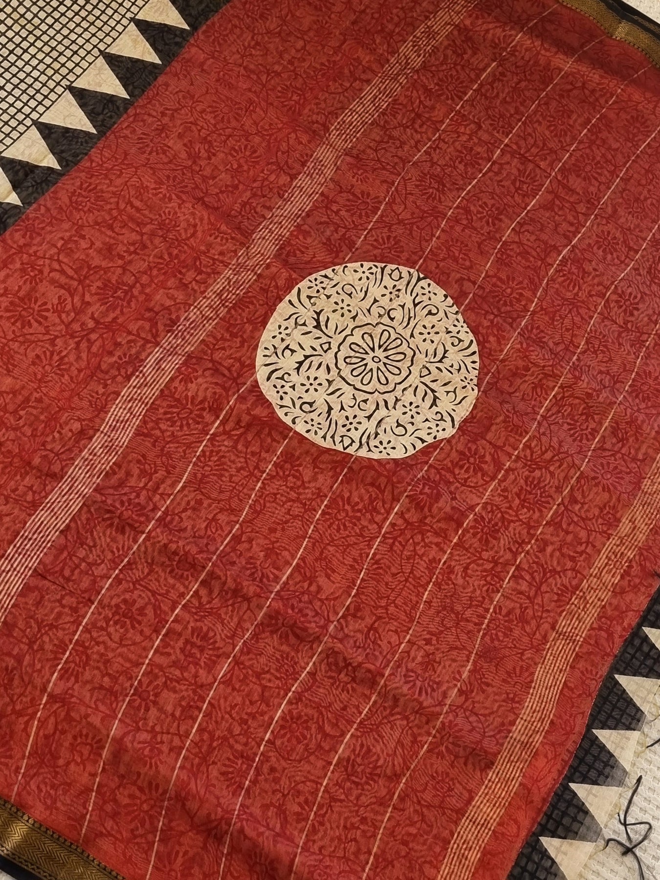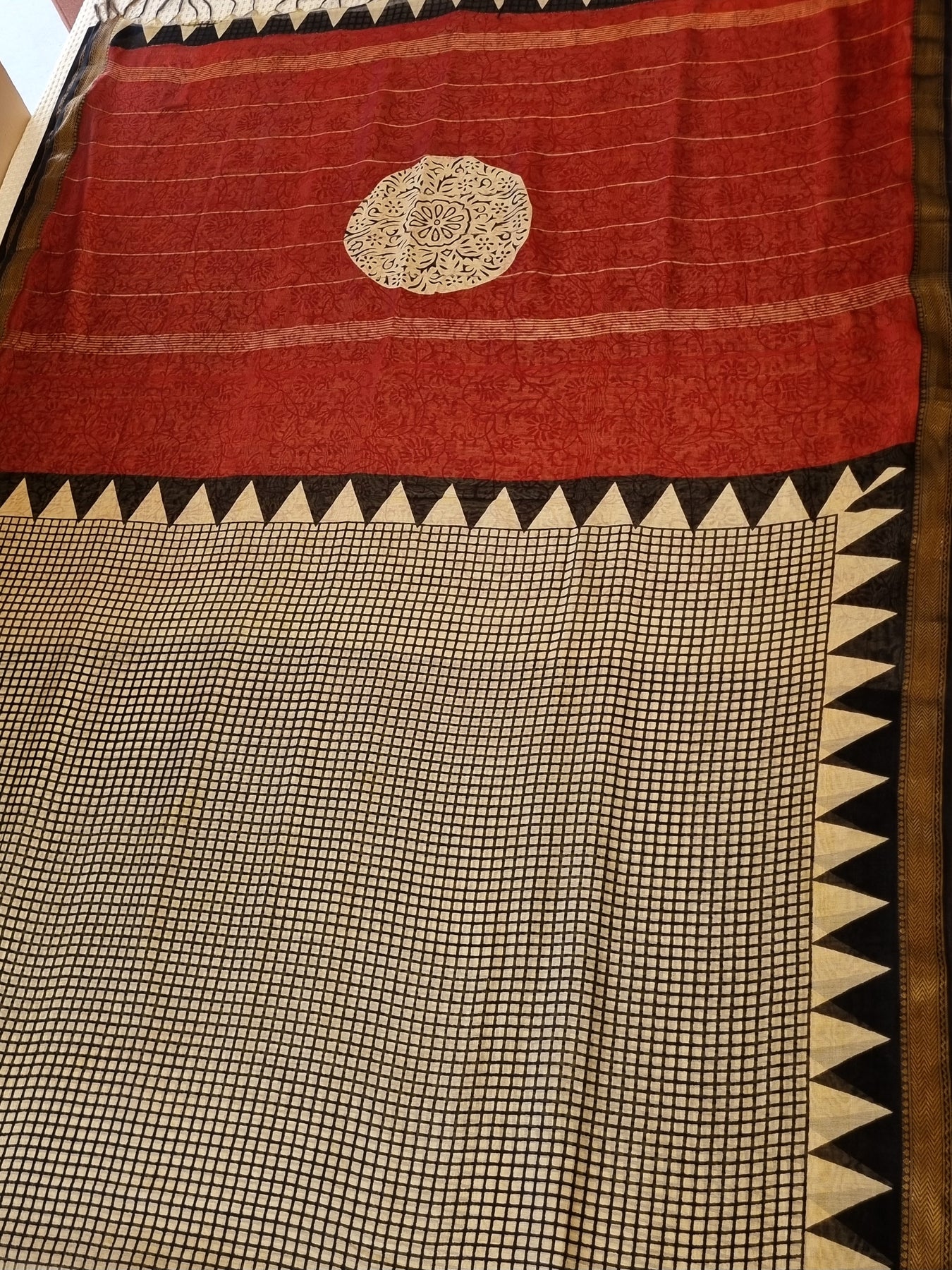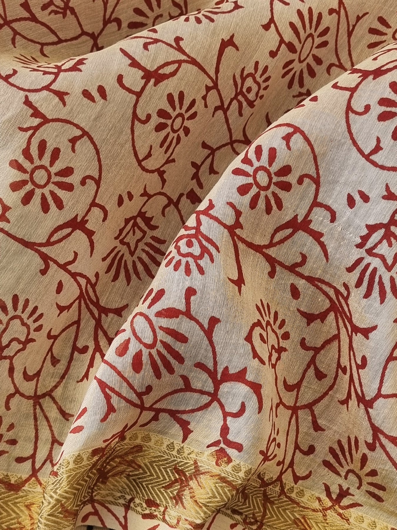 Maheshwari Silk Cotton Saree with Handblock Prints