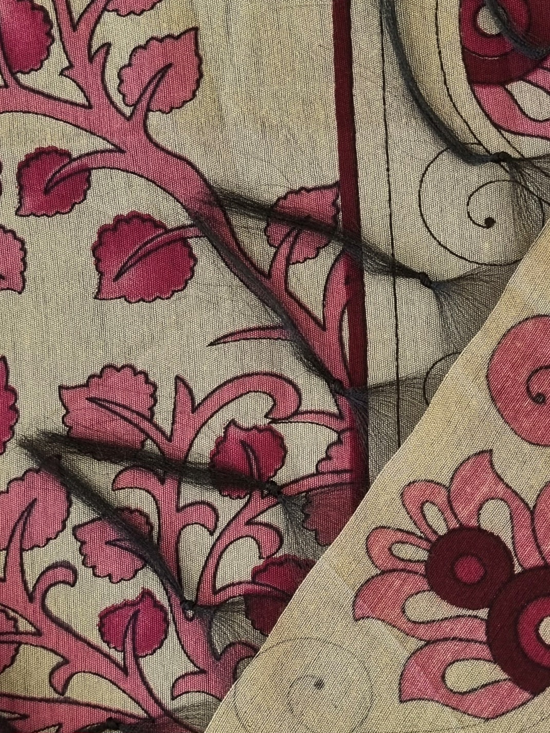 • Silk Cotton Saree, with Digital prints on the body and pallu, beautifully finished with tassels