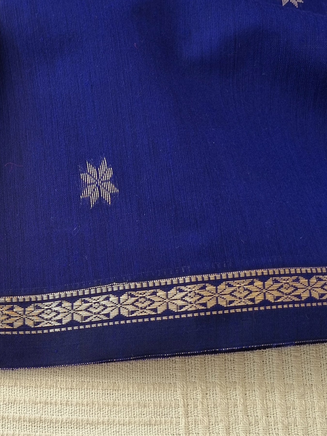 Blue Silk Cotton Saree with a Contrast Pallu