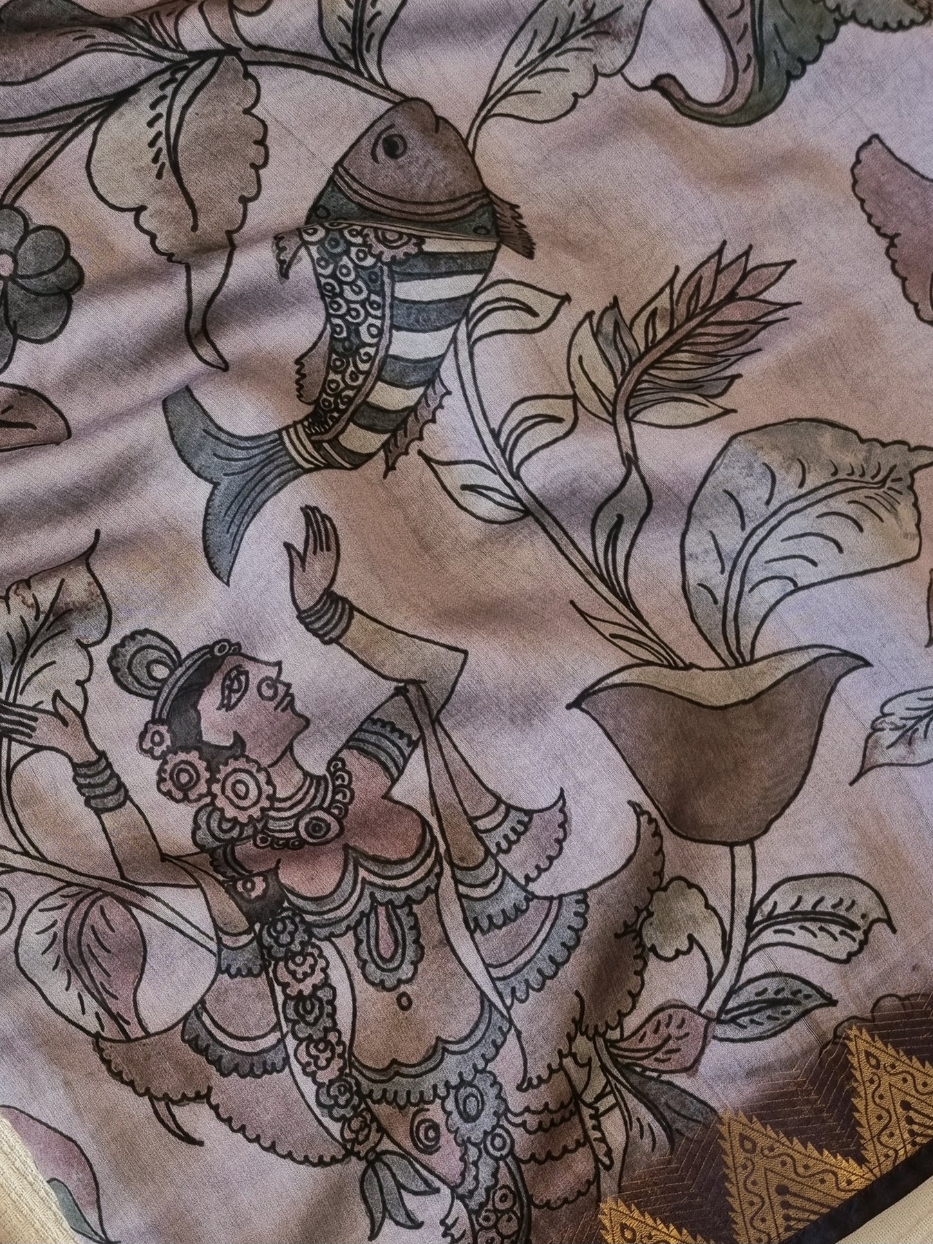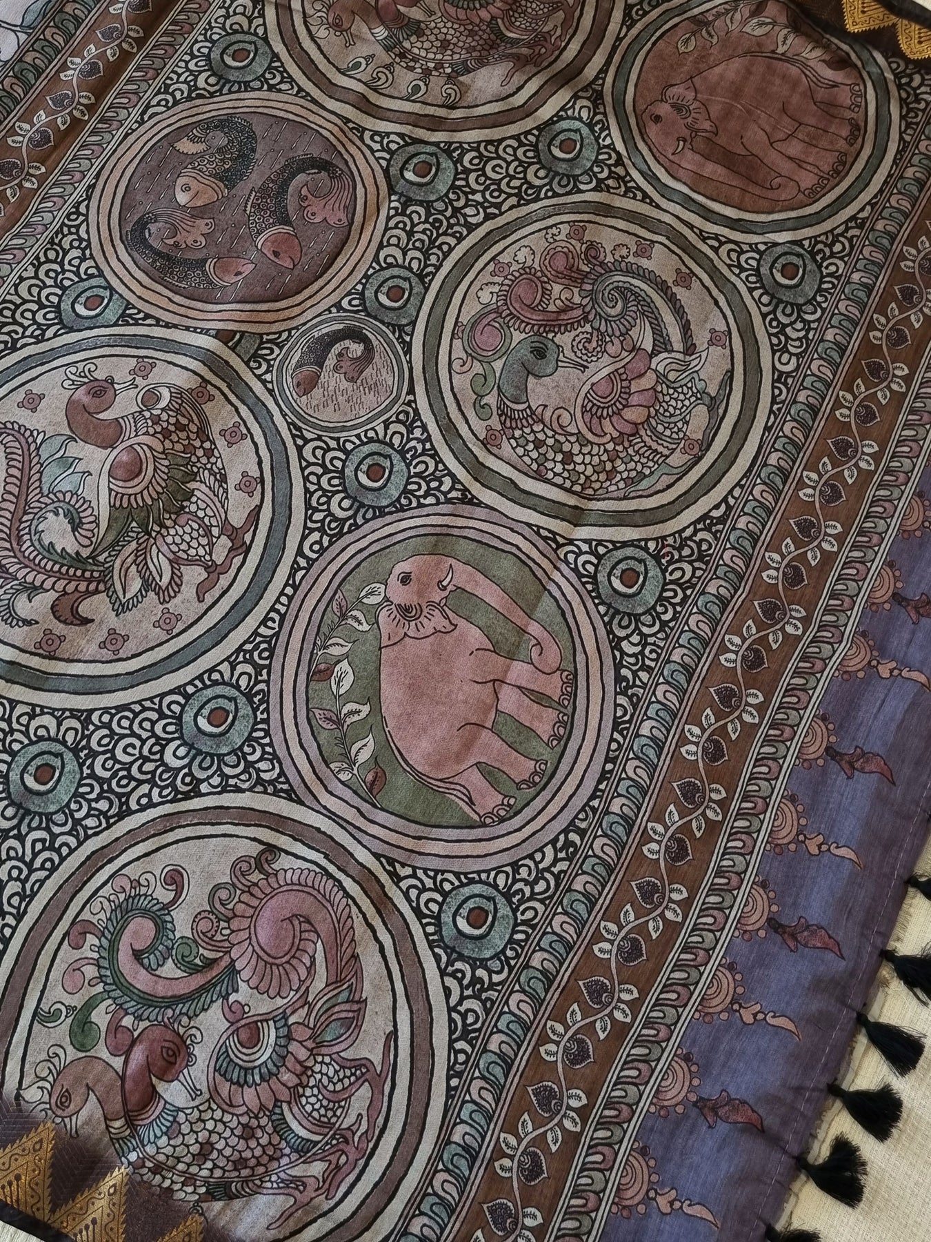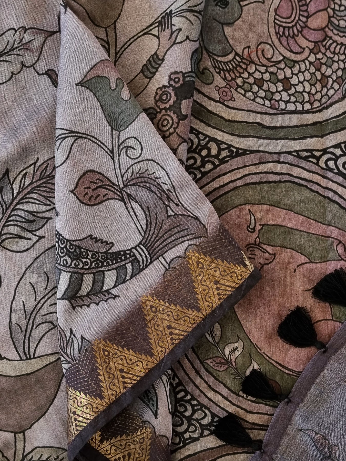 An elegant Silk Cotton Saree with Digital Kalamkari Prints