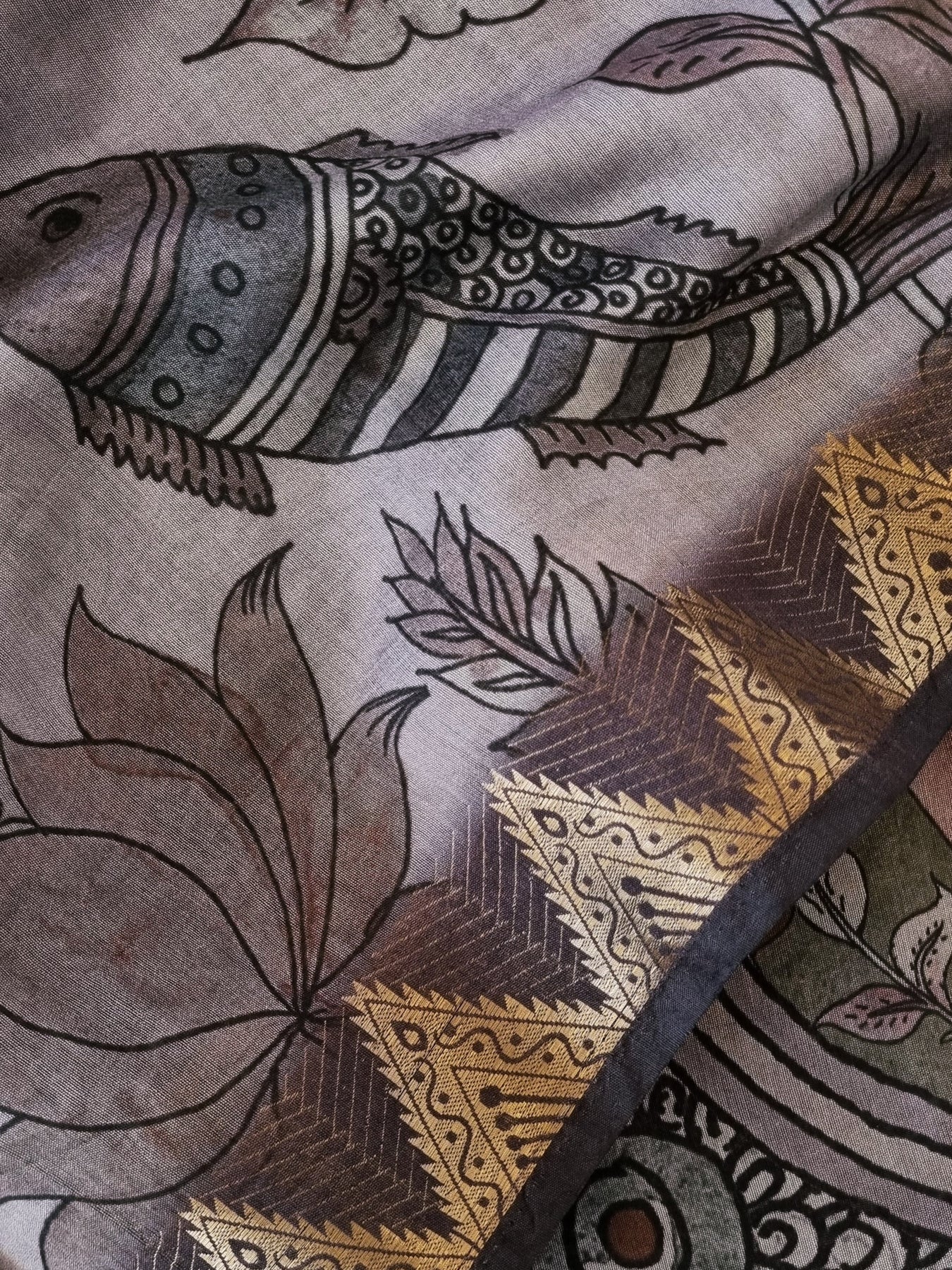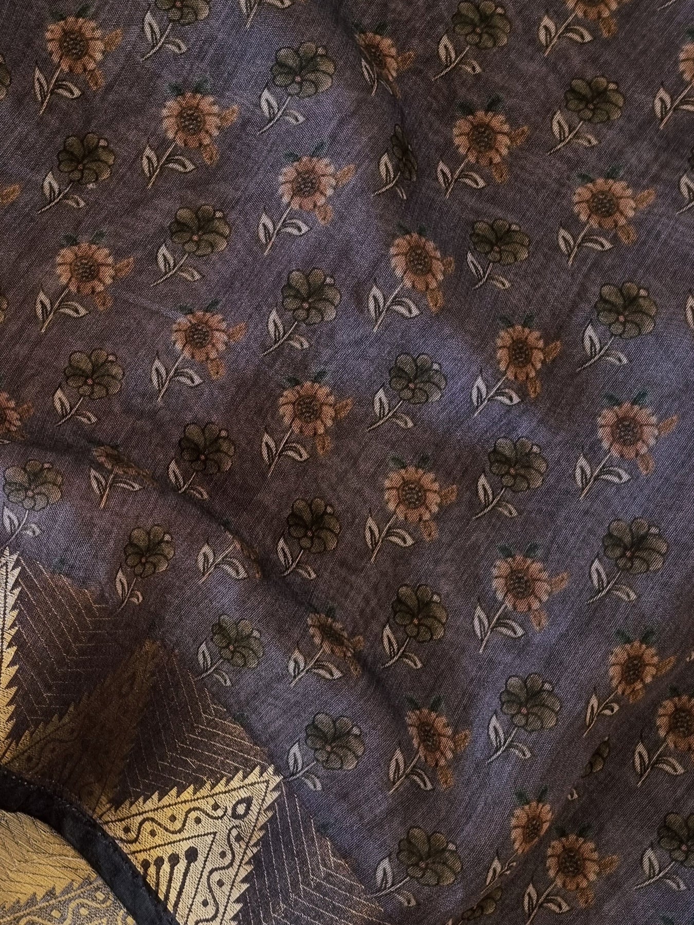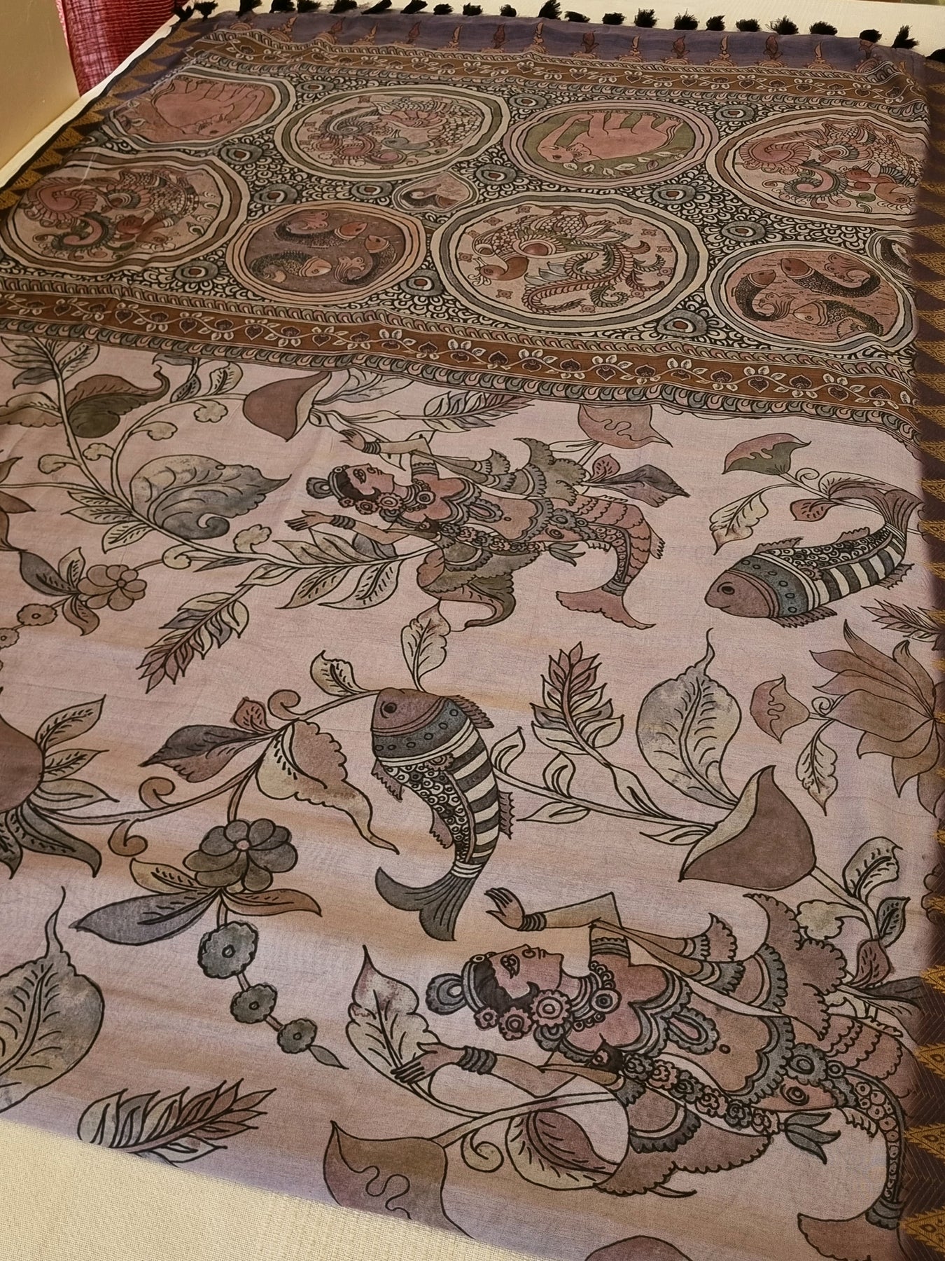 An elegant Silk Cotton Saree with Digital Kalamkari Prints