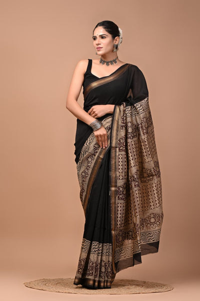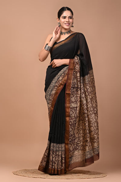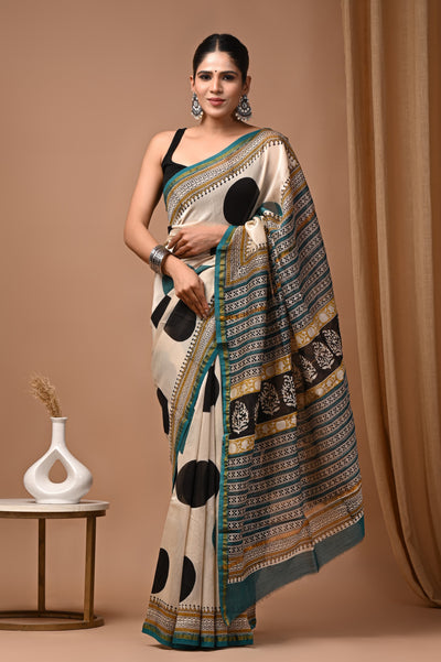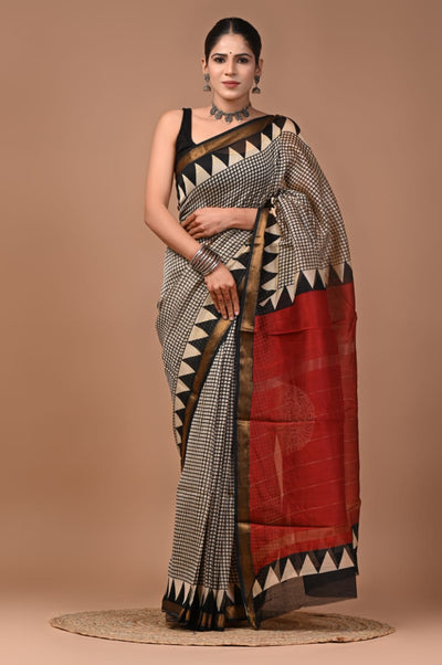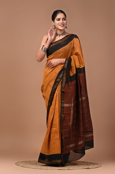 Maheshwari Silk Cotton Saree with HandBlock Prints