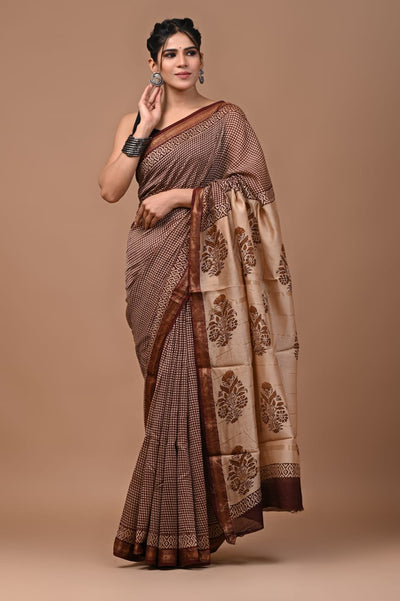 Chanderi Silk Cotton Saree with HandBlock Prints
