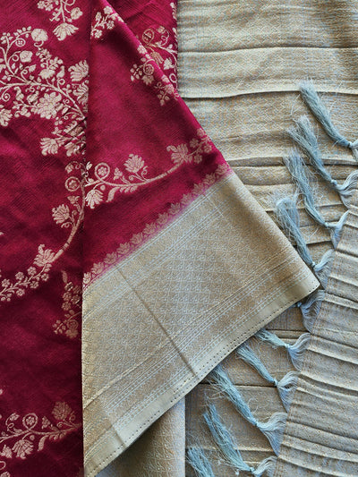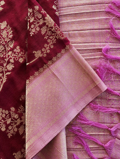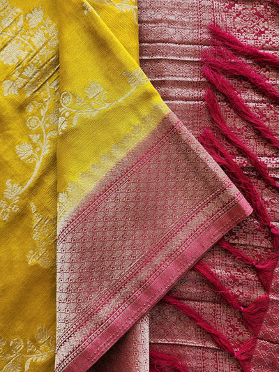 Pink Tissue Crepe Silk Saree with Woven Borders