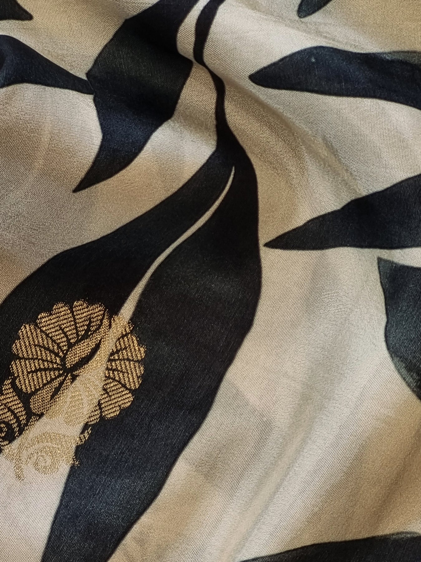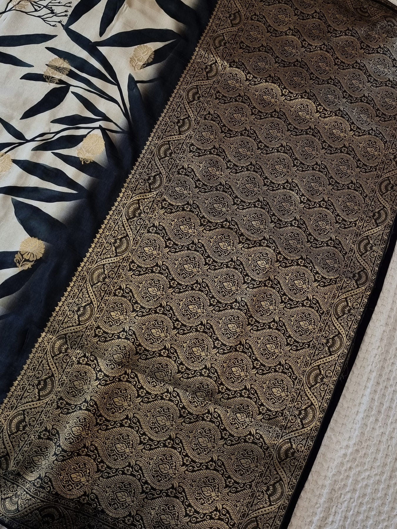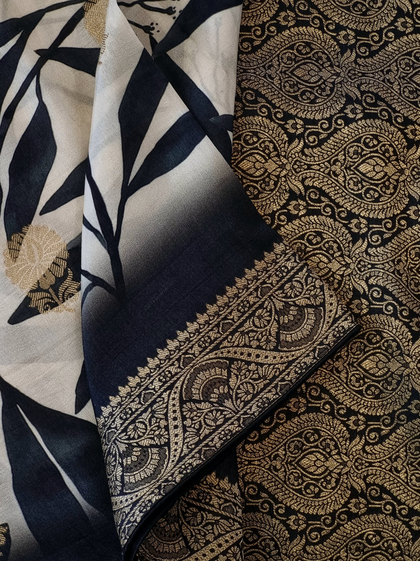 Black and White Crepe Silk Saree with Banarasi Borders