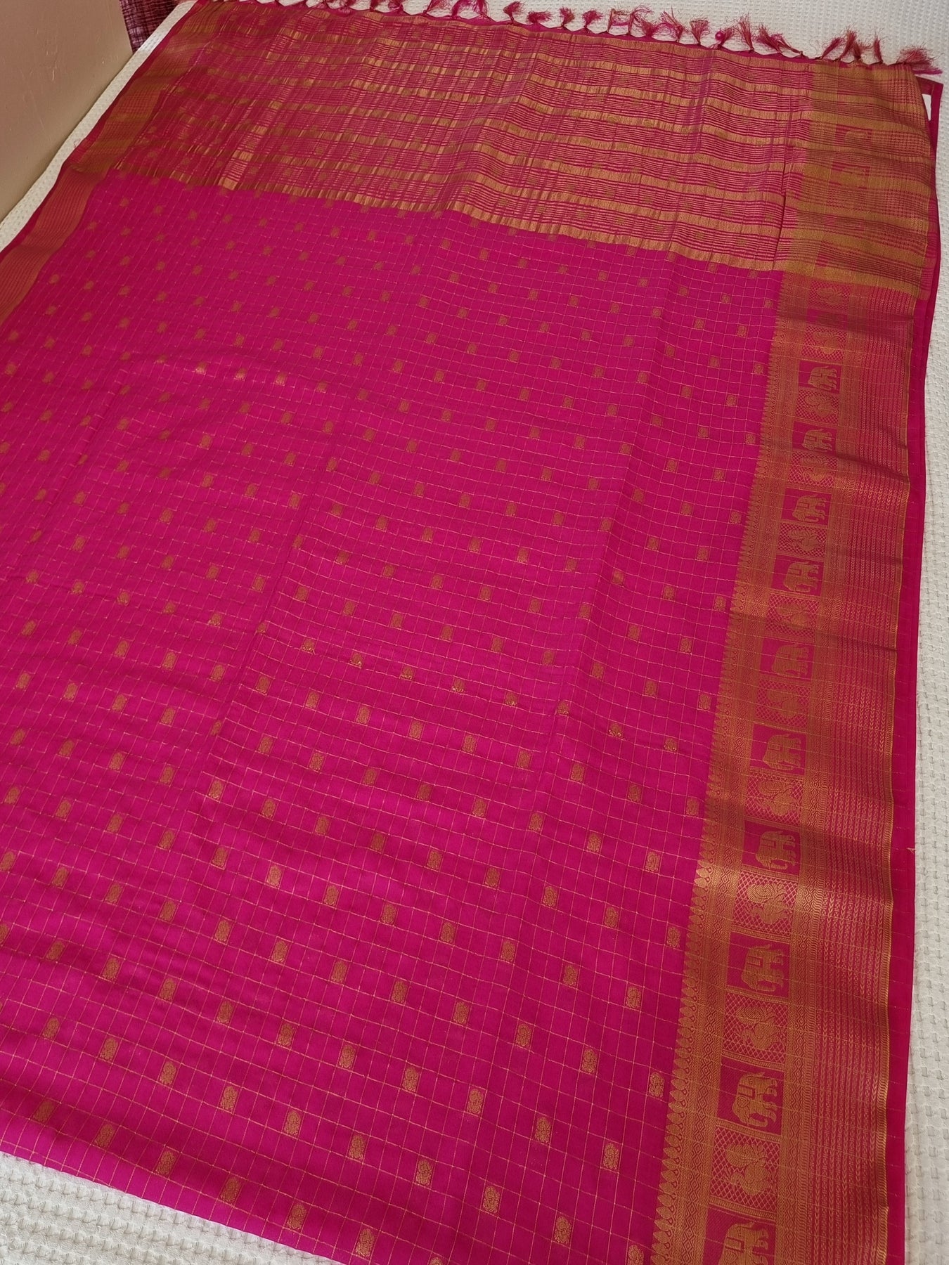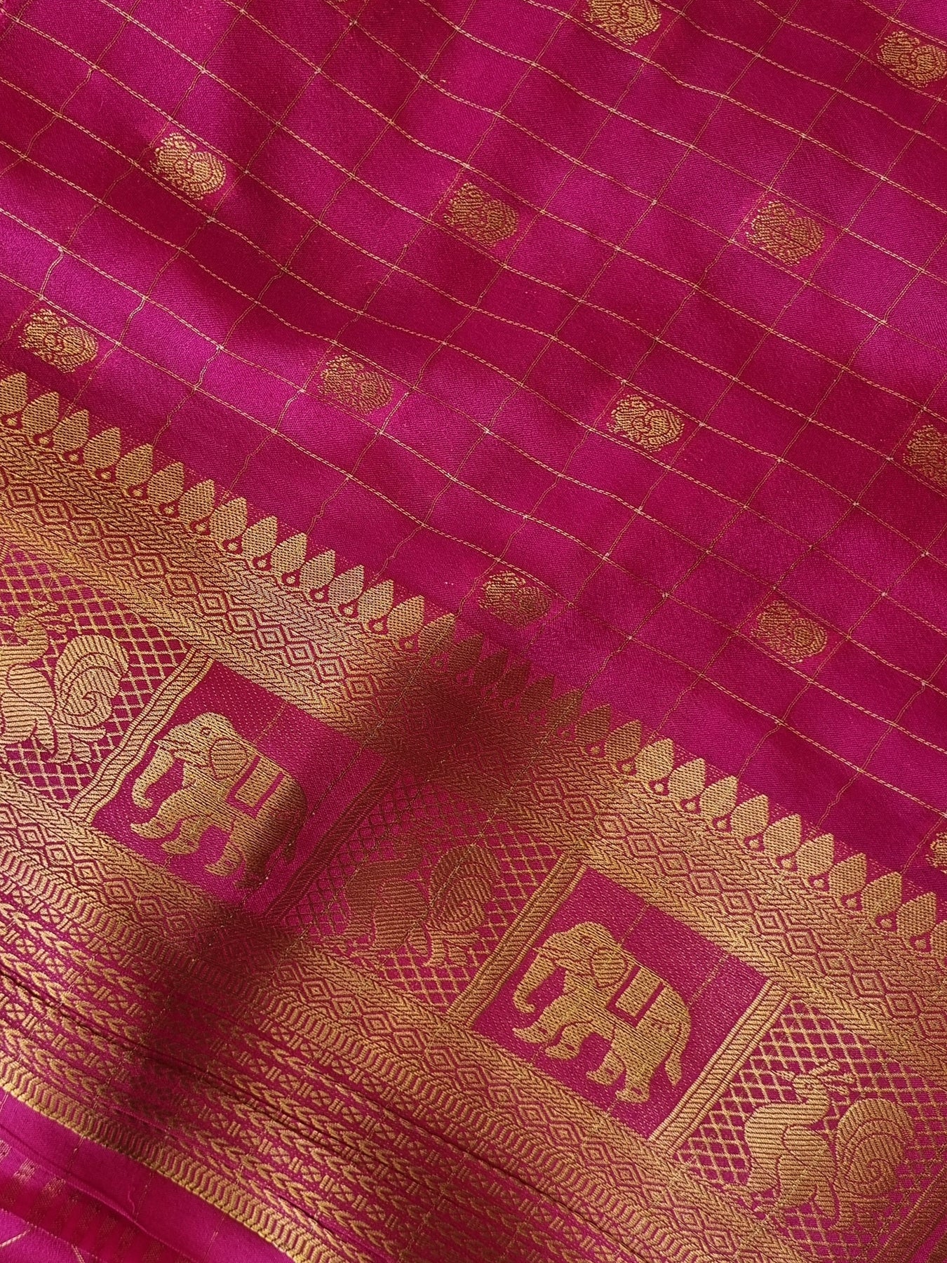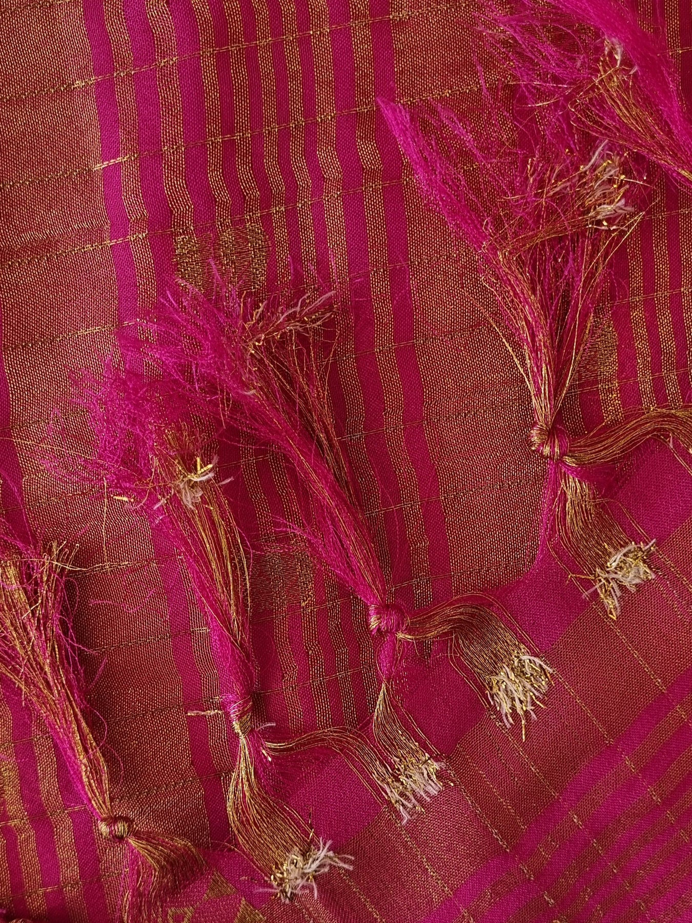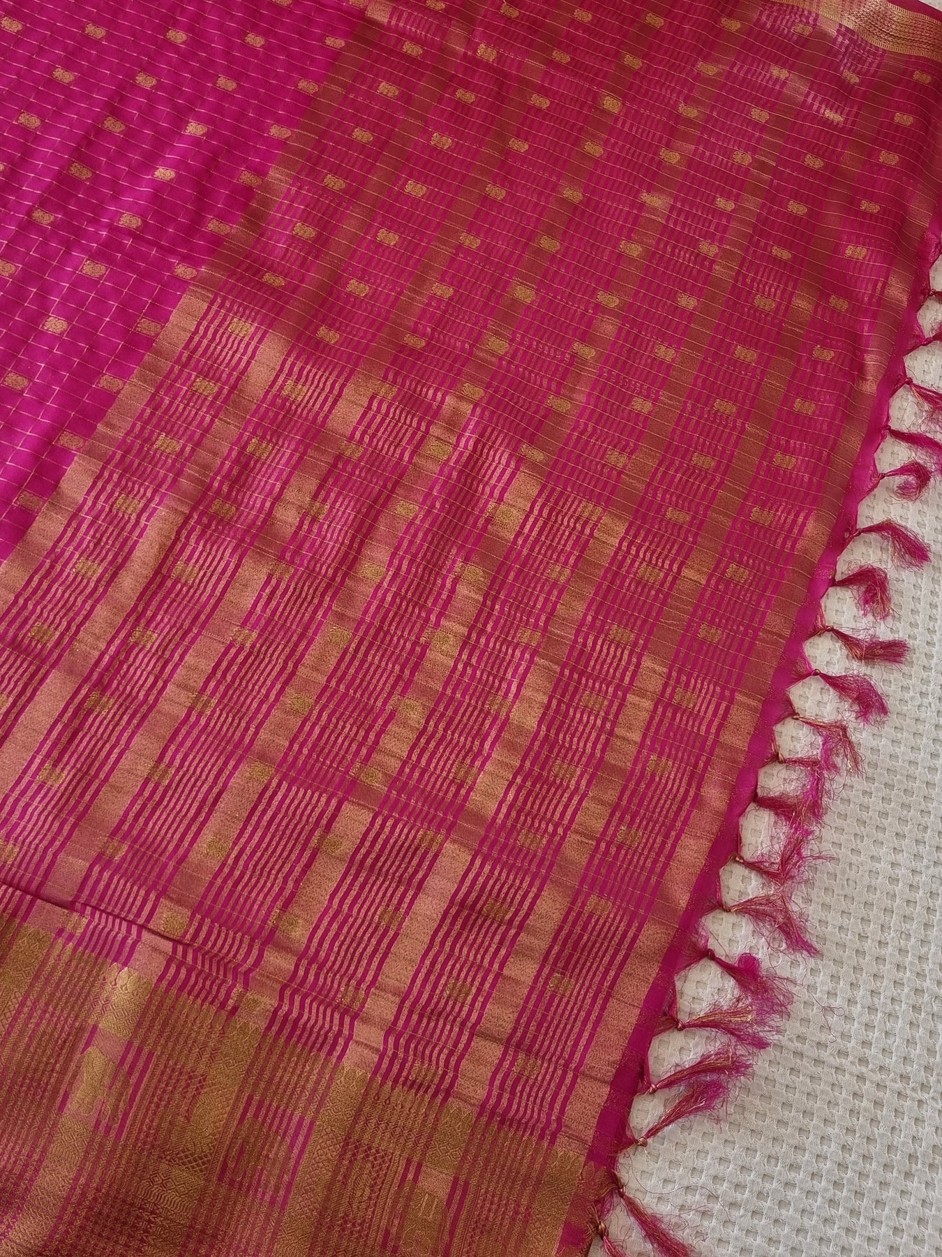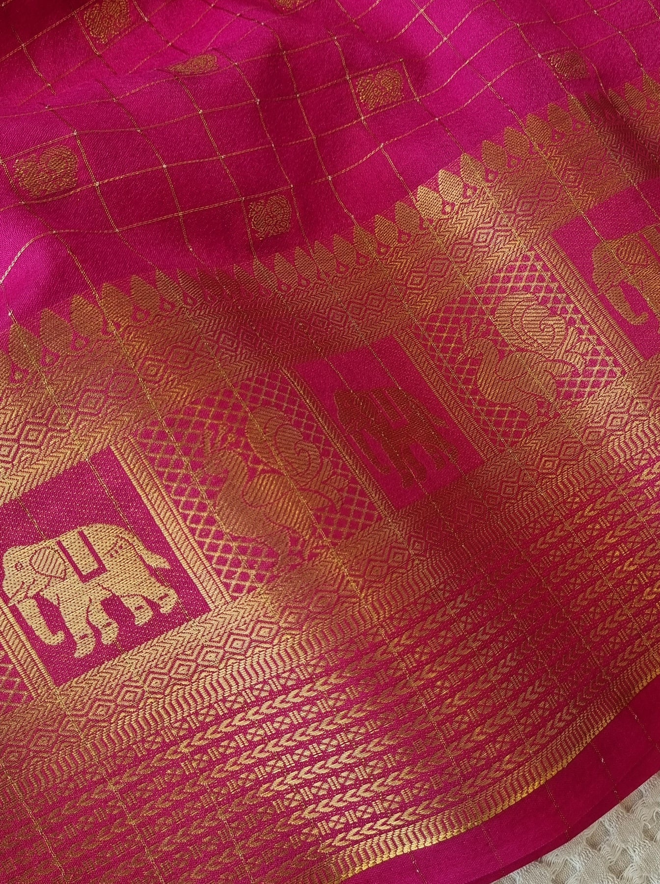 An elegant Pink Crepe Silk Saree with Gold Borders and Body of the saree