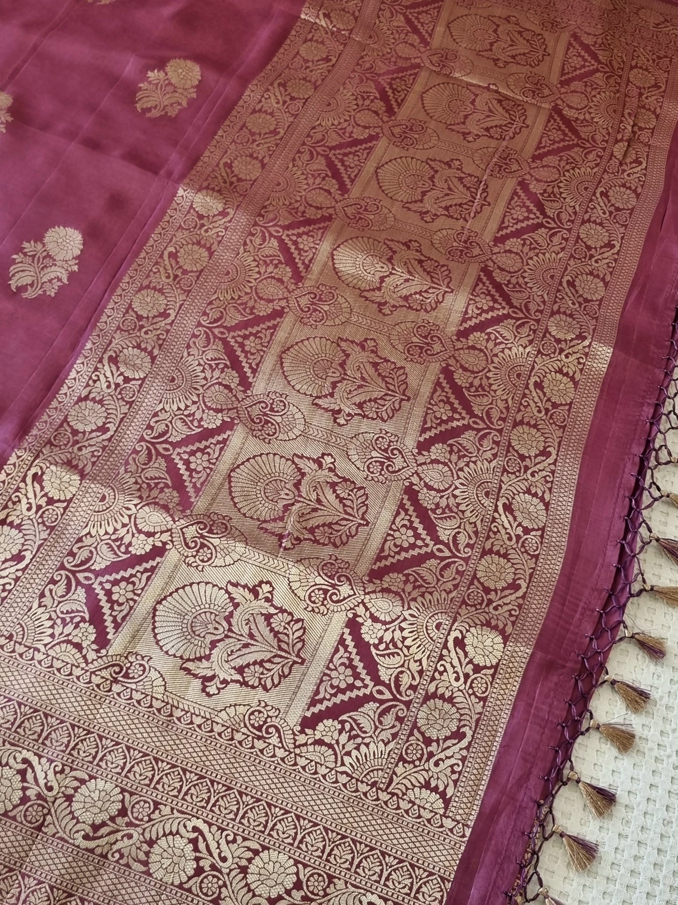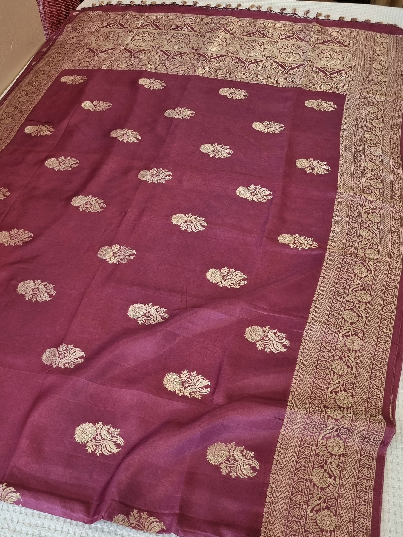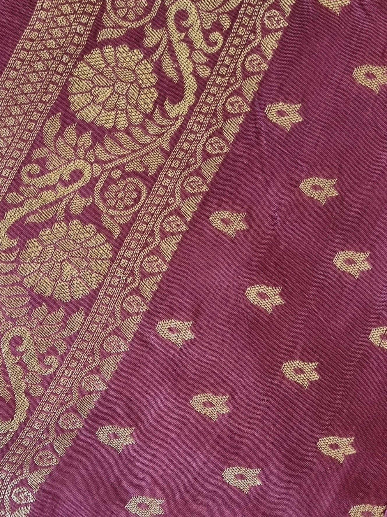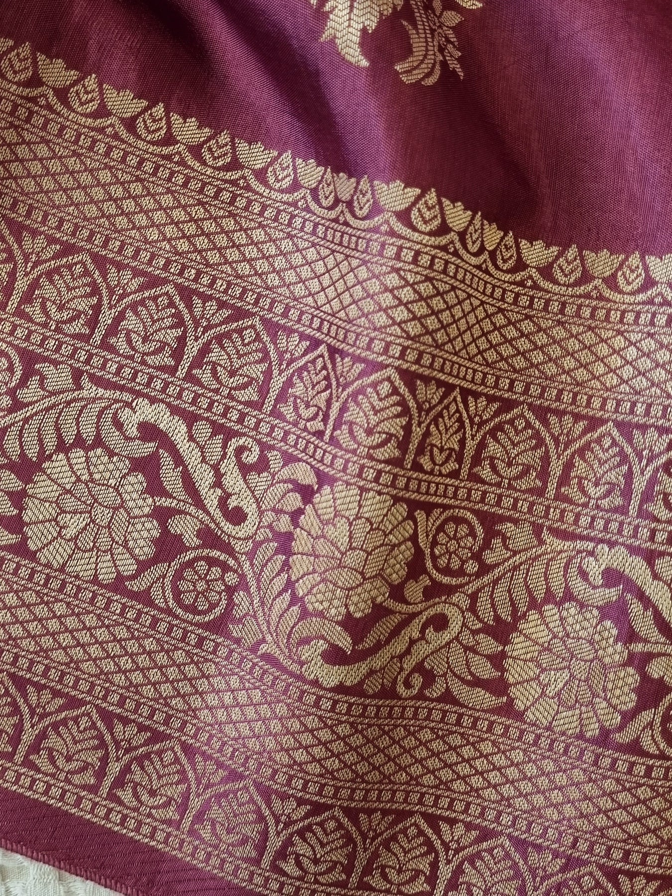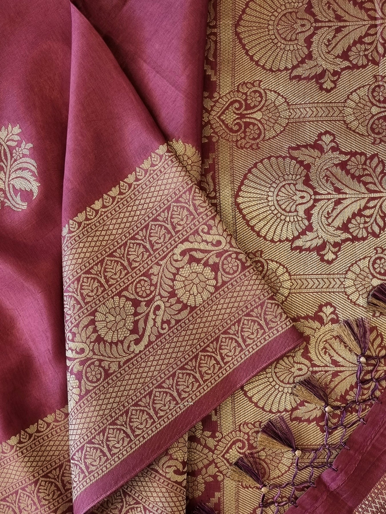 The beautiful Gold zari patterns on the body pallu elevates the style quotient