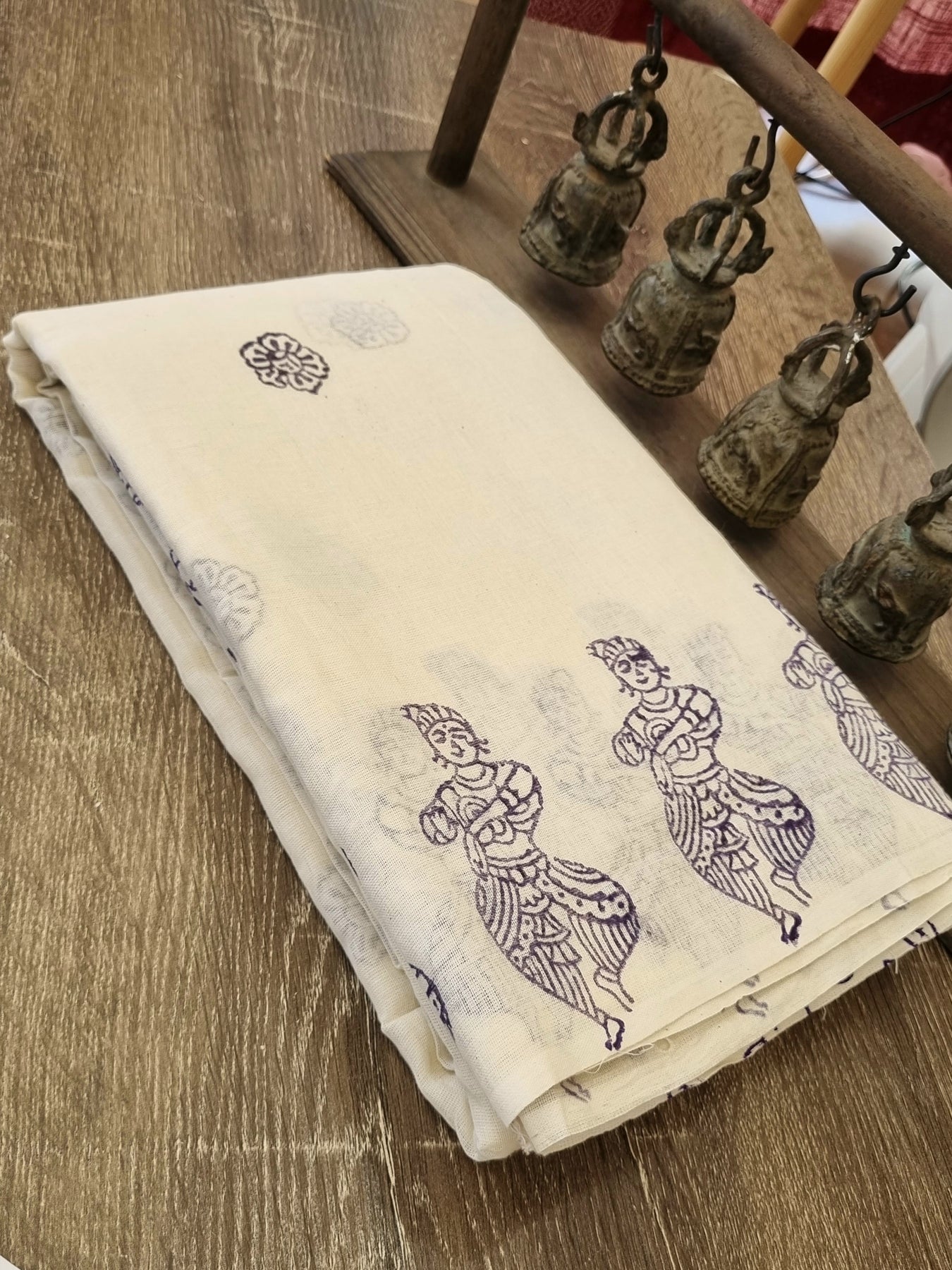 Colourful and elegant Borderless cotton dance saree with Block prints