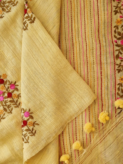 Yellow Handloom Matka Silk Saree with Floral Embroidery