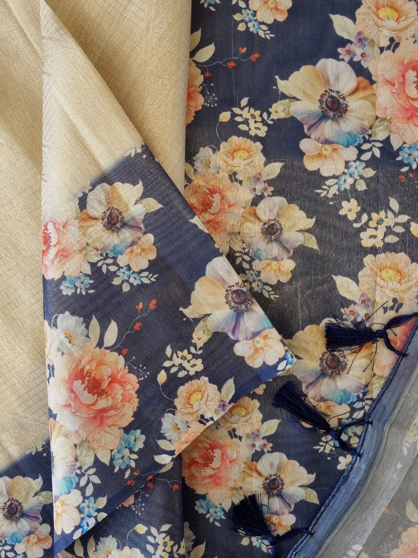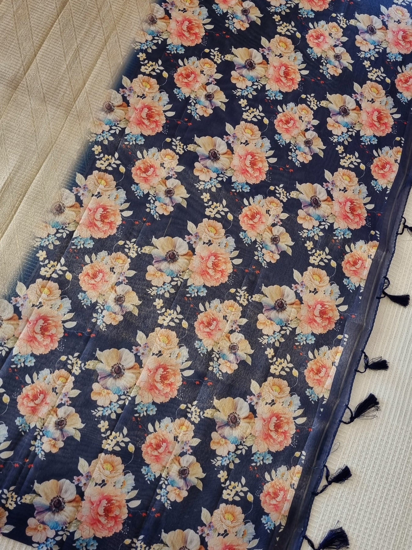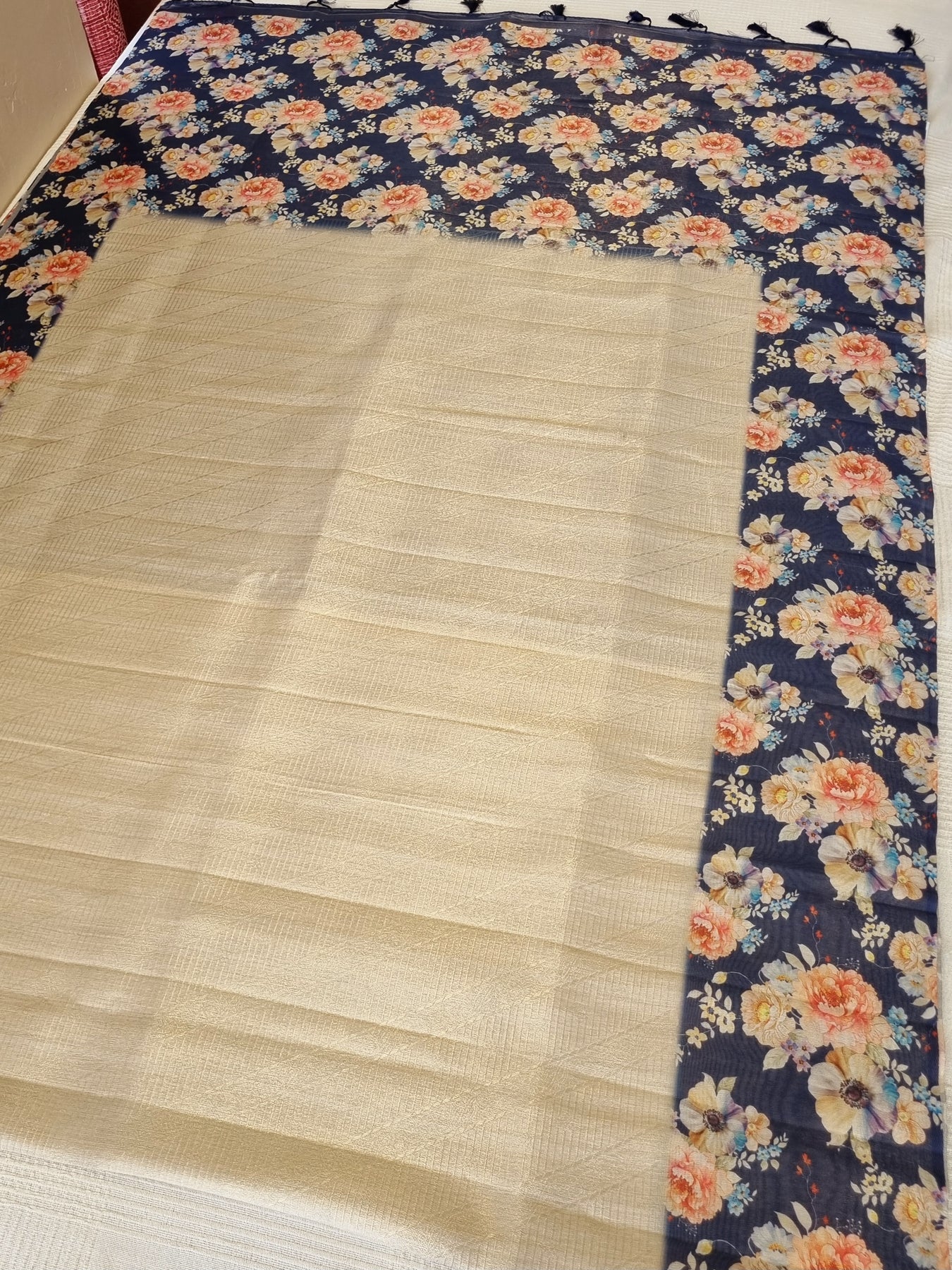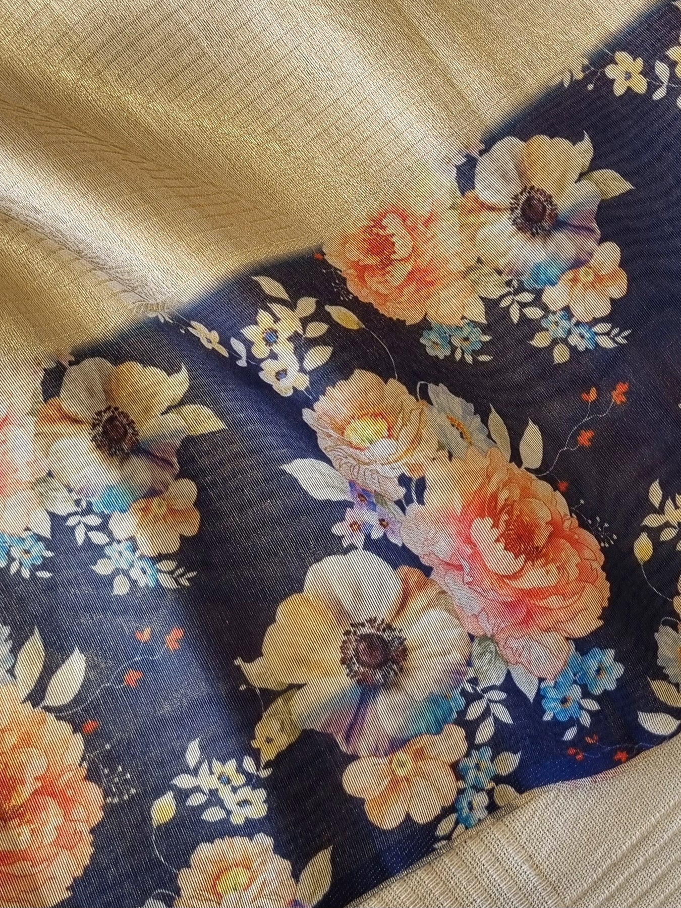 This elegant Tissue Silk Saree with Digital Floral Prints has a modern appeal
