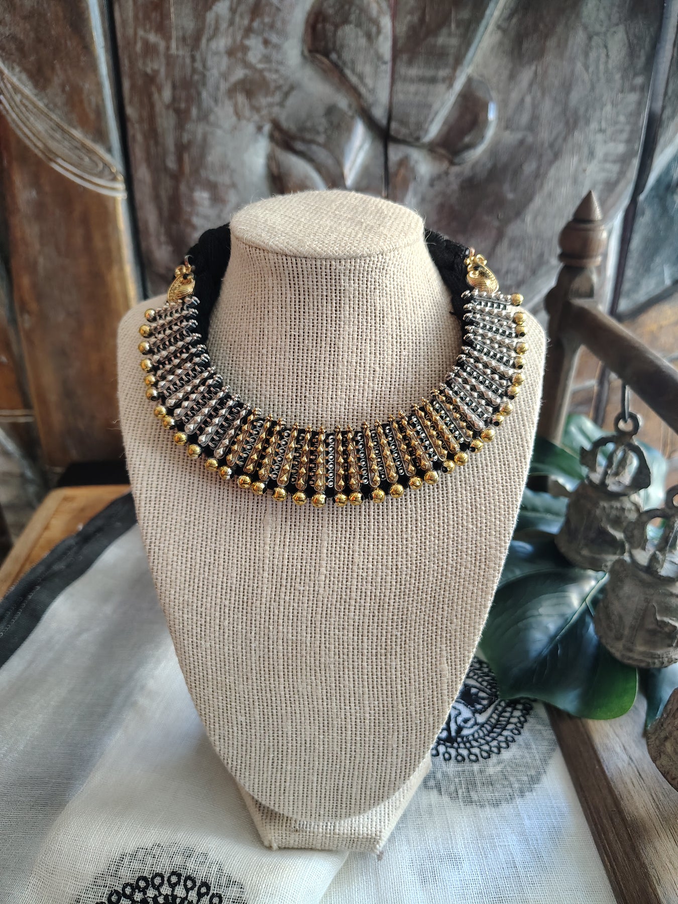 Dual Tone German Silver Necklace with Studs