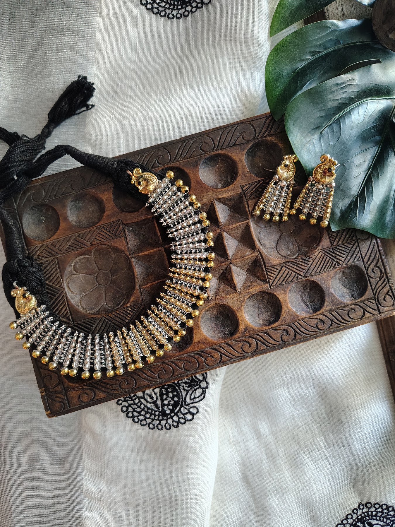 Dual Tone German Silver Necklace, paired with matching Studs