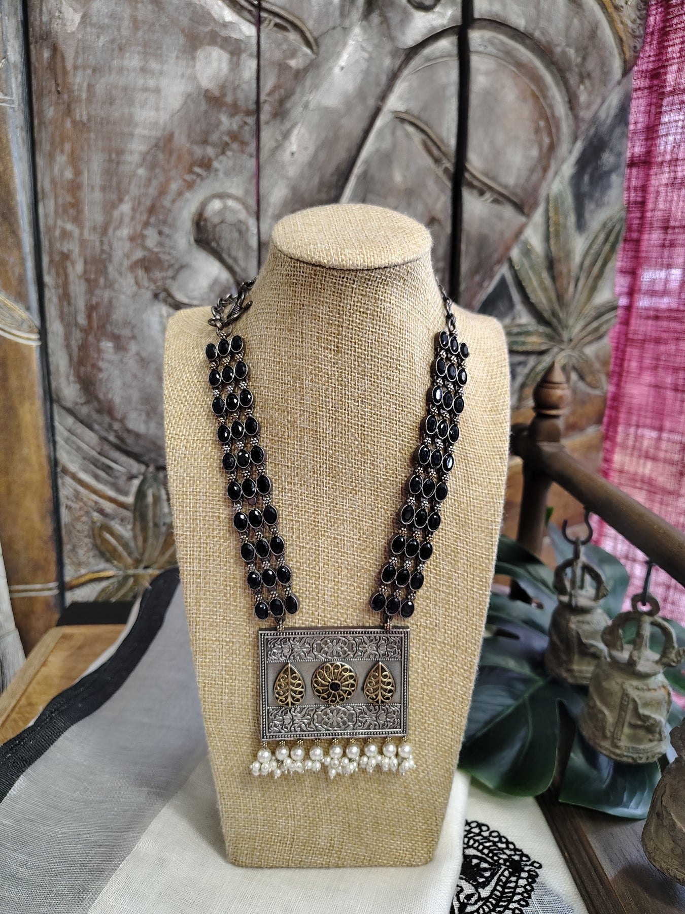 [{"id":48071176716520,"title":"Default Title","option1":"Default Title","option2":null,"option3":null,"sku":null,"requires_shipping":true,"taxable":true,"featured_image":null,"available":true,"name":"Dual Tone German Silver Statement Necklace Set","public_title":null,"options":["Default Title"],"price":10400,"weight":300,"compare_at_price":11900,"inventory_quantity":1,"inventory_management":"shopify","inventory_policy":"deny","barcode":"76716520","requires_selling_plan":false,"selling_plan_allocations":[],"quantity_rule":{"min":1,"max":null,"increment":1}}]