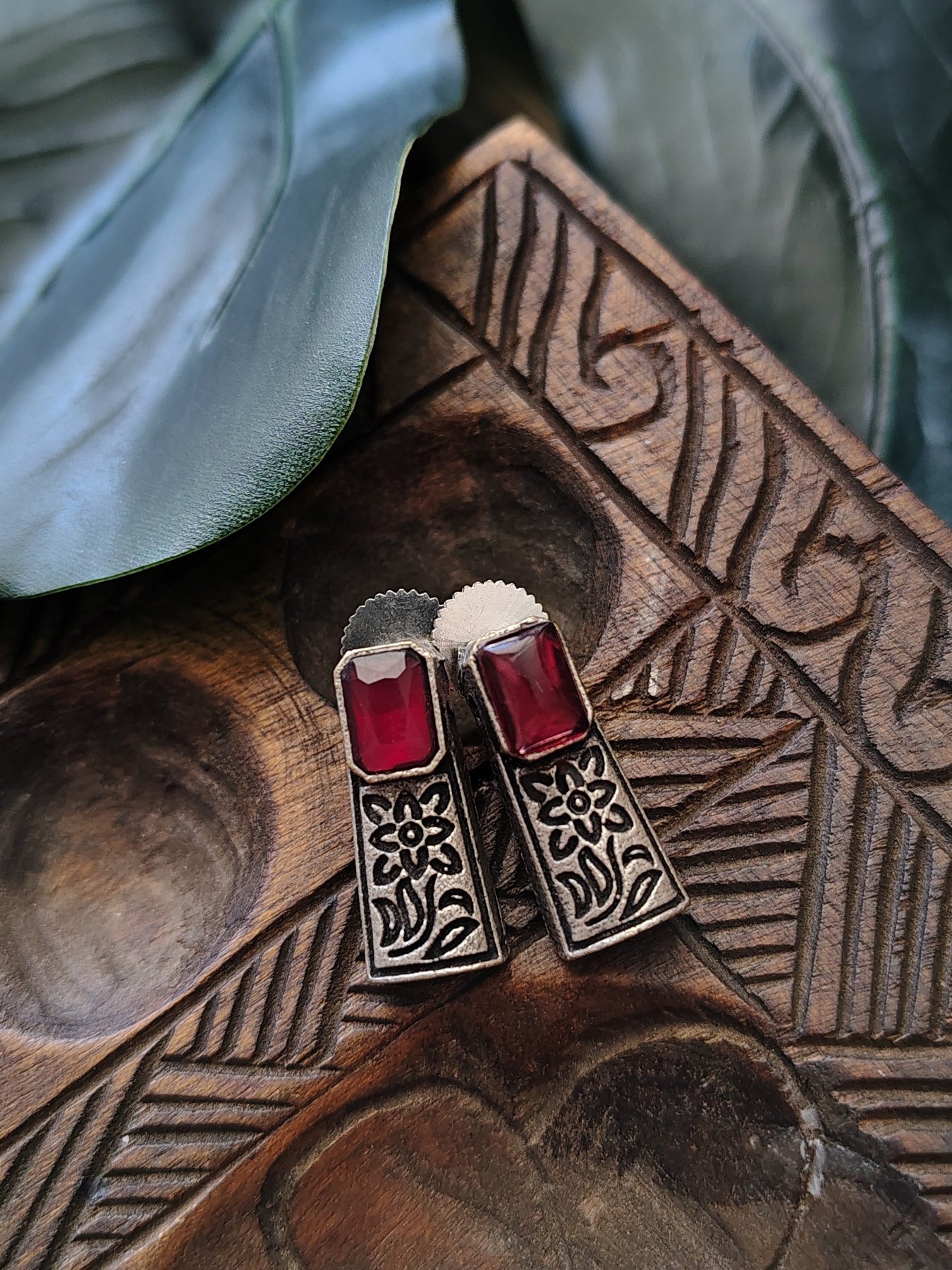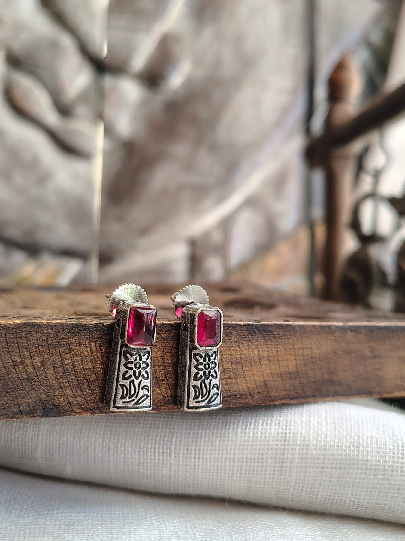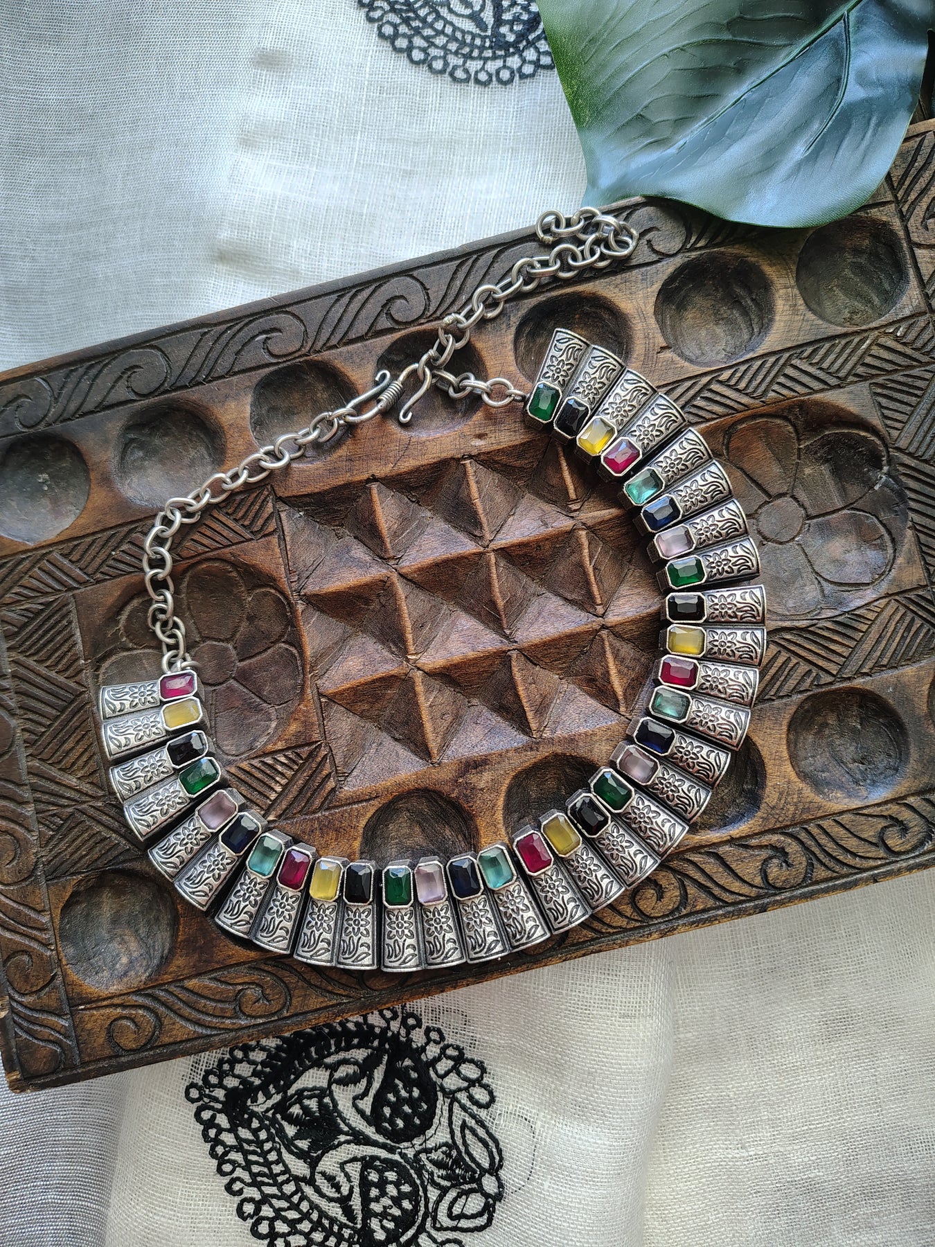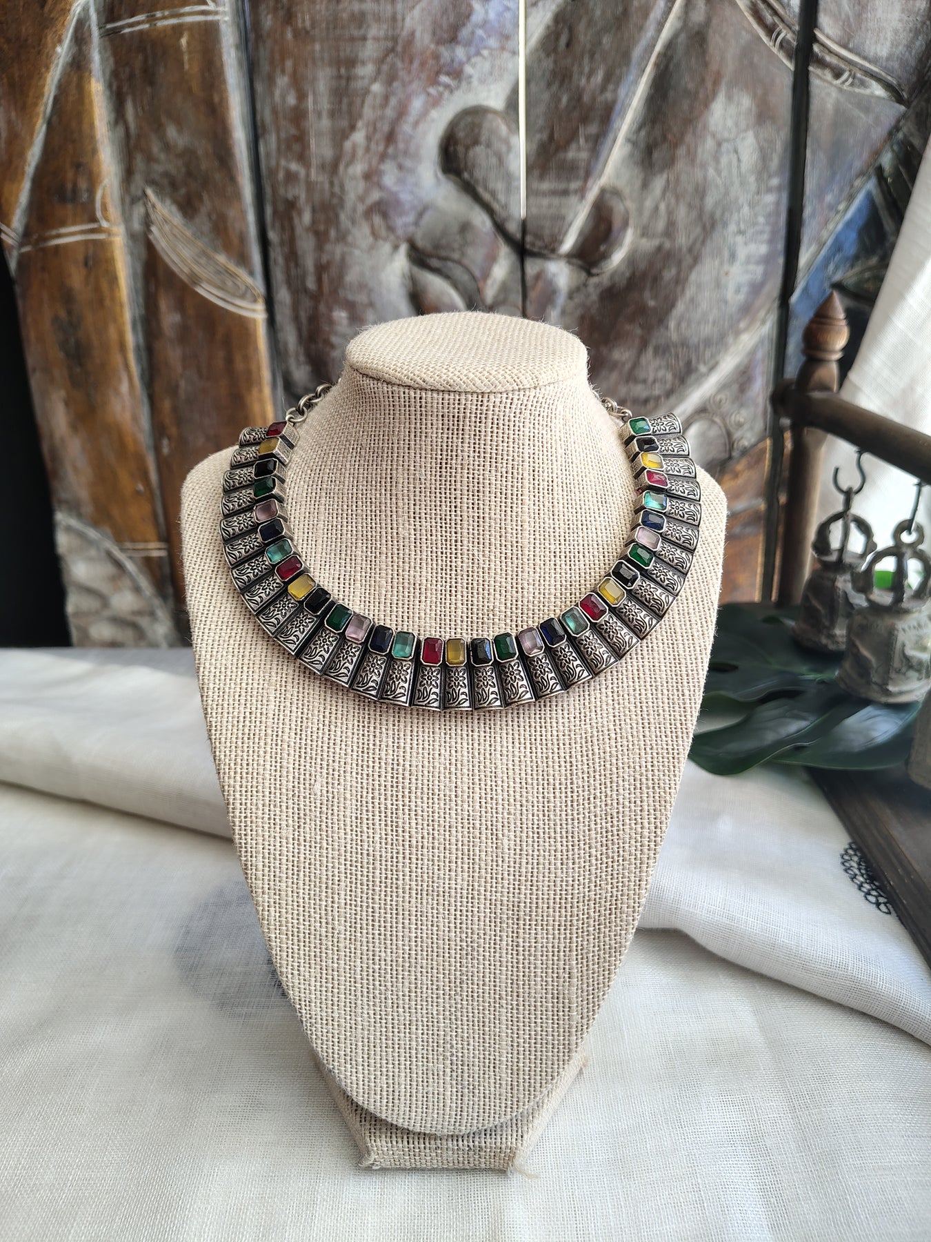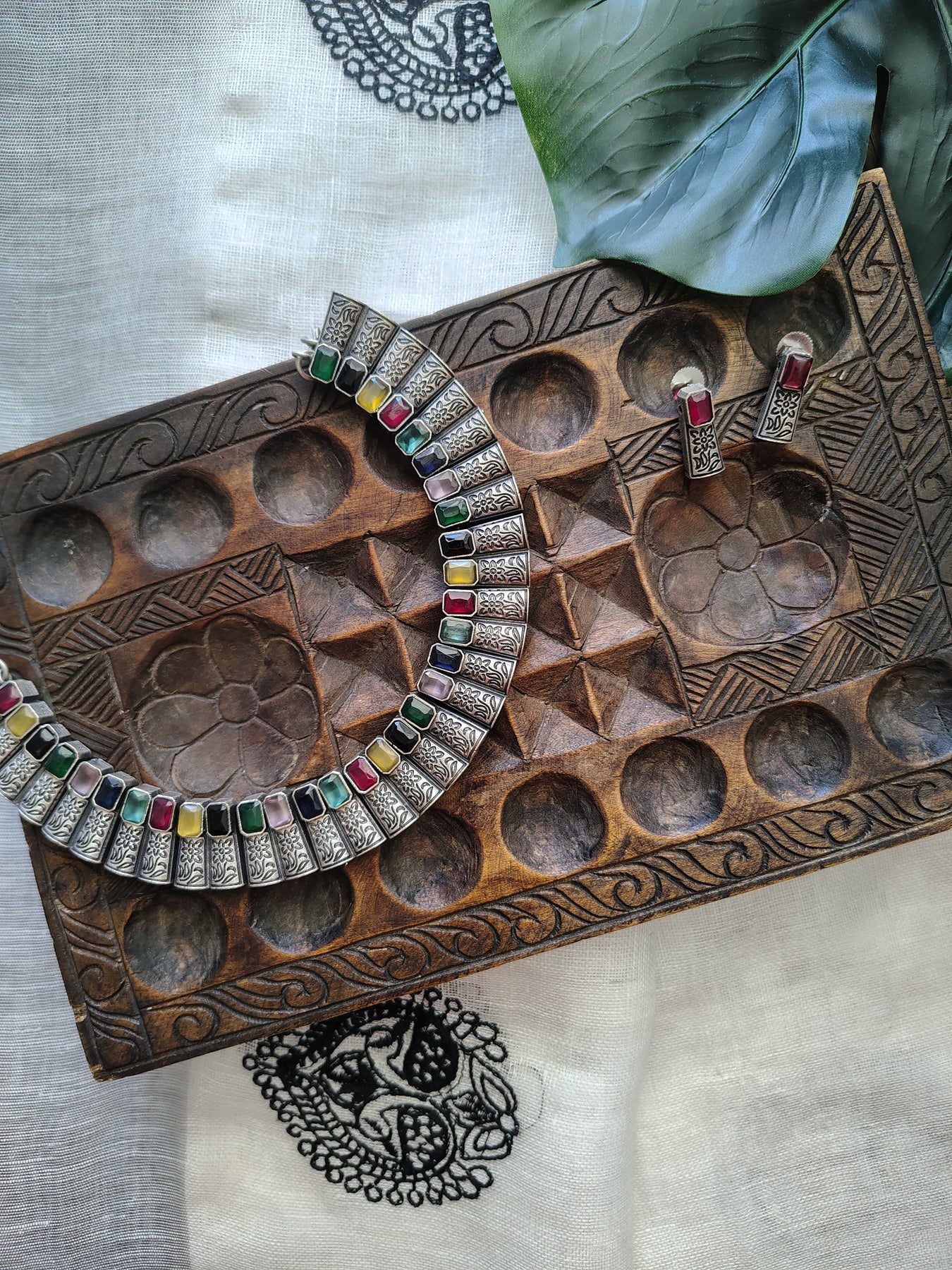 German Silver Necklace with Multicoloured Stones, paired with Studs