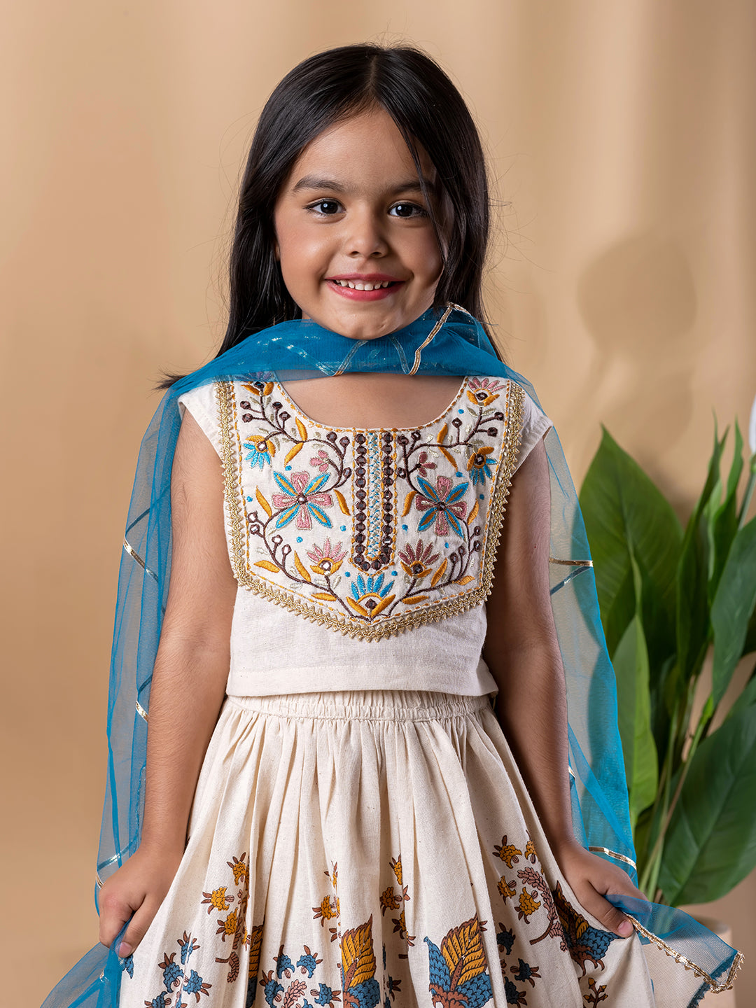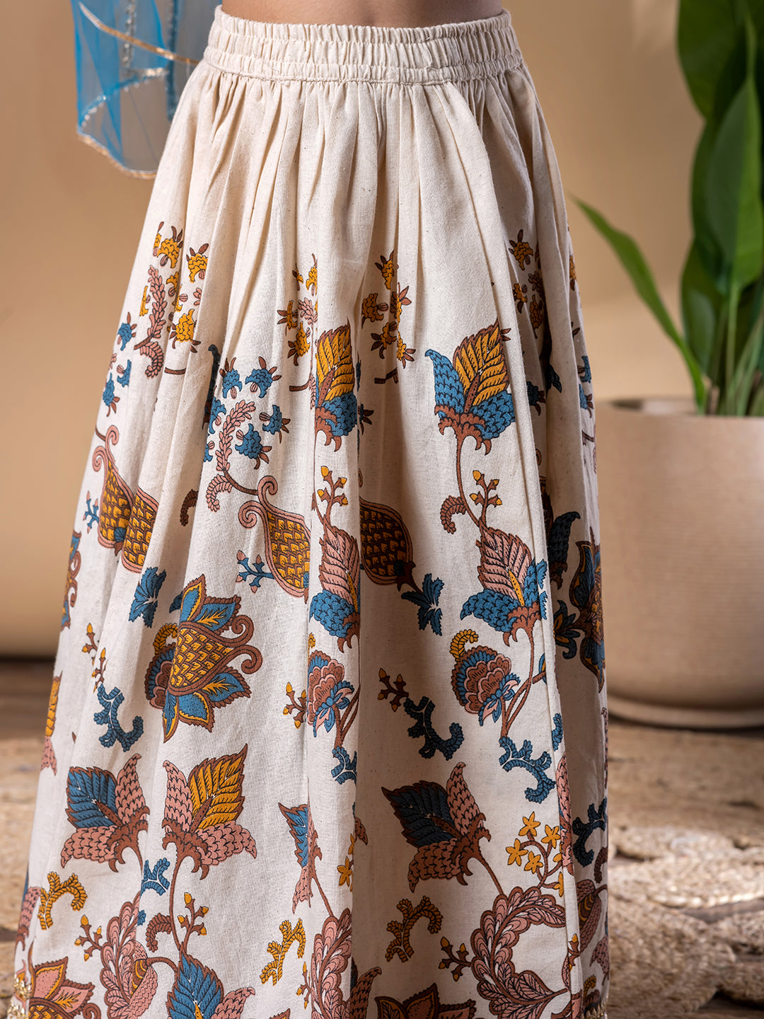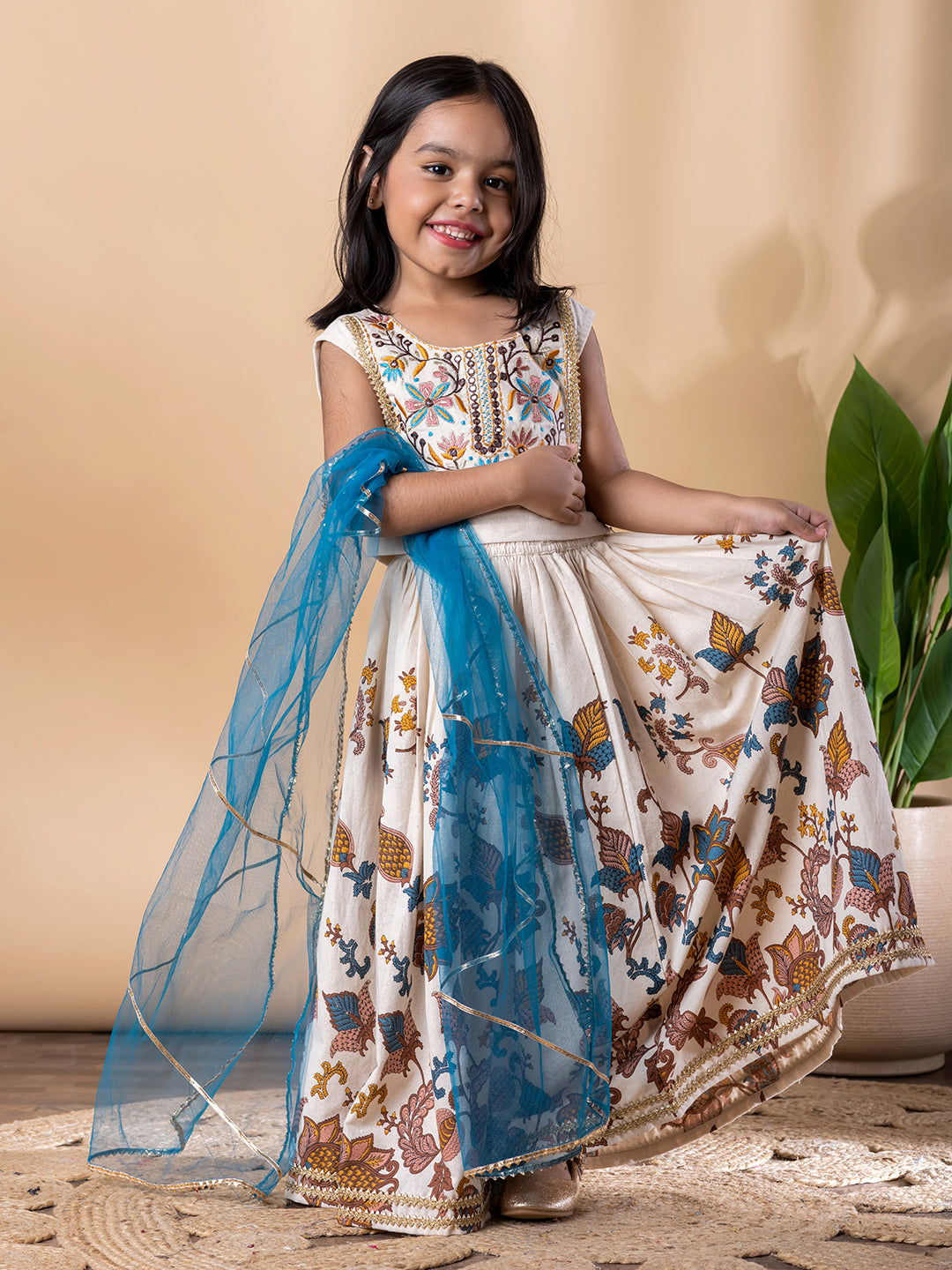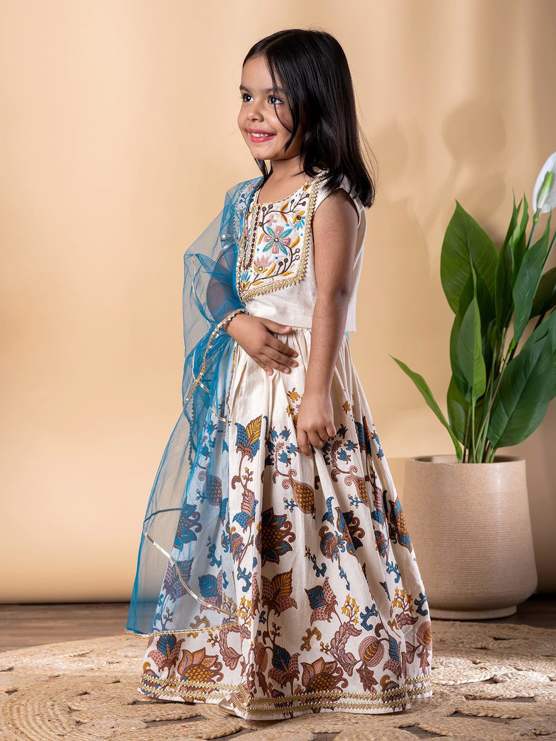 Floral Embroidered Floral Beige Lehenga Choli Set