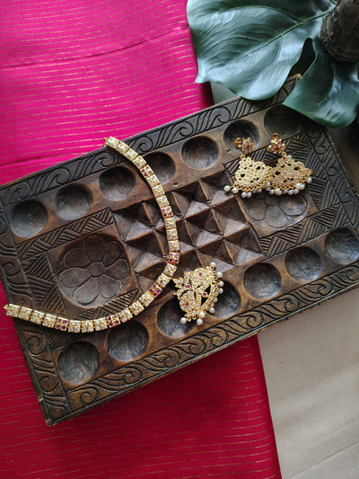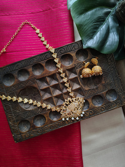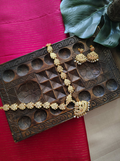 Each piece in our Impon range is inspired by South Indian heritage motifs, and modern bridal trends. Meticulously crafted with gold-plated finishes and fine detailing, these ornaments, from necklaces, bangles, earrings, and chokers to complete bridal sets, radiate grace, grandeur, and durability.