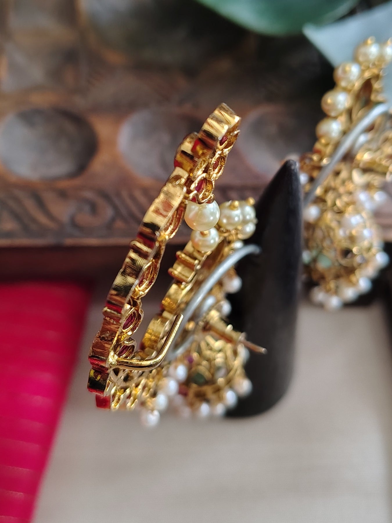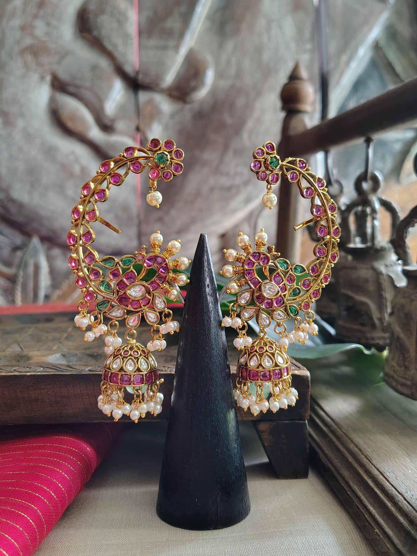 An elegant pair of Gold Jhumkas with Ear Cuffs