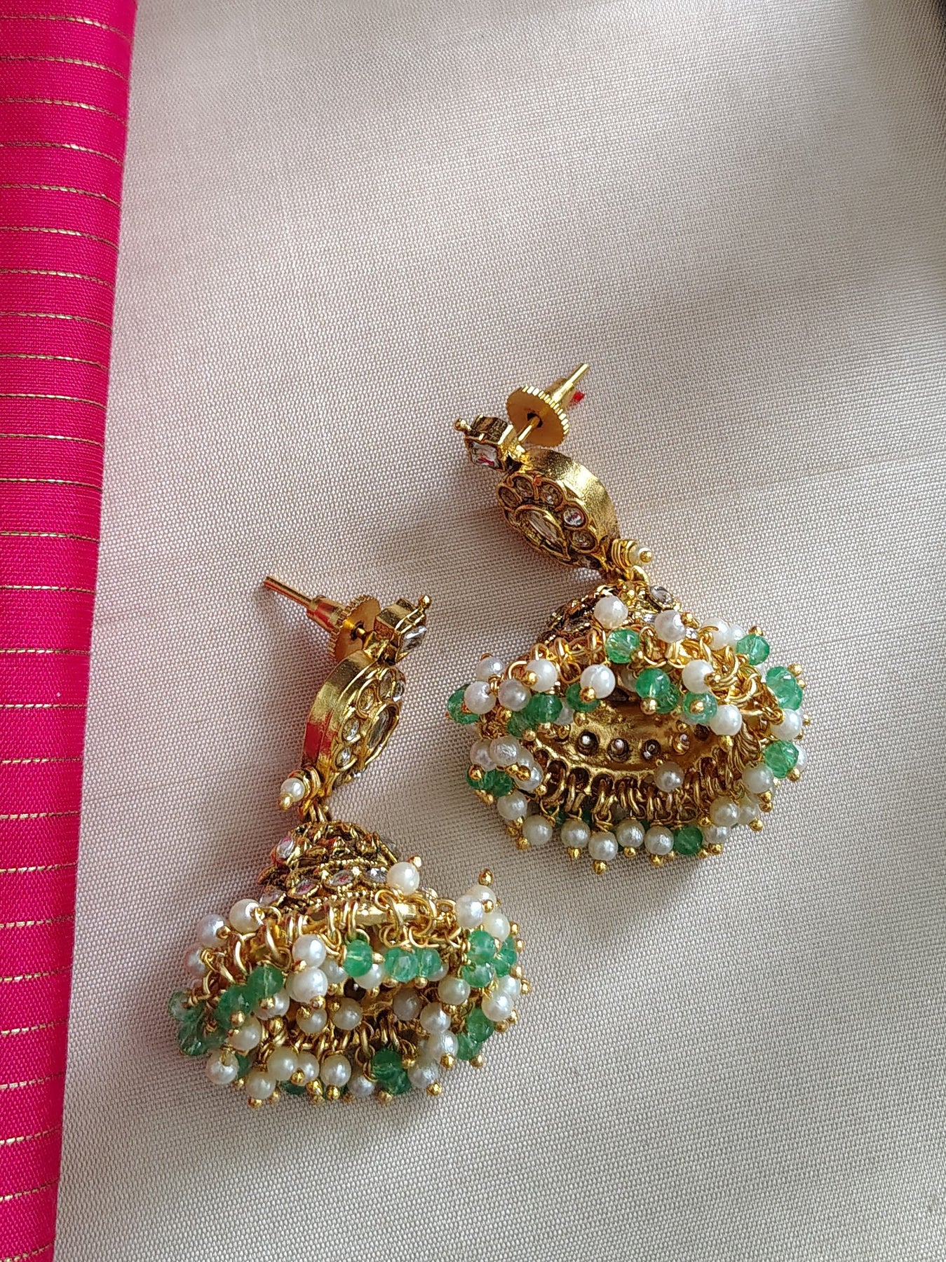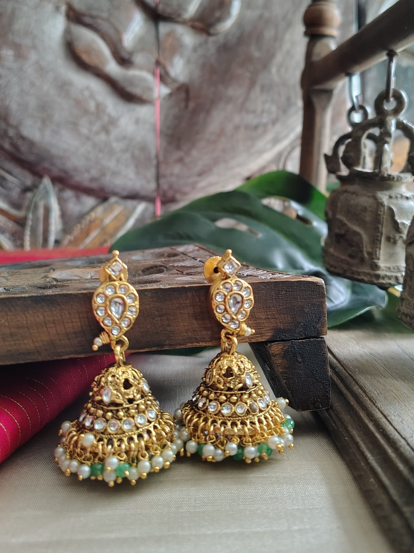 [{"id":48045377388776,"title":"Default Title","option1":"Default Title","option2":null,"option3":null,"sku":null,"requires_shipping":true,"taxable":true,"featured_image":null,"available":true,"name":"Gold Jhumkas with Stones","public_title":null,"options":["Default Title"],"price":5800,"weight":400,"compare_at_price":6500,"inventory_quantity":1,"inventory_management":"shopify","inventory_policy":"deny","barcode":"77388776","requires_selling_plan":false,"selling_plan_allocations":[]}]
