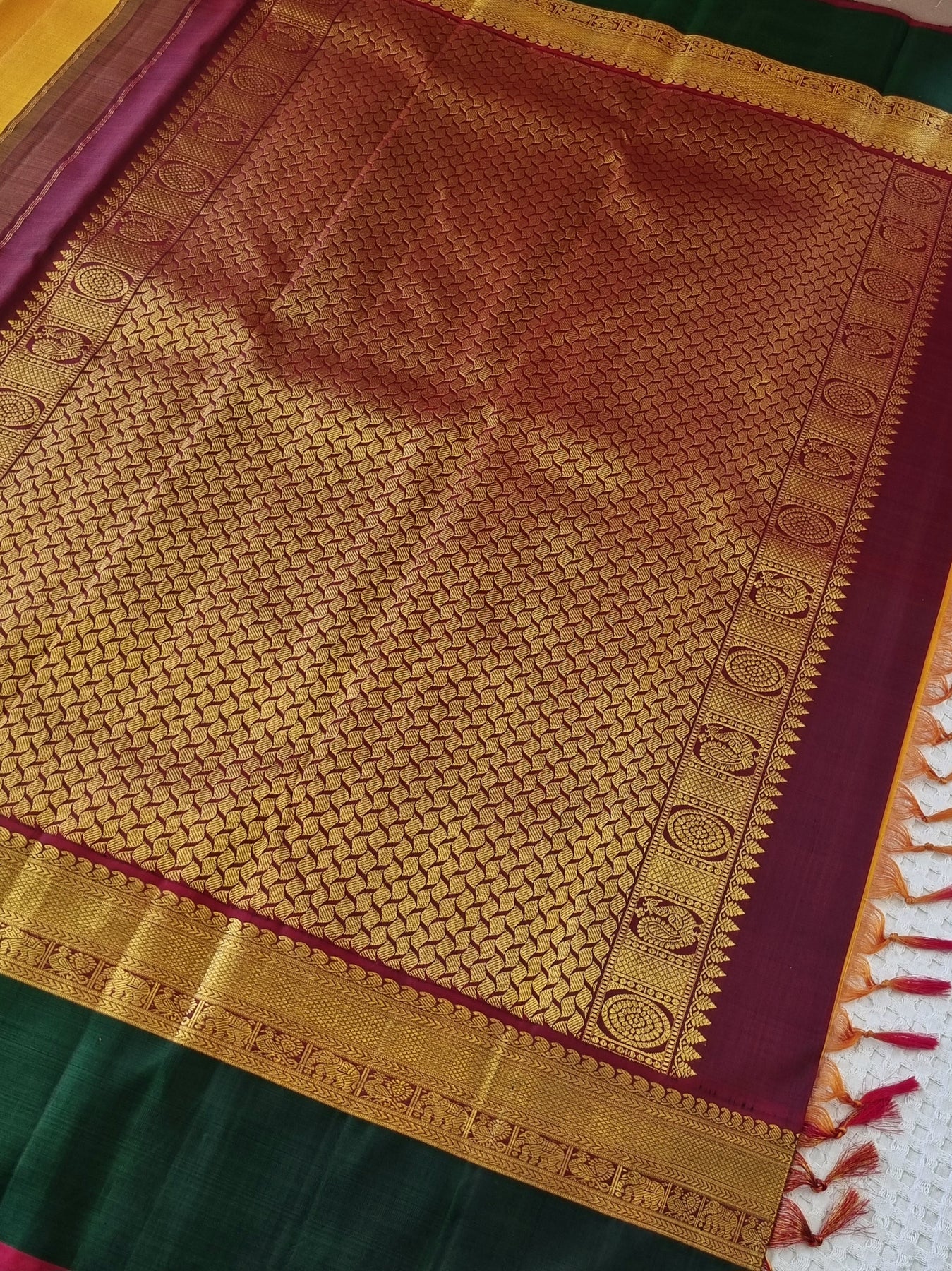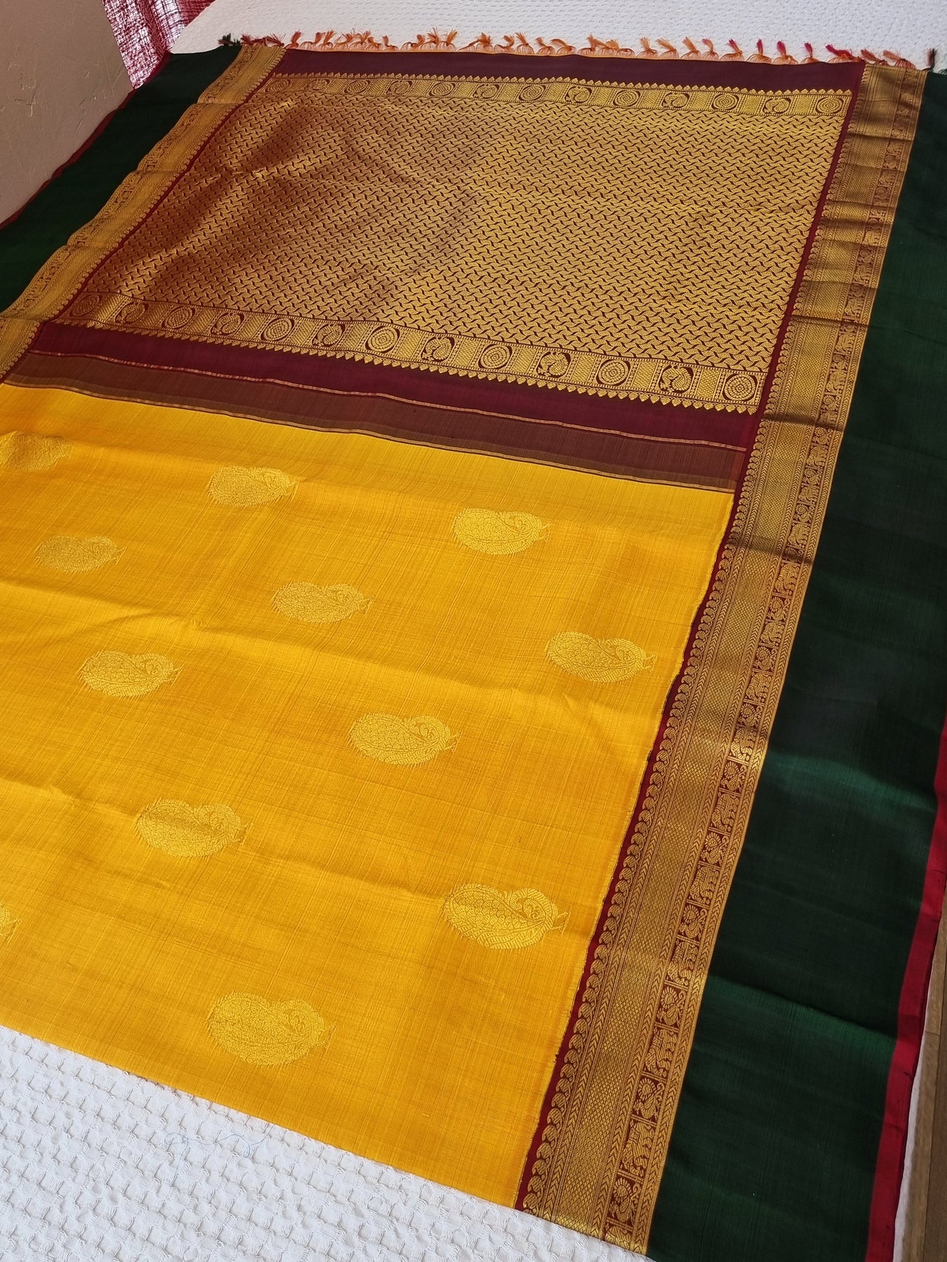 Handloom Kanjivaram Pure Silk Saree with Contrast Borders